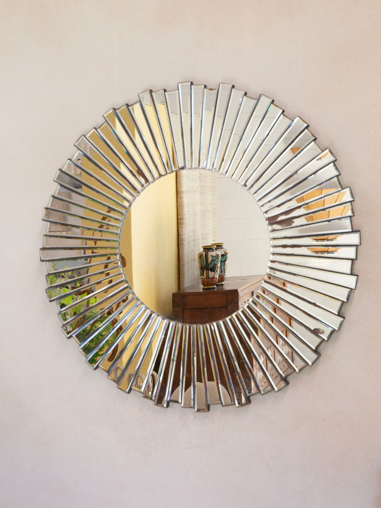 Perfect for elevating an entryway, living room, or bedroom, this mirror balances artistry and function, offering a bold yet refined focal point that draws the eye and enhances the space around it.