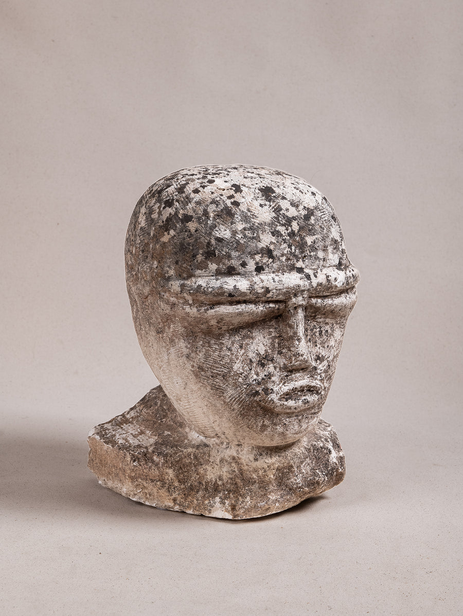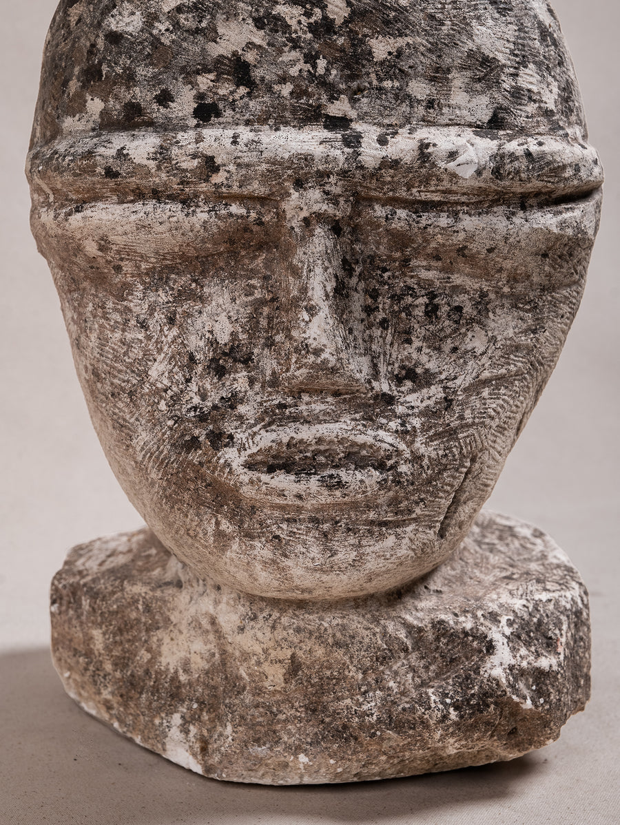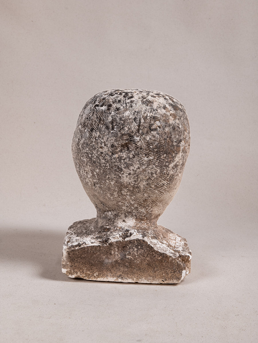 This early 20th century piece is hand carved in solid sandstone, with a textural finish that is accentuated by the aged discolouration of the stone.