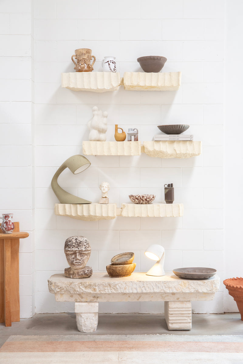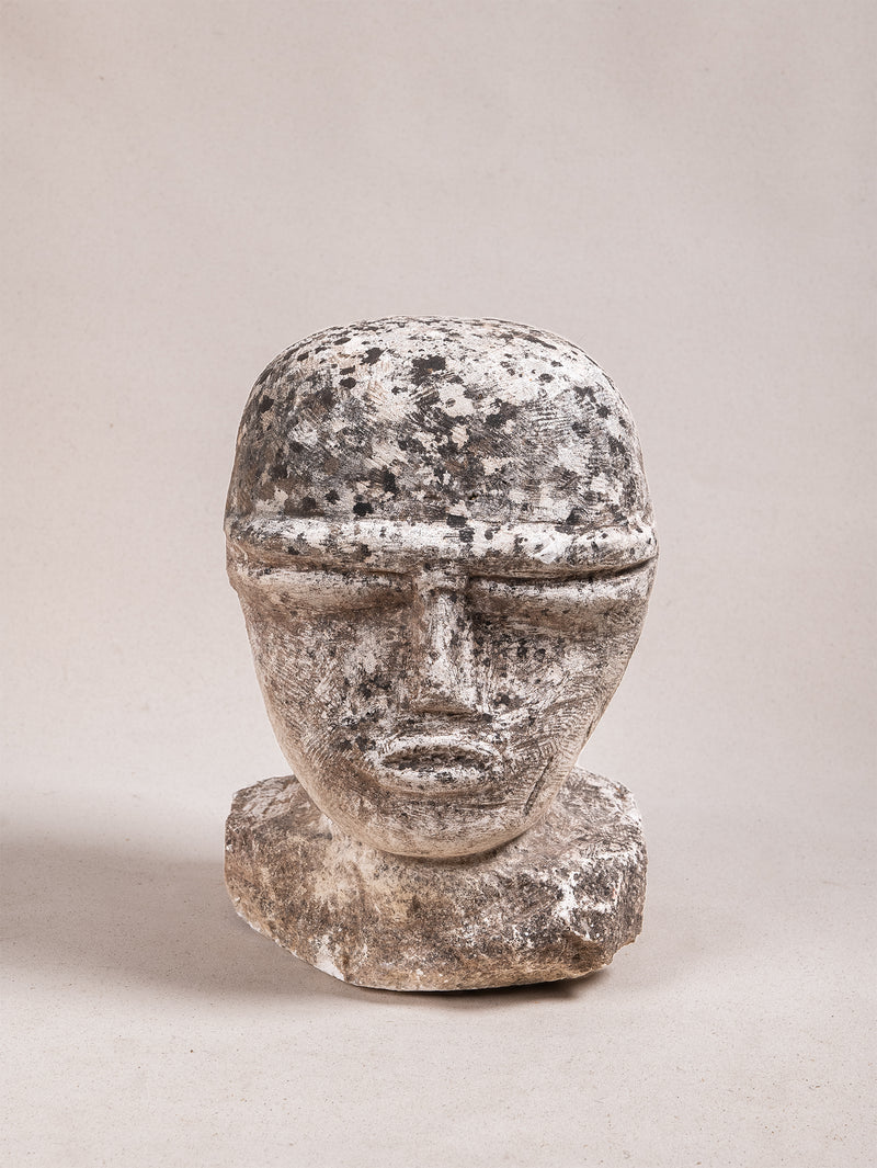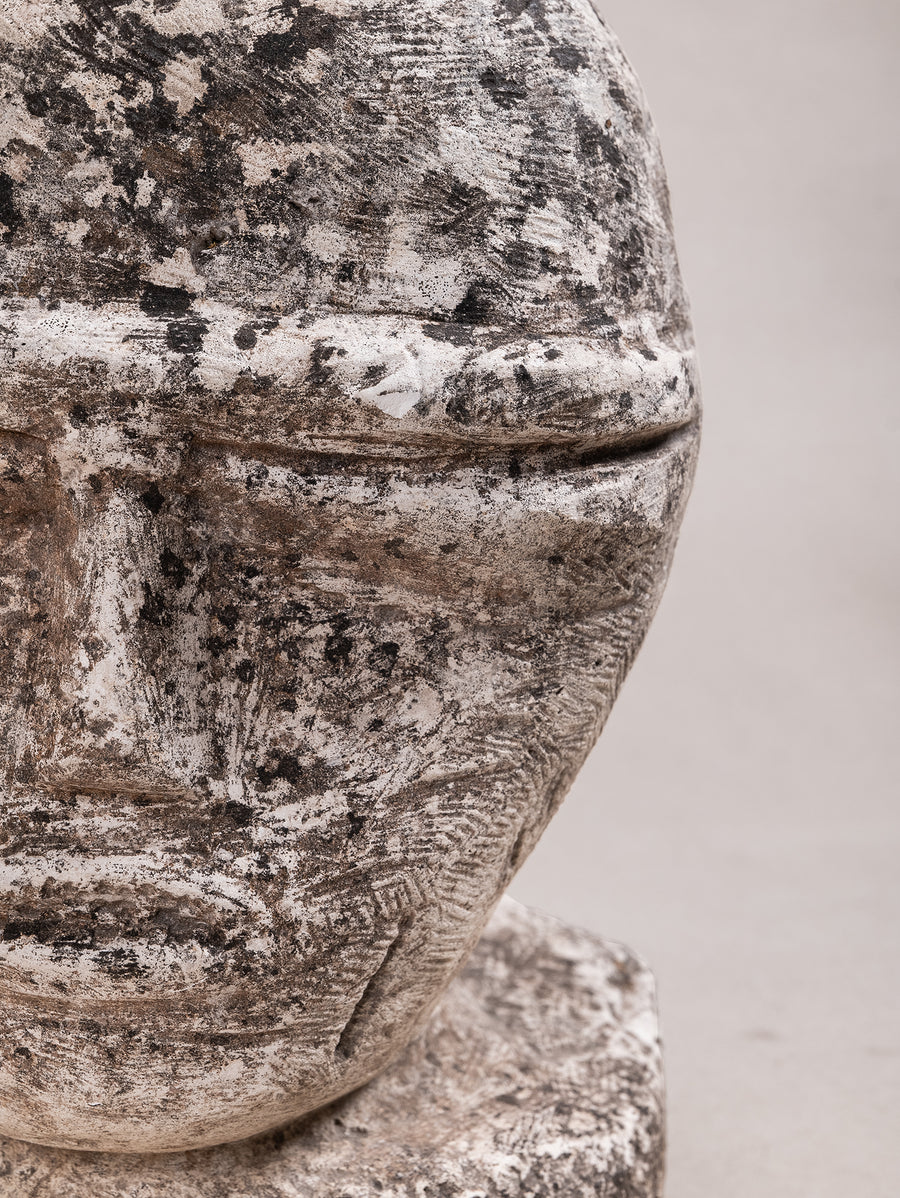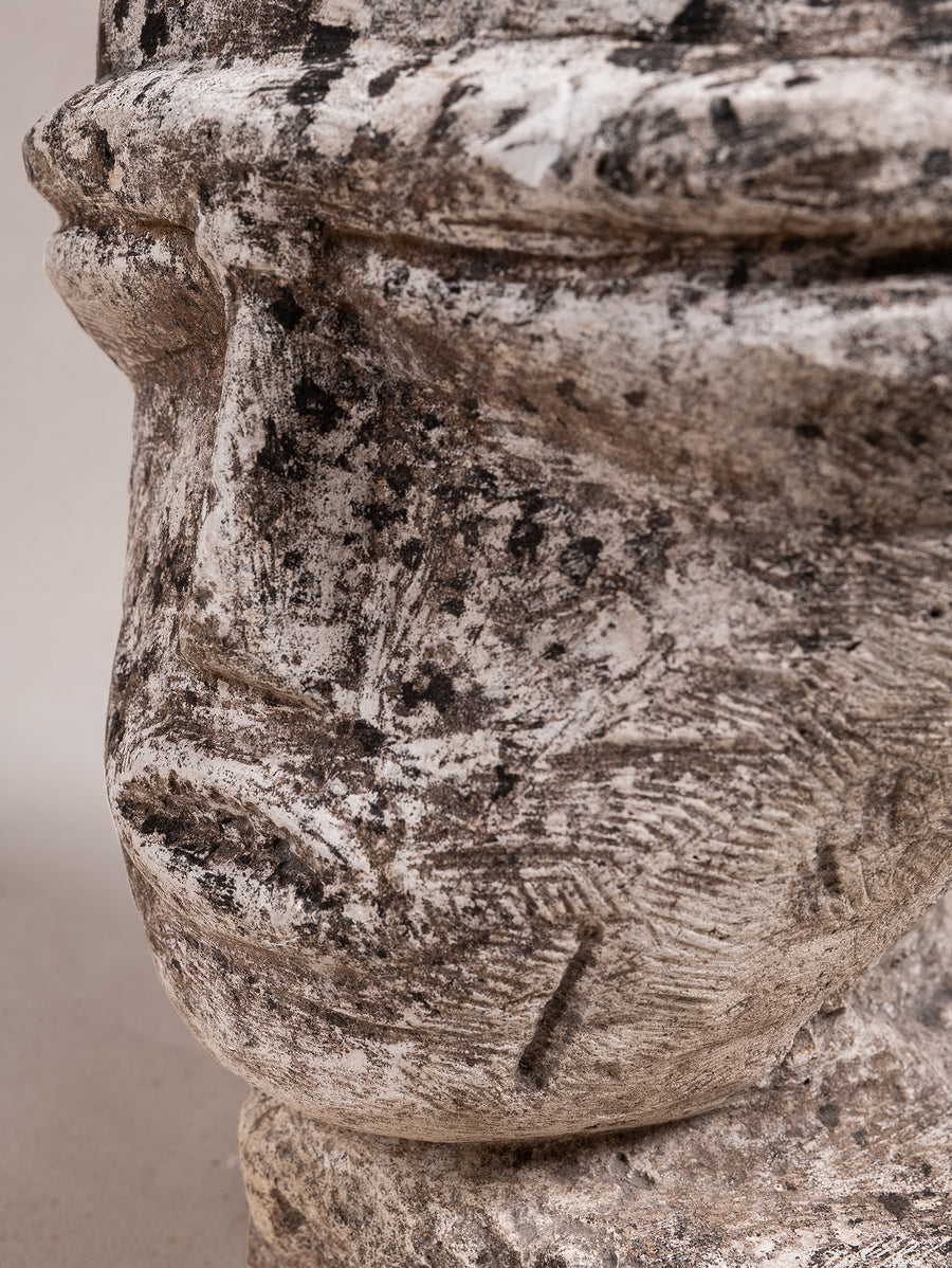 This early 20th century piece is hand carved in solid sandstone, with a textural finish that is accentuated by the aged discolouration of the stone.