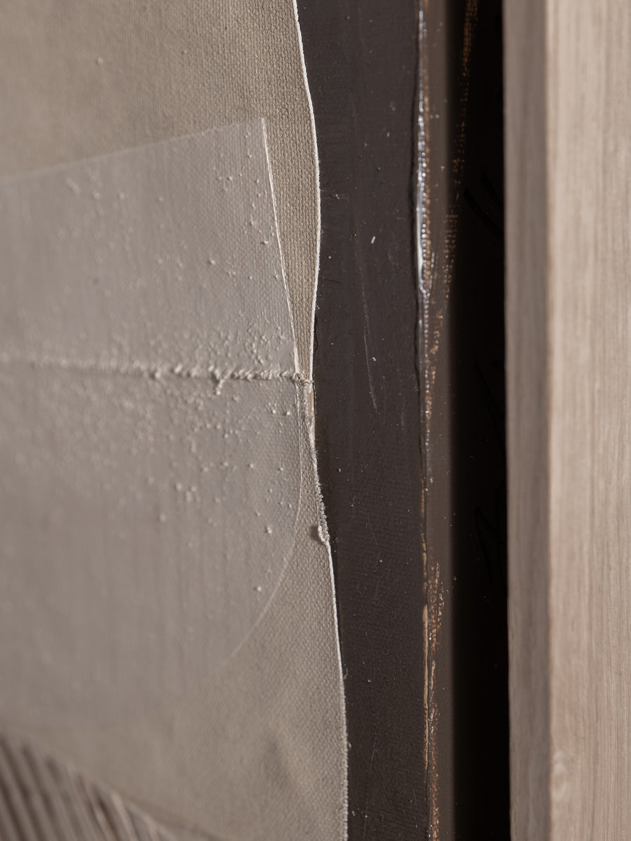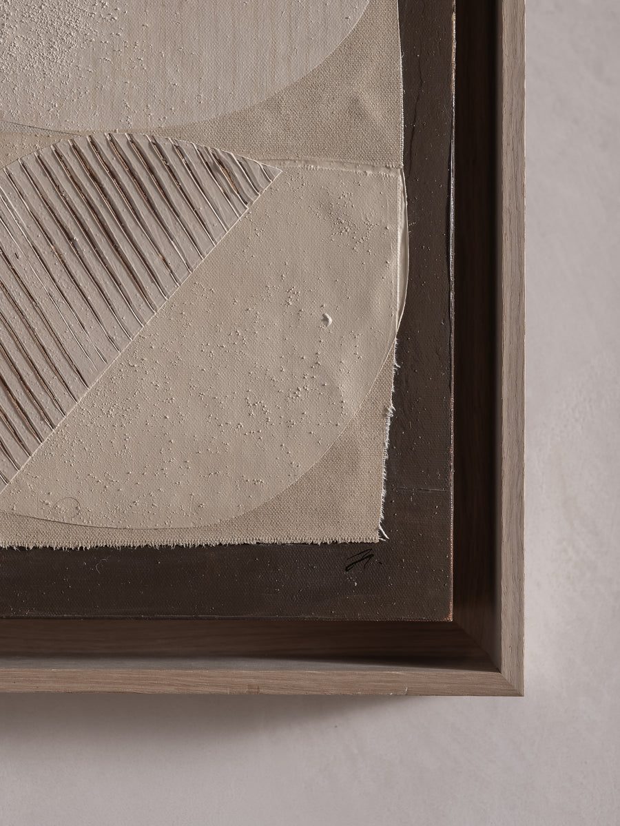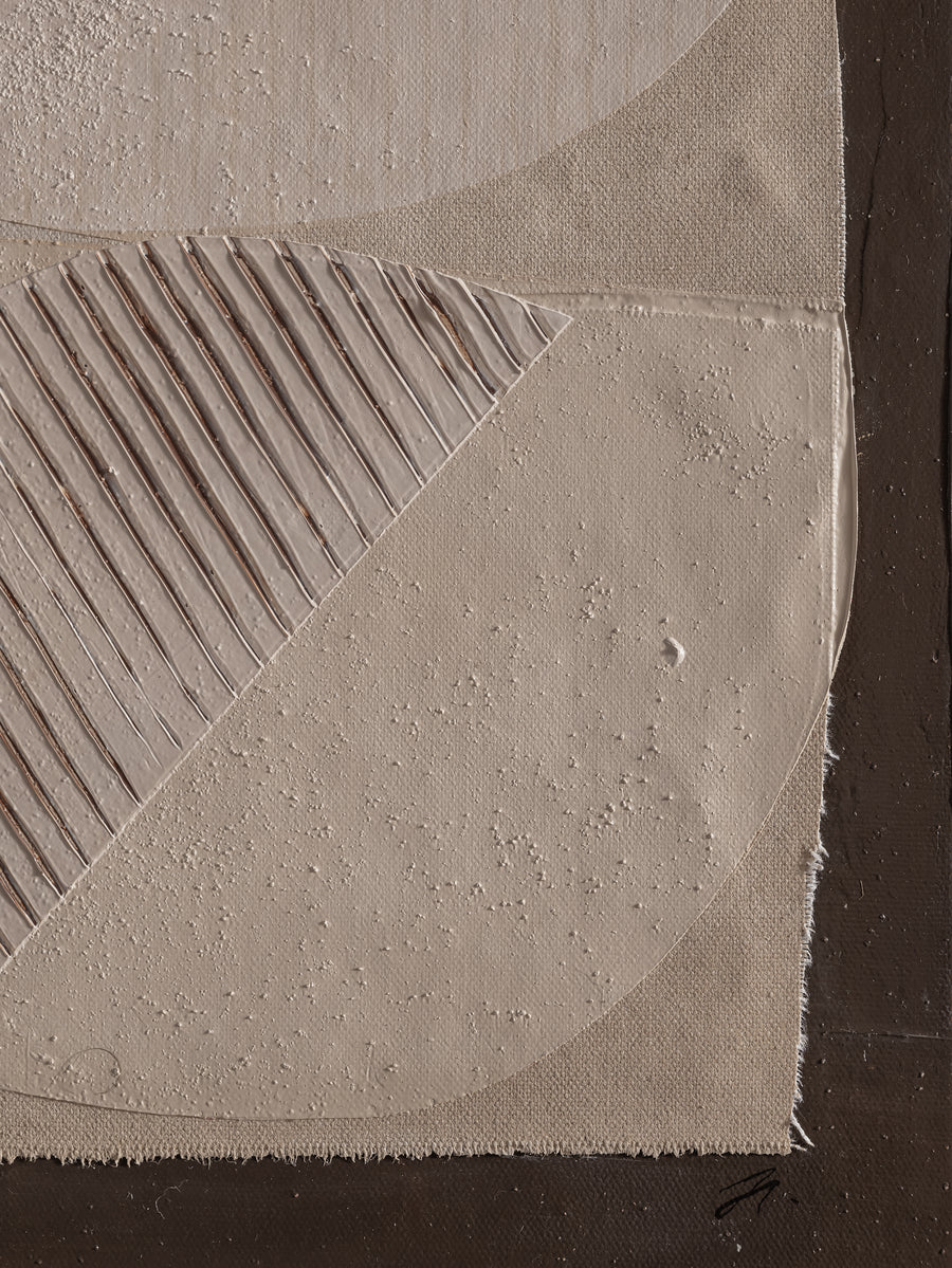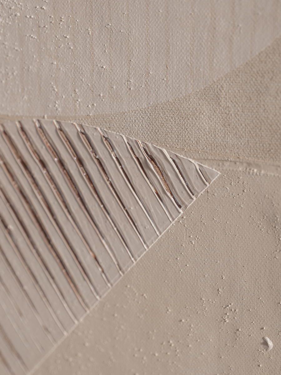Together, by Julie Haverkamp, is a collection that explores the beauty of unity and connection. Through flowing forms, soft colours, and bold textures, Julie Haverkamp conveys the story of harmony and creation. Inspired by her first pregnancy, this series reflects how connection takes on a new meaning in her life. The recurring trio of shapes, always touching or connecting, symbolises balance and the power of togetherness in both life and art.