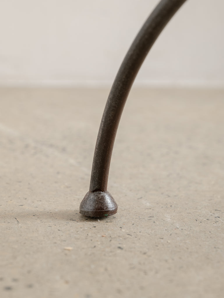 Restored with care, our iron pieces have been carefully sandblasted to remove rust while preserving their natural character, then sealed with a metal protector. As with all mild steel and iron, weathering will occur over time if exposed to the elements, and occasional maintenance is recommended.