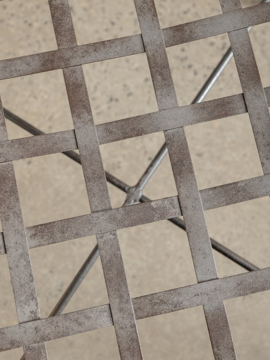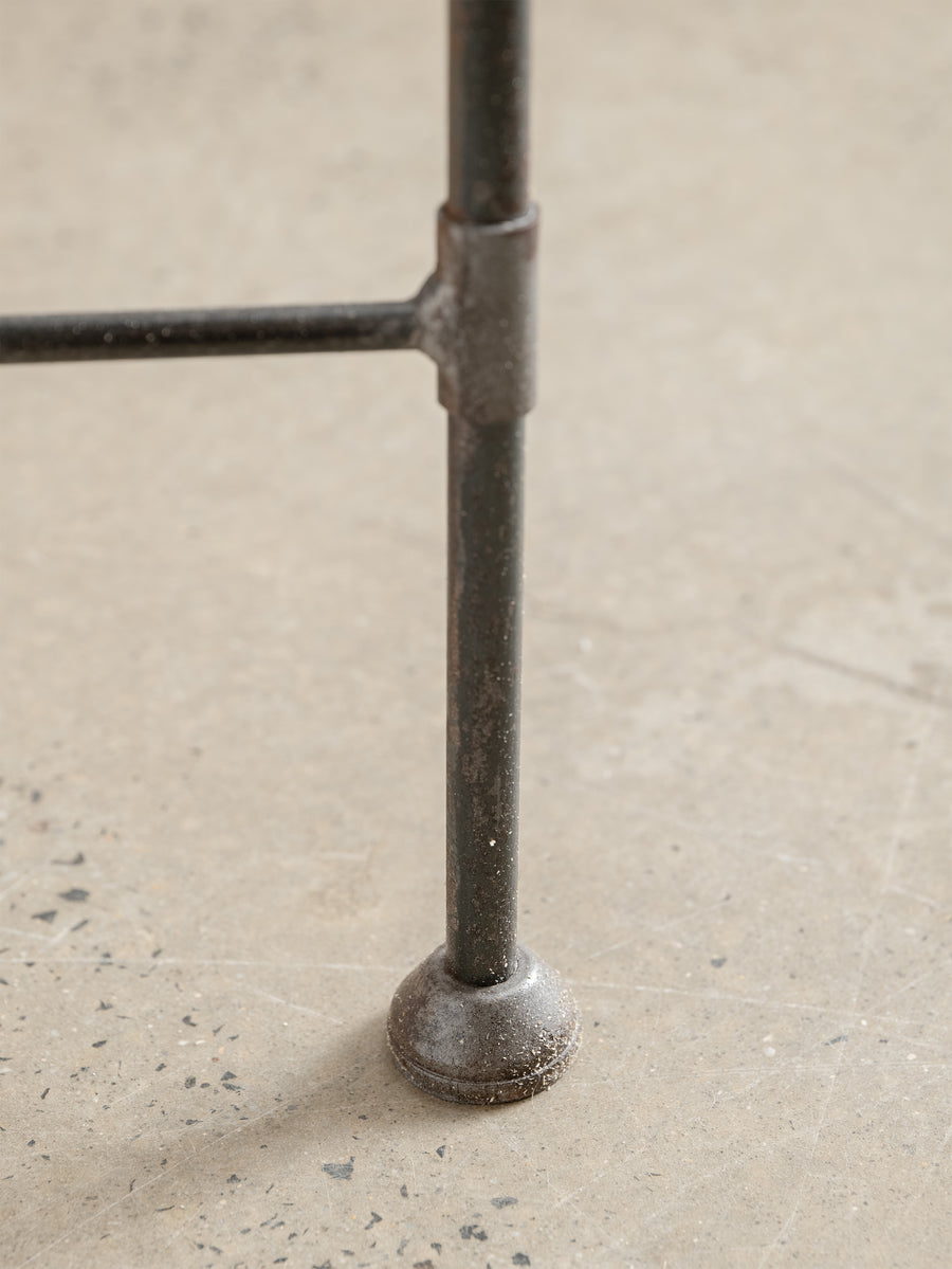 Our iron pieces have been carefully sandblasted to remove rust while preserving their natural character, then sealed with a metal protector. As with all mild steel and iron, weathering will occur over time if exposed to the elements, and occasional maintenance is recommended.