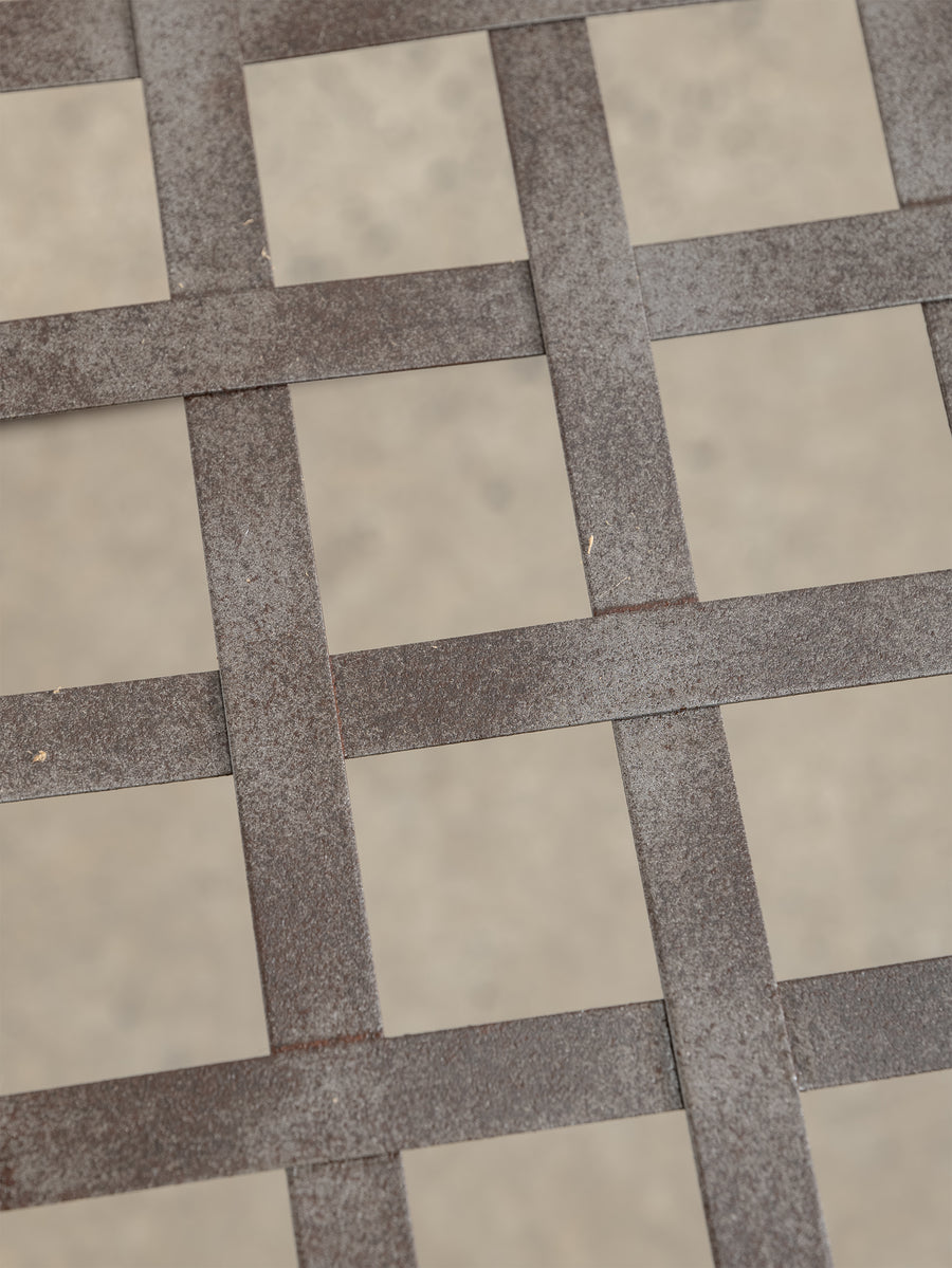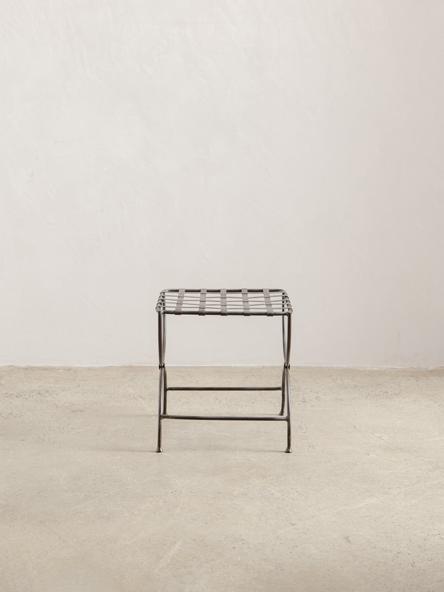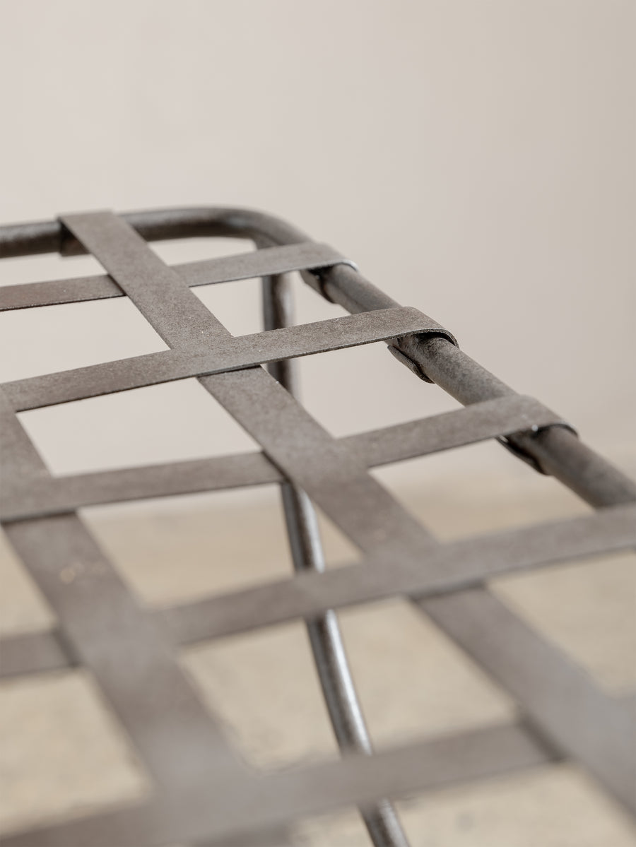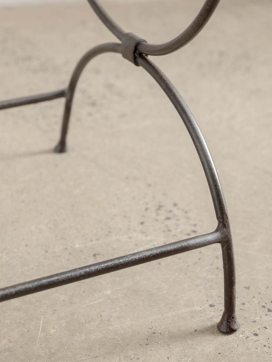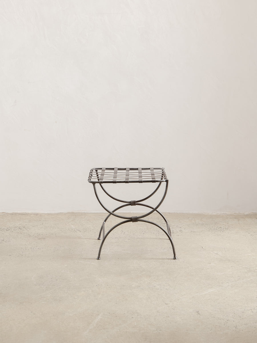 A sculptural 1960s iron side table, defined by its woven lattice top and gently arched supports. Light in form yet strong in structure, it carries the quiet presence of hand-forged craftsmanship and the patina of time.