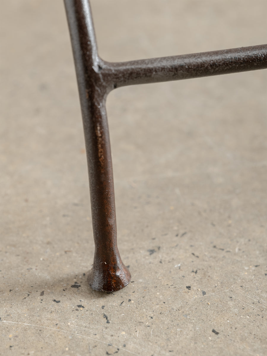 Restored with care, our iron pieces have been carefully sandblasted to remove rust while preserving their natural character, then sealed with a metal protector. As with all mild steel and iron, weathering will occur over time if exposed to the elements, and occasional maintenance is recommended.
