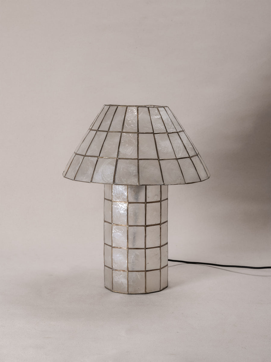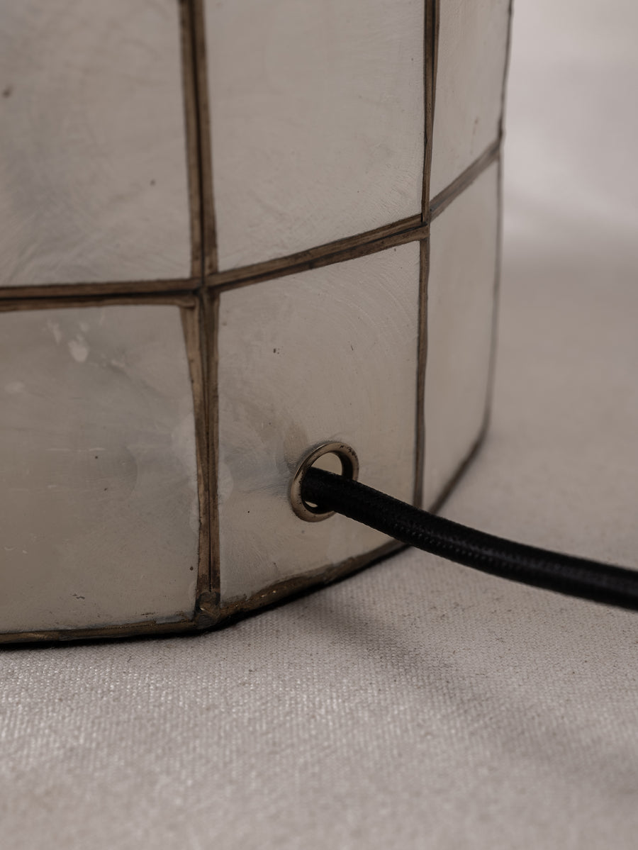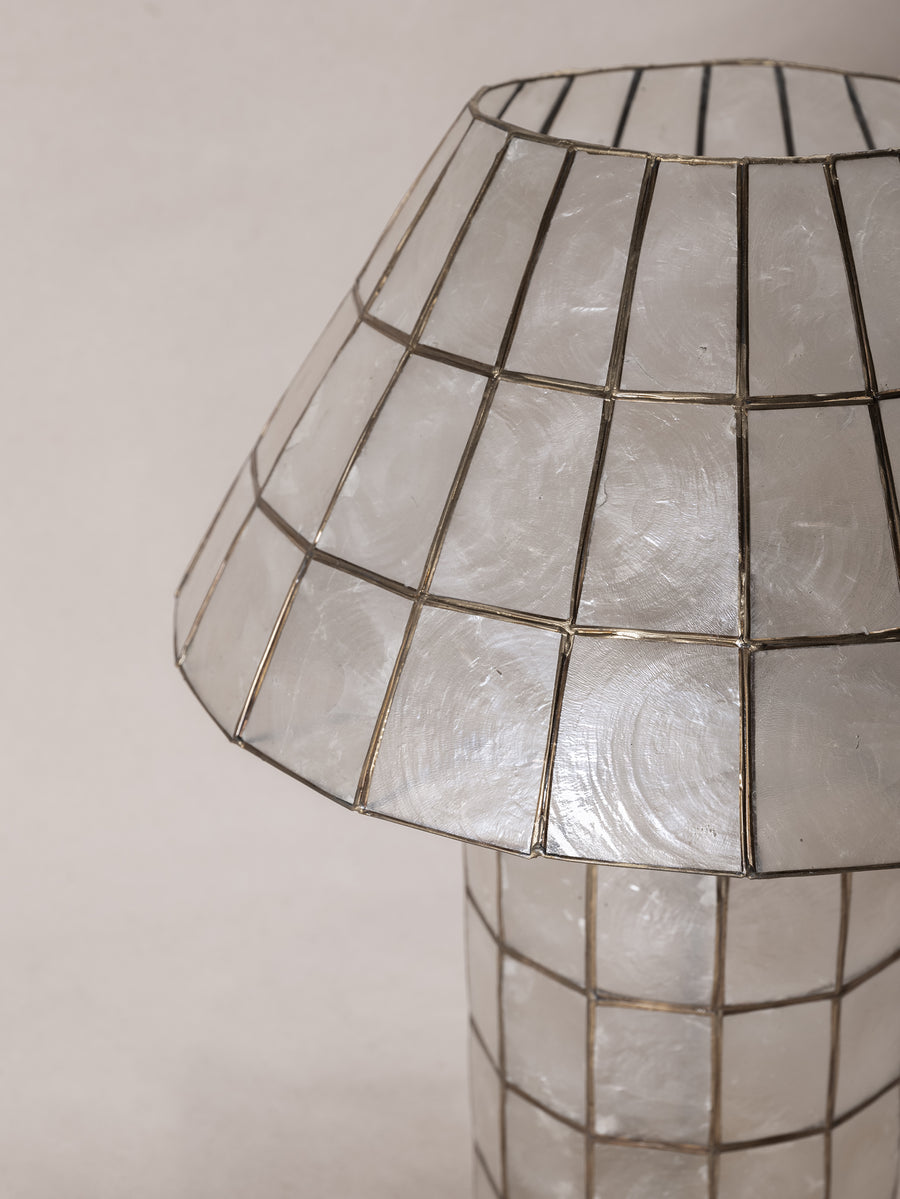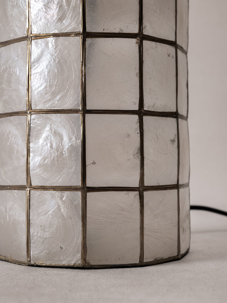 Cornelia Table Lamp is a lamp that is made from capizshells which gives the material an irregular structure. This makes each lamp unique, adding to its character and personality. The lamp can be placed in many different settings, both modern and classical. Use it as a decorative interior detail in the bookshelf or next to the bed as a bedside lamp.