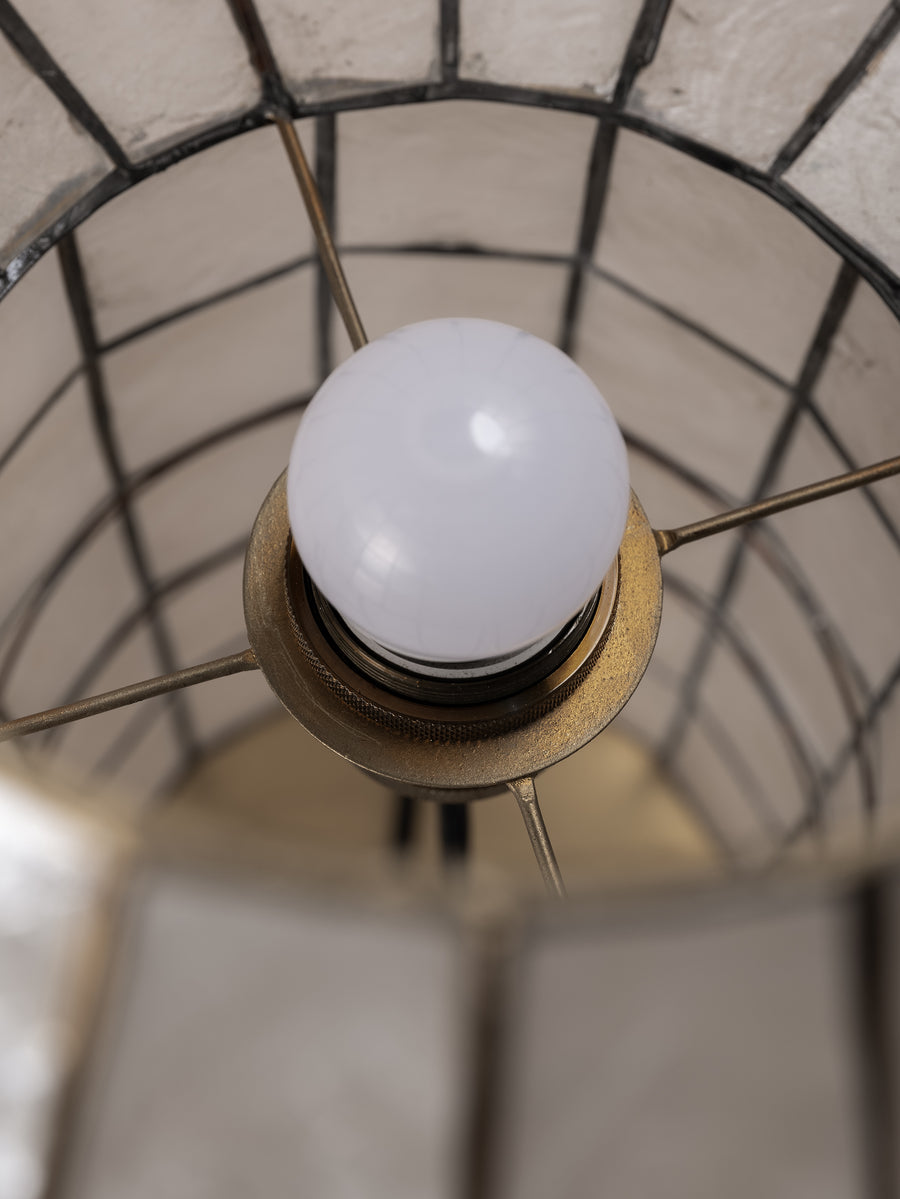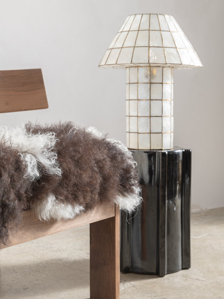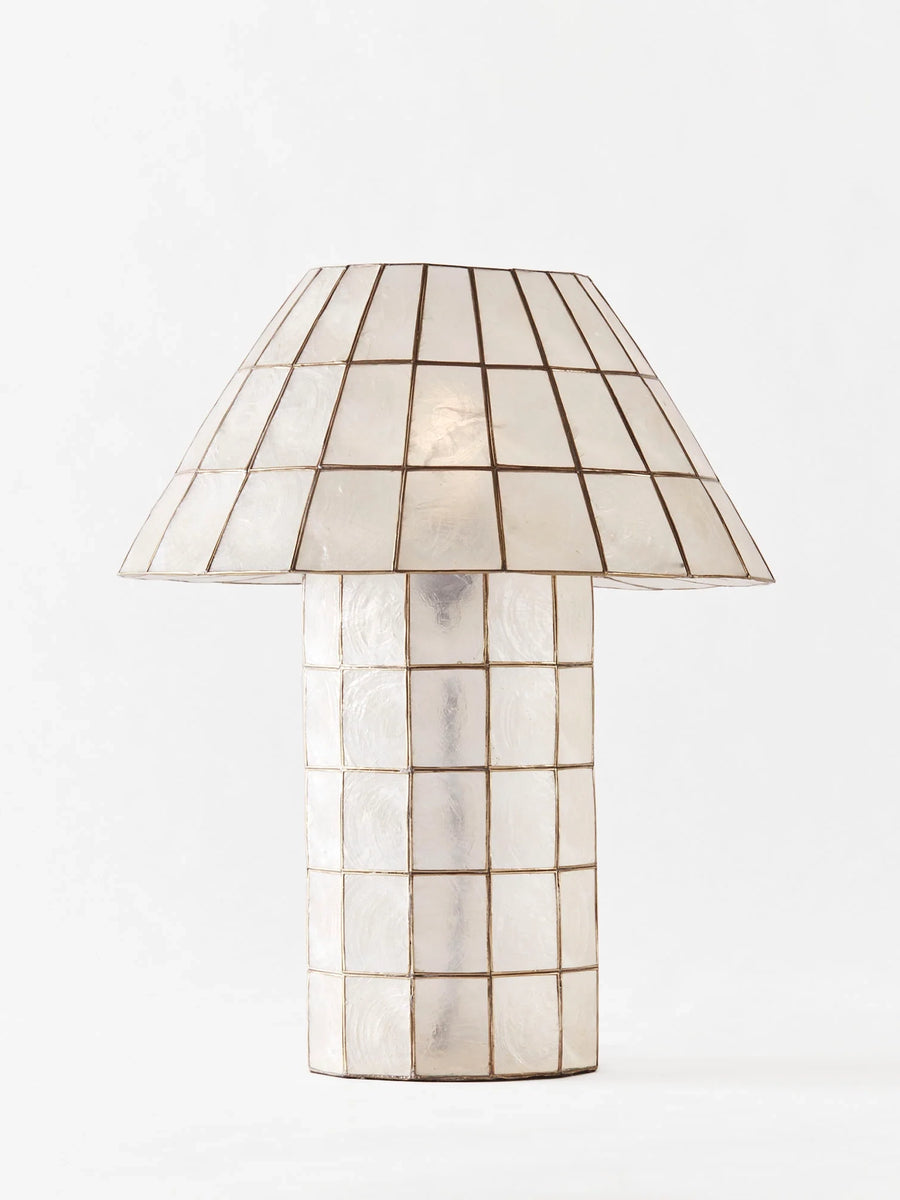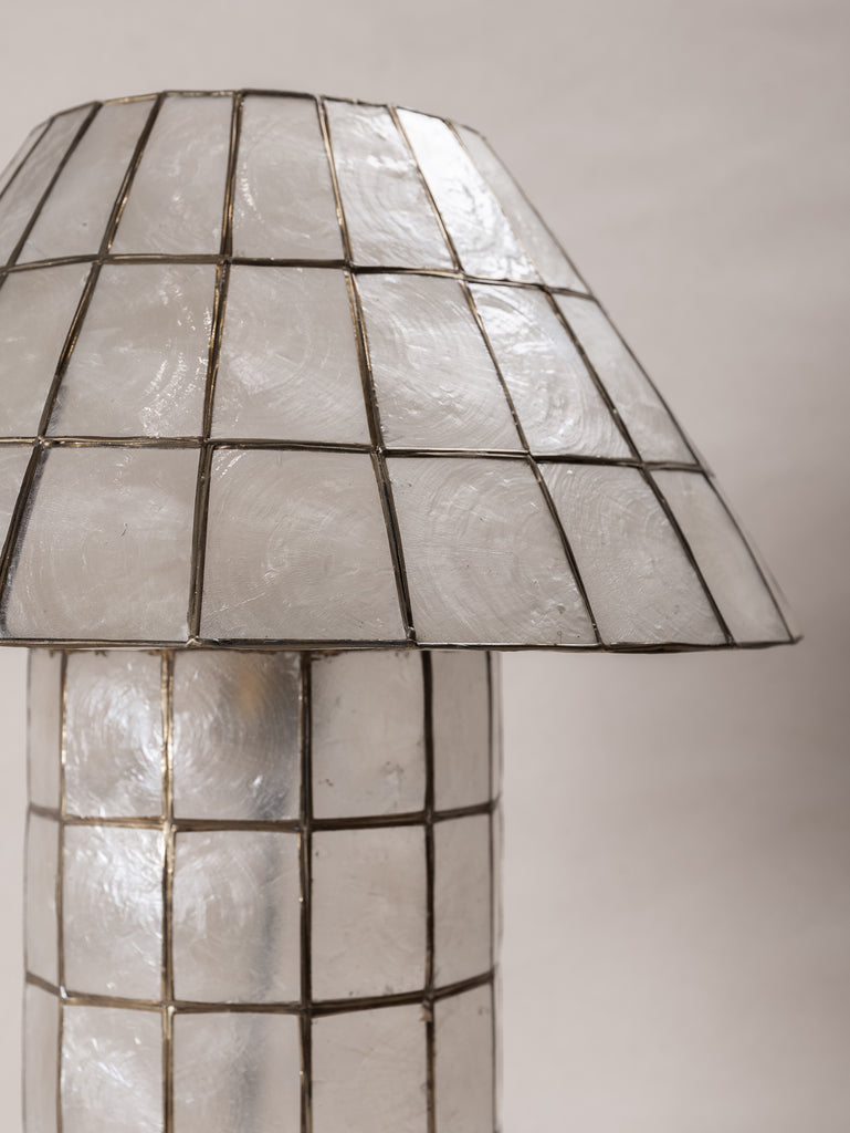 Cornelia Table Lamp is a lamp that is made from capizshells which gives the material an irregular structure. This makes each lamp unique, adding to its character and personality. The lamp can be placed in many different settings, both modern and classical. Use it as a decorative interior detail in the bookshelf or next to the bed as a bedside lamp.