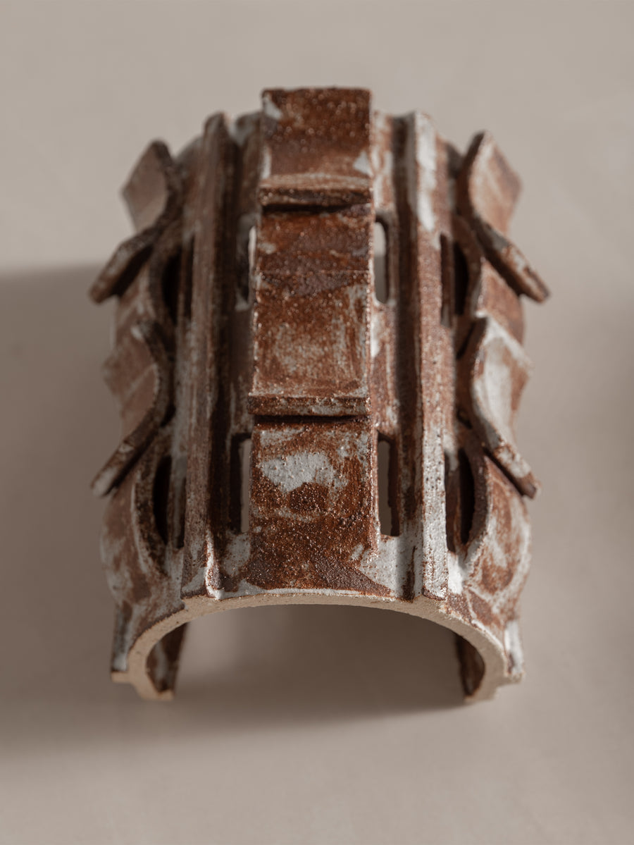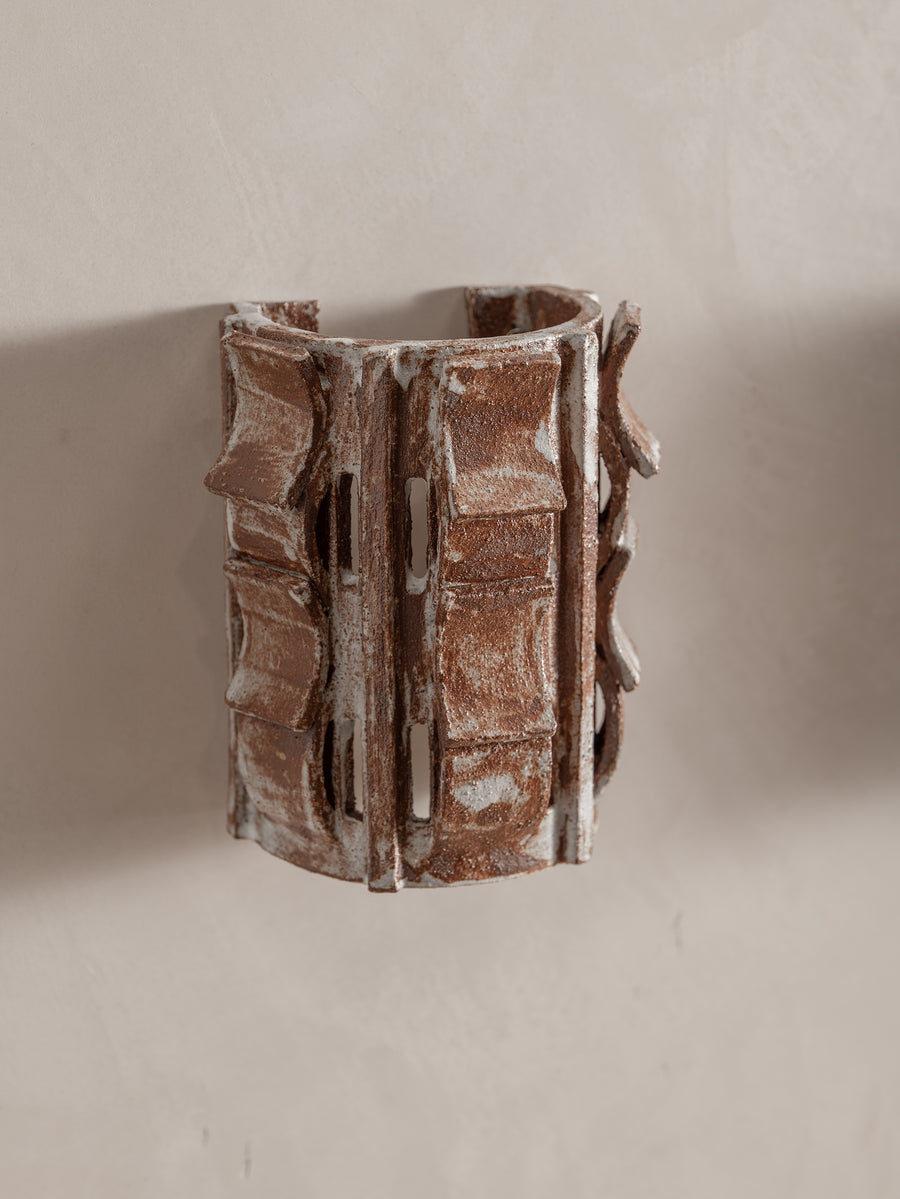Rythme Wall Sconce 01 in White Stoneware and Mahogany Glaze
