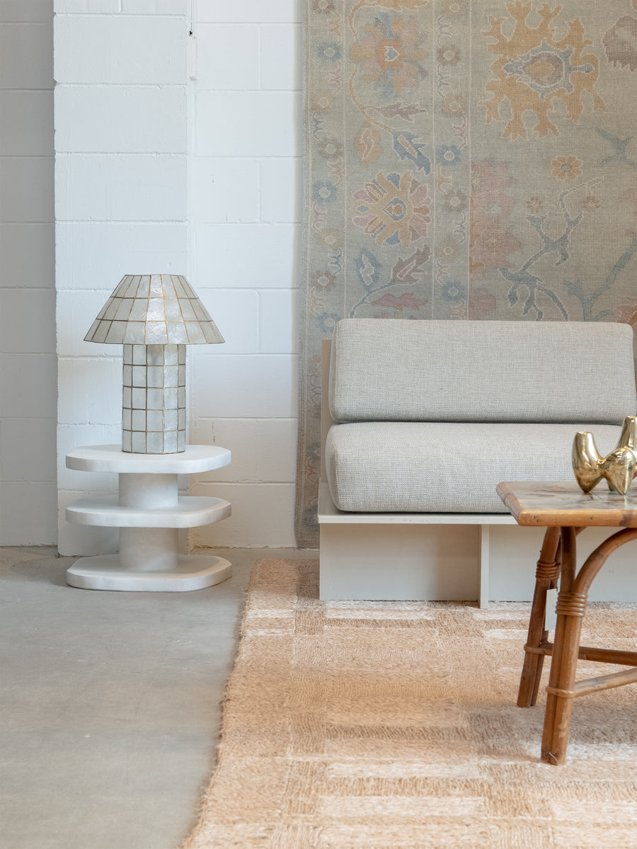 Its minimal, architectural lines are softened by the material’s natural variations, creating subtle markings that echo the look and depth of travertine. Outdoor cushions are finished in a tactile Italian fabric that feels fresh and breathable year-round. Soft yet resilient, they offer lasting comfort and include discreet straps to keep them neatly in place. A friction-fit system allows for easy, tool-free assembly, while the gently curved legs create stability across a range of outdoor surfaces.