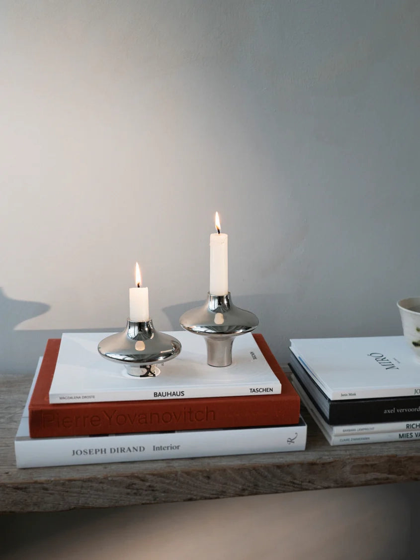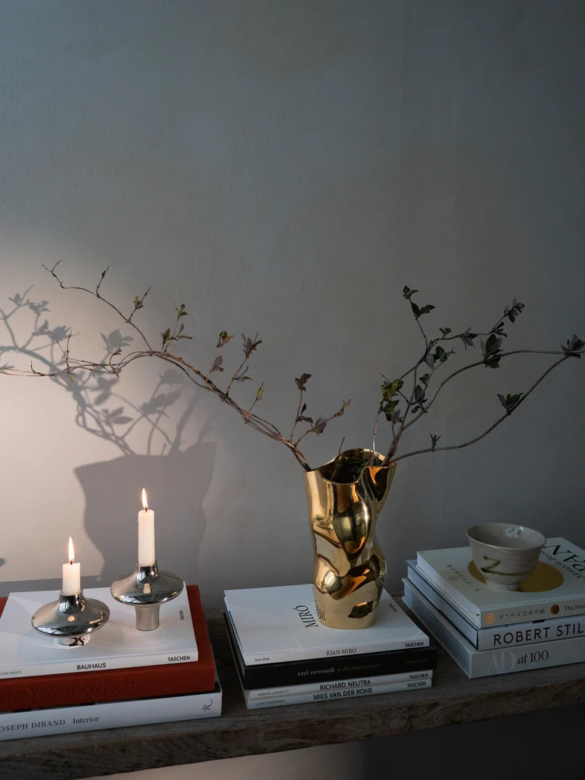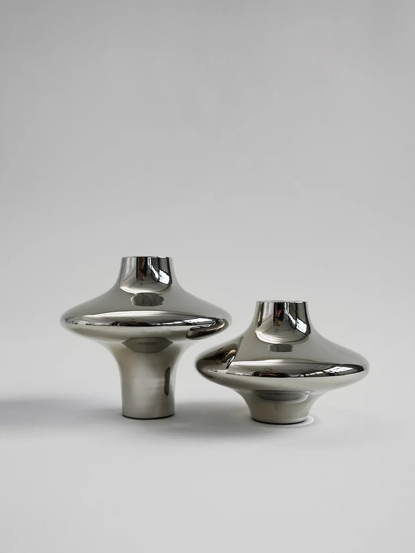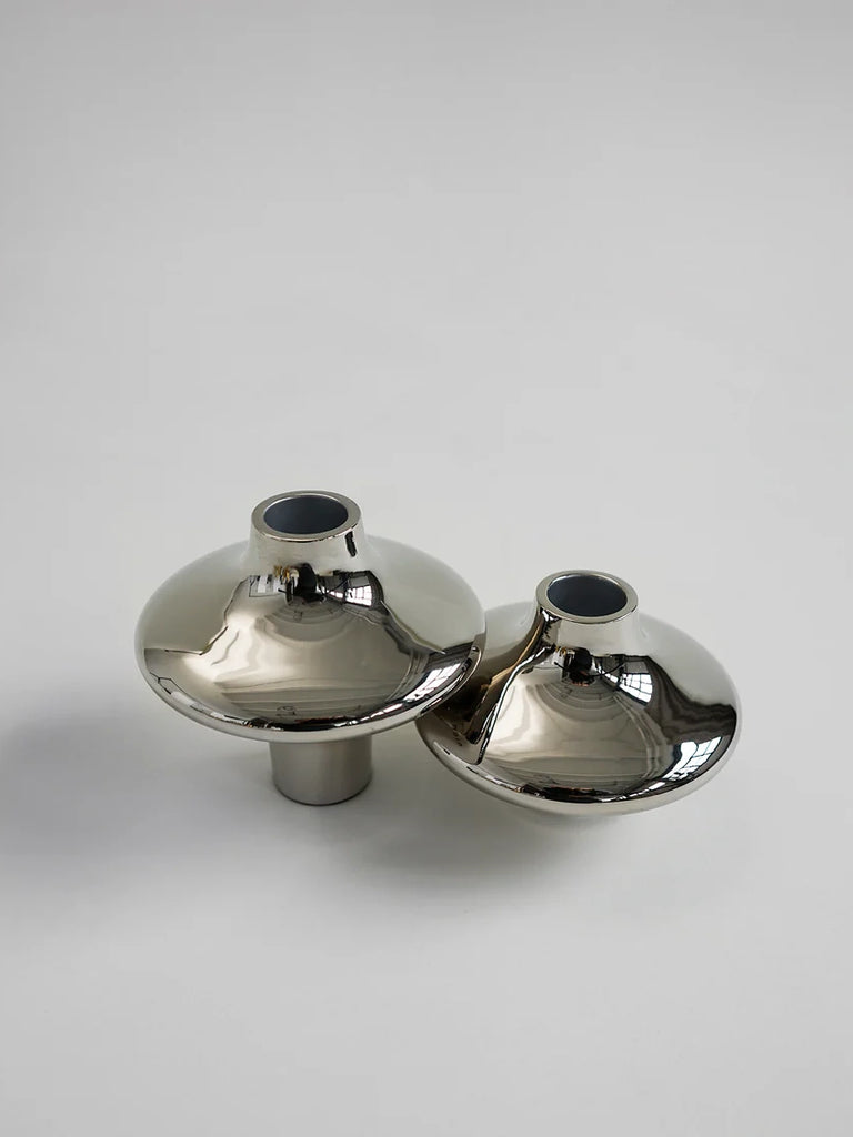 A timeless shape - inspired by two silhouettes staged together, silver and gold, large and small - Creating a calm and warm aesthetic - Use it with candles or without - Sold individually.