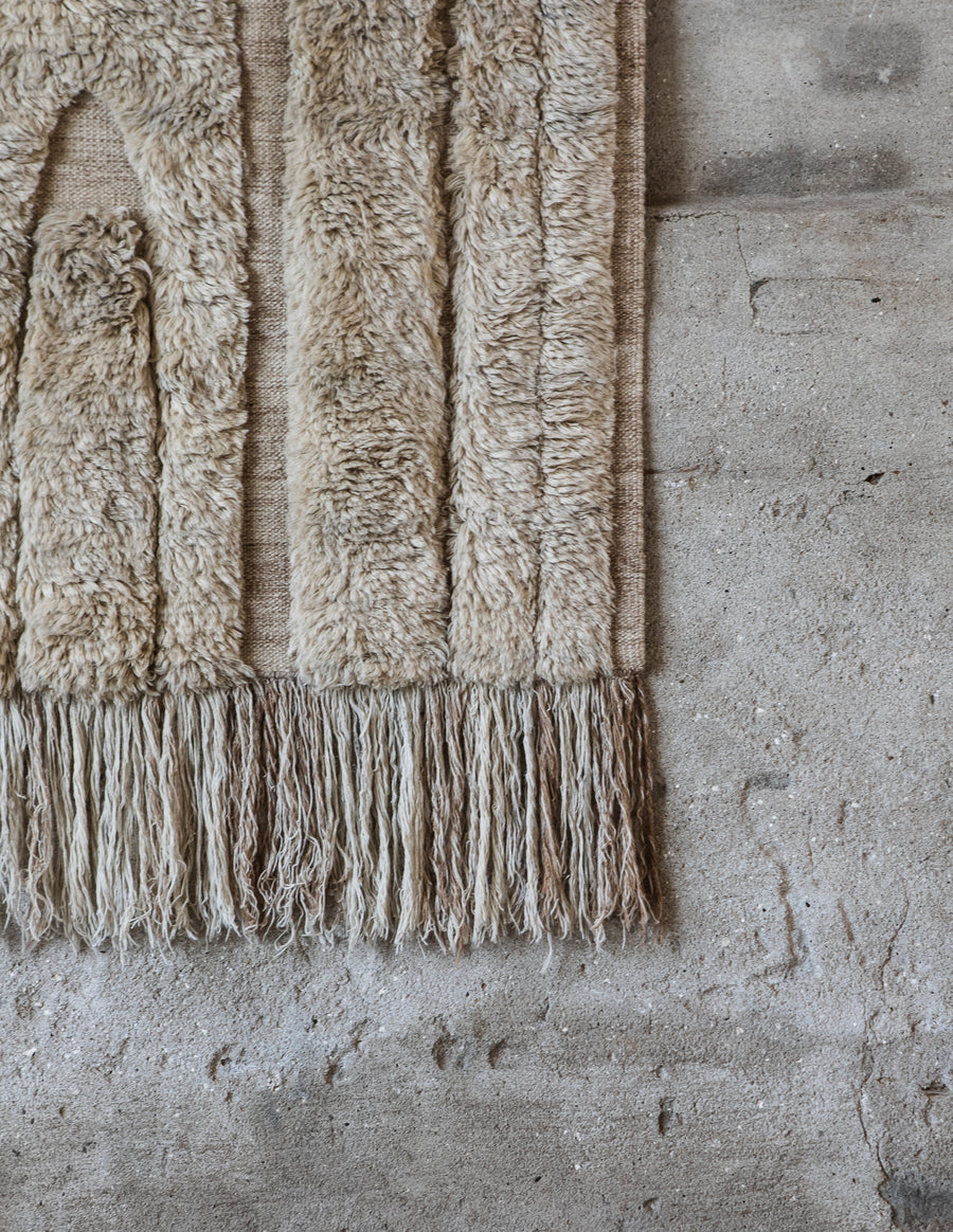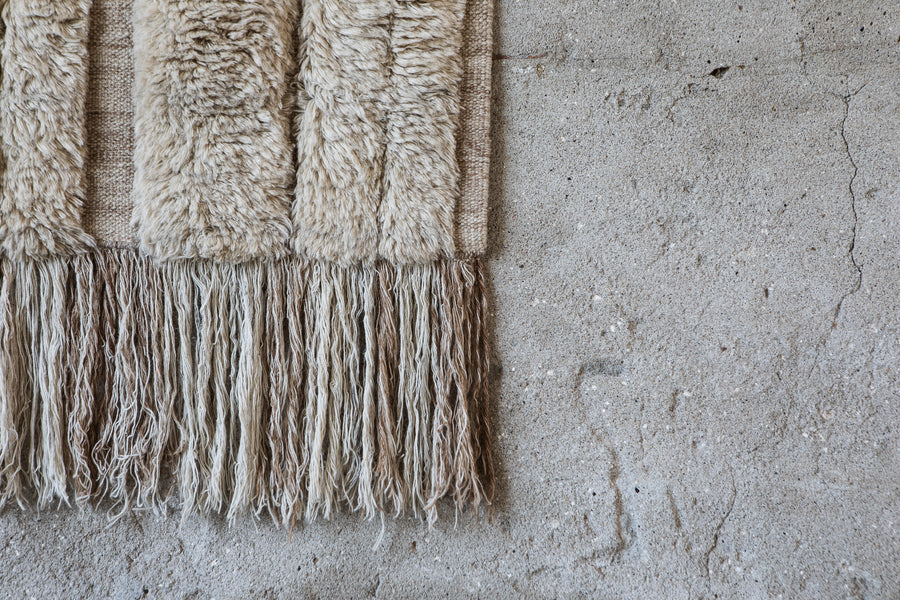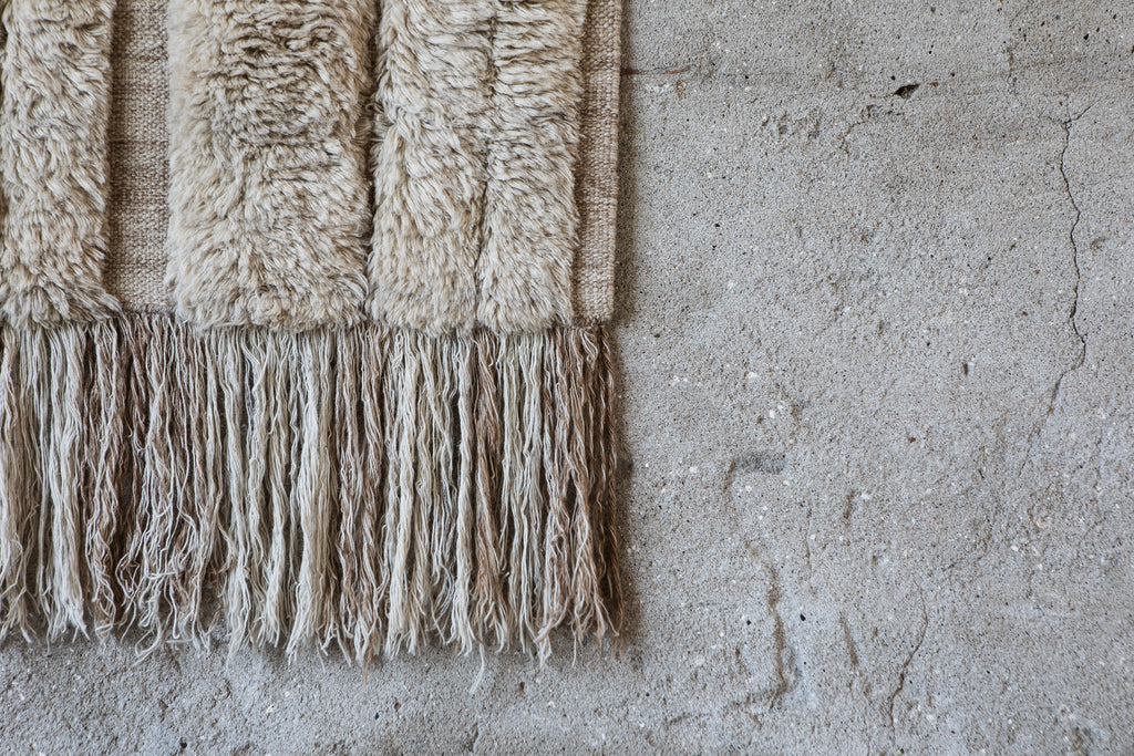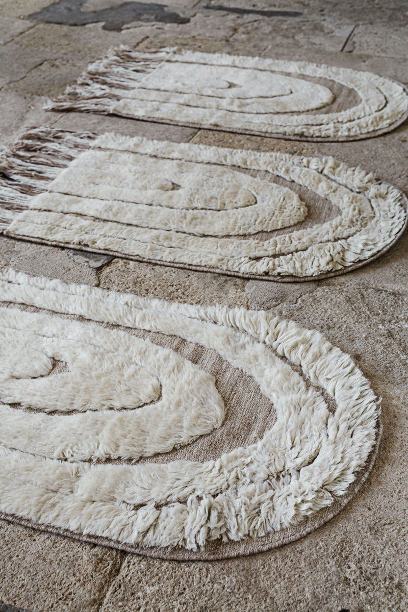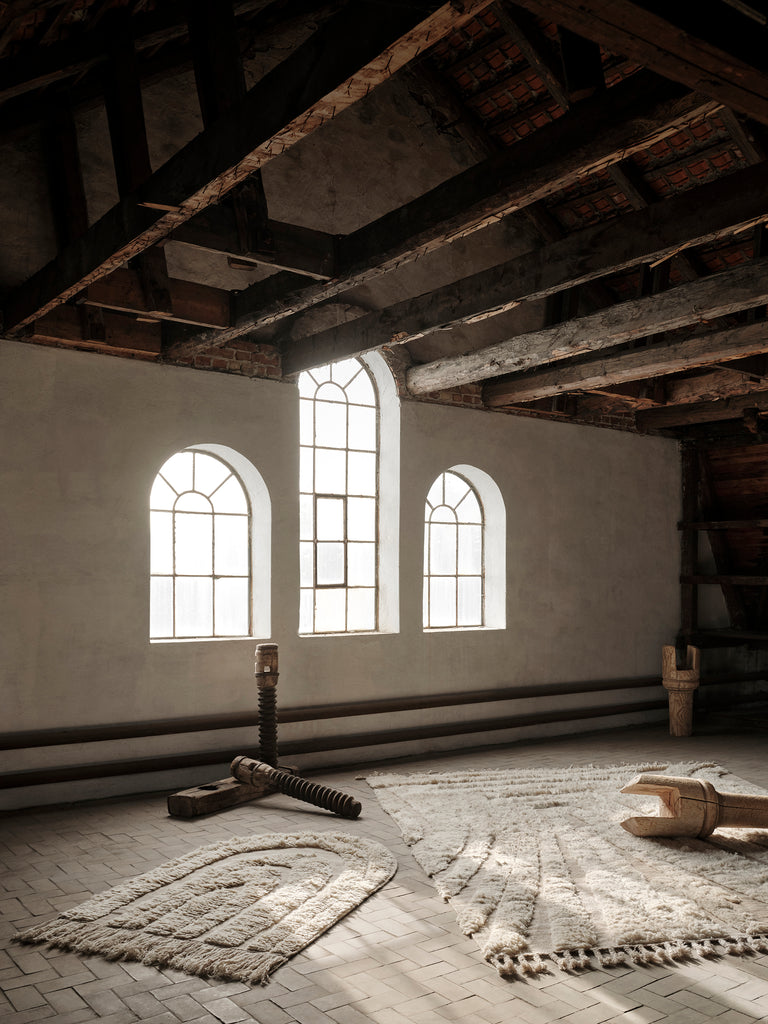 Natural fibres such as wool, cashmere and jute bring warmth, resilience, and timeless character, while synthetic fibres like recycled PET rugs are an ideal choice for outdoor areas.
