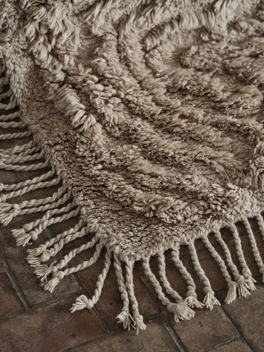 Natural fibres such as wool, cashmere and jute bring warmth, resilience, and timeless character, while synthetic fibres like recycled PET rugs are an ideal choice for outdoor areas.