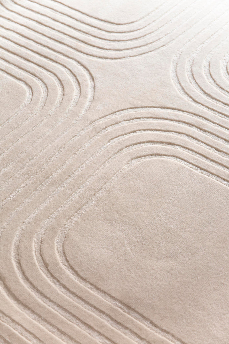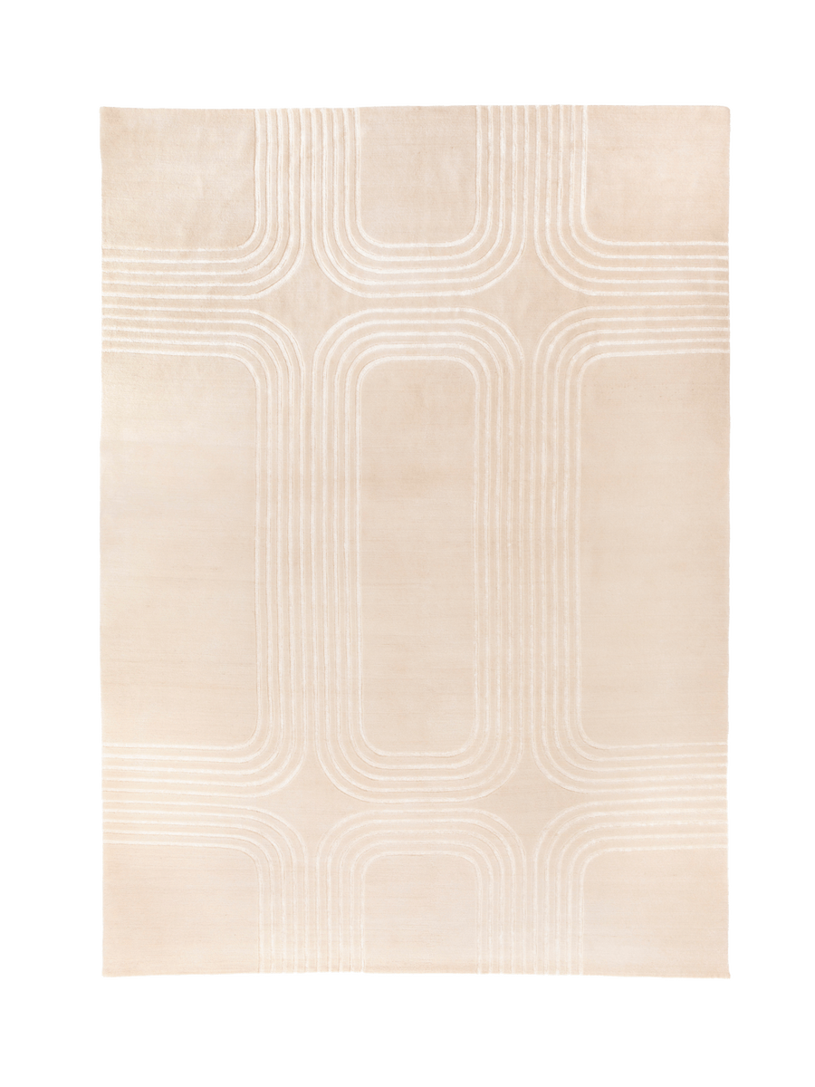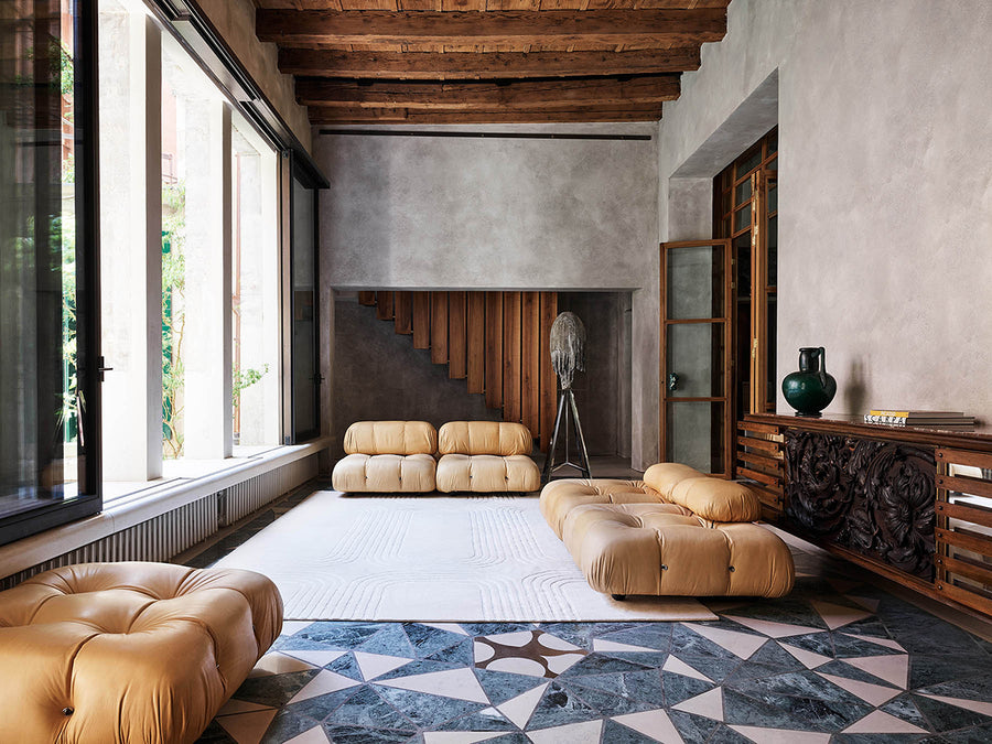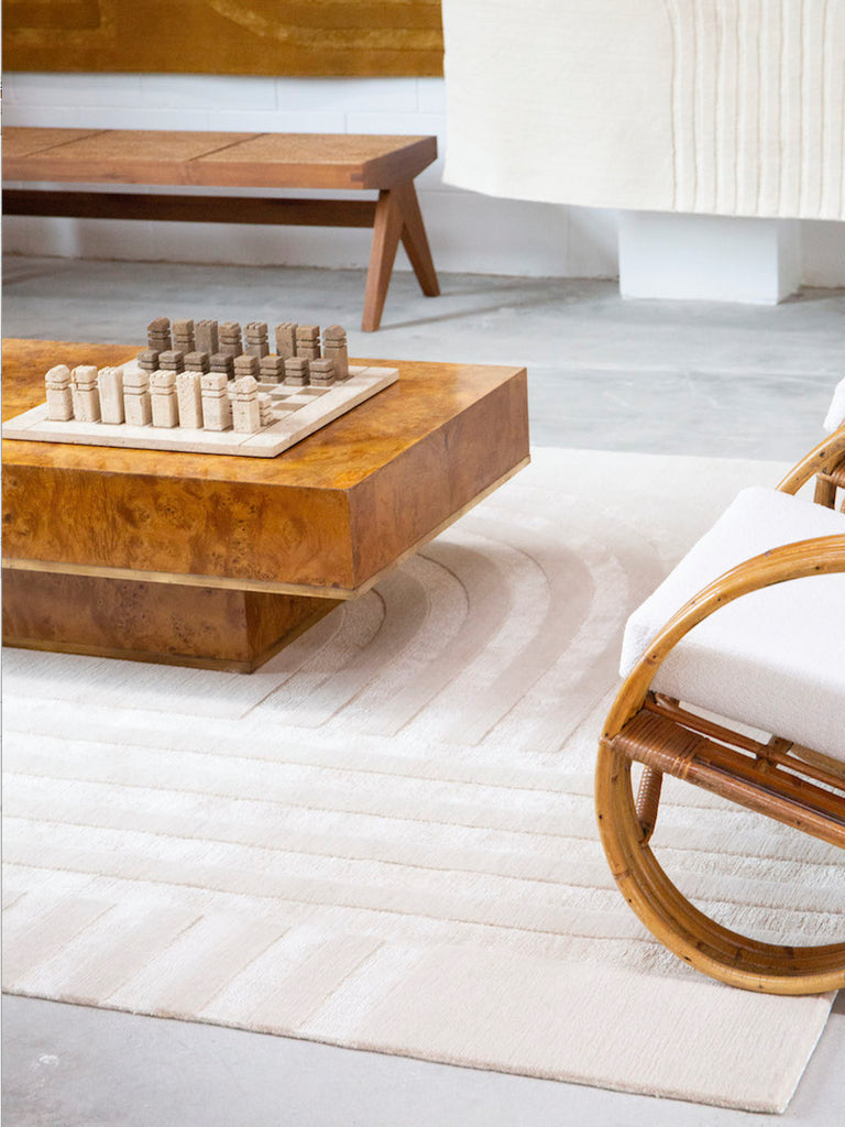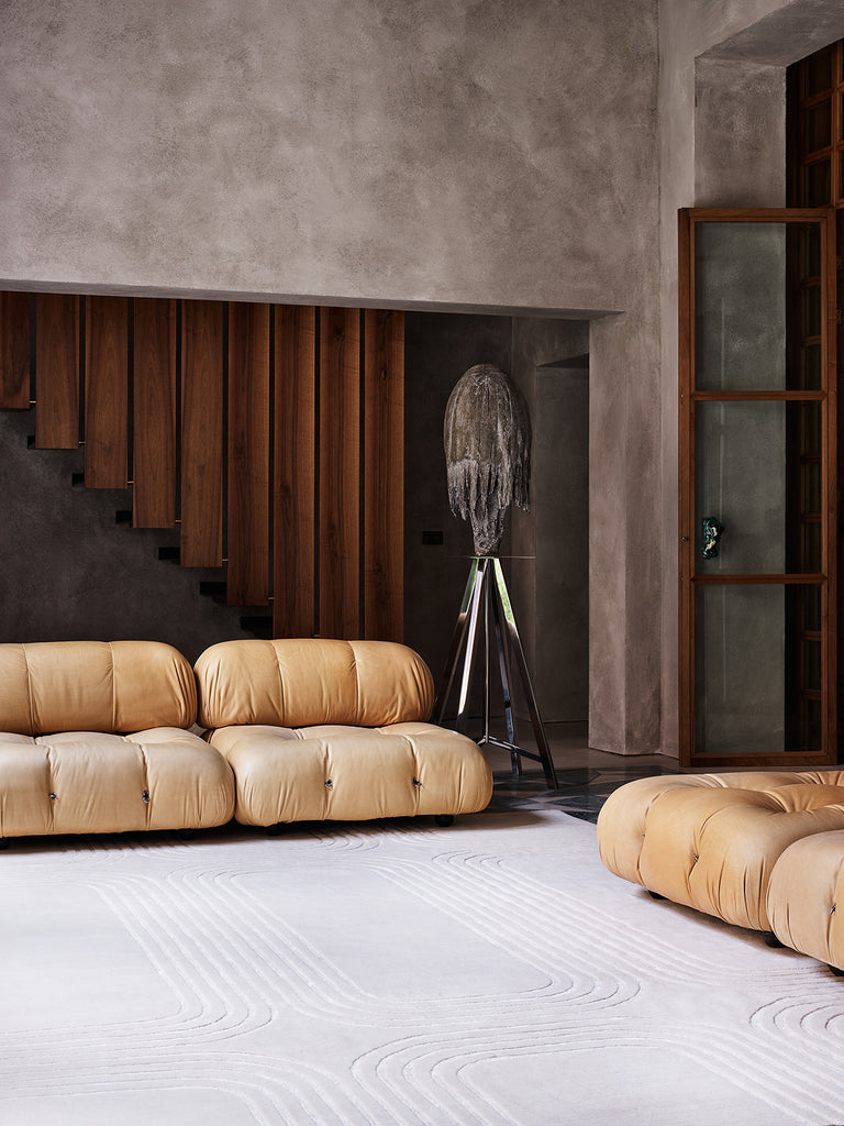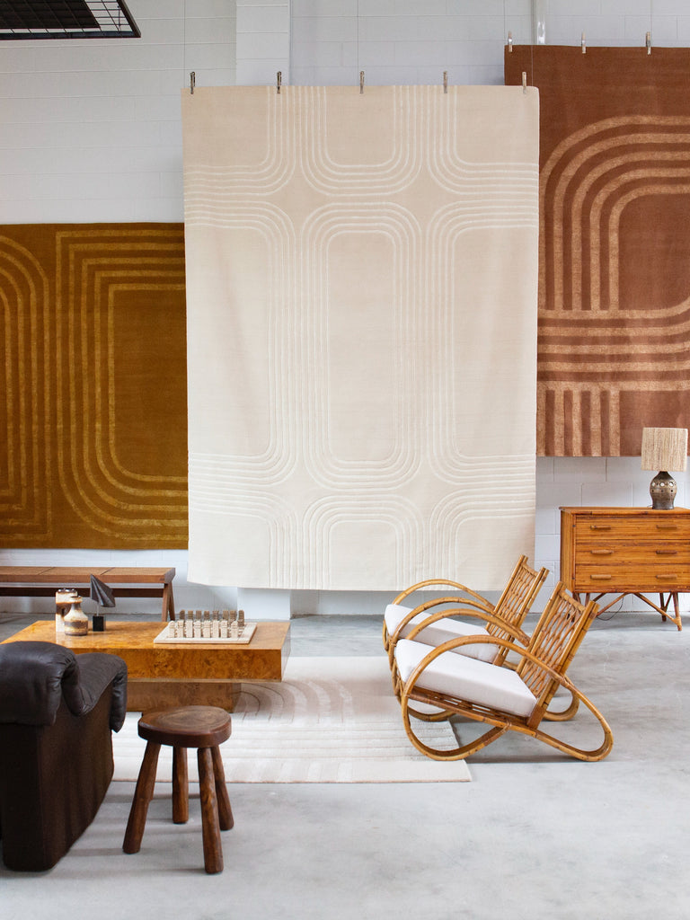 Natural fibres such as wool, cashmere and jute bring warmth, resilience, and timeless character, while synthetic fibres like recycled PET rugs are an ideal choice for outdoor areas.