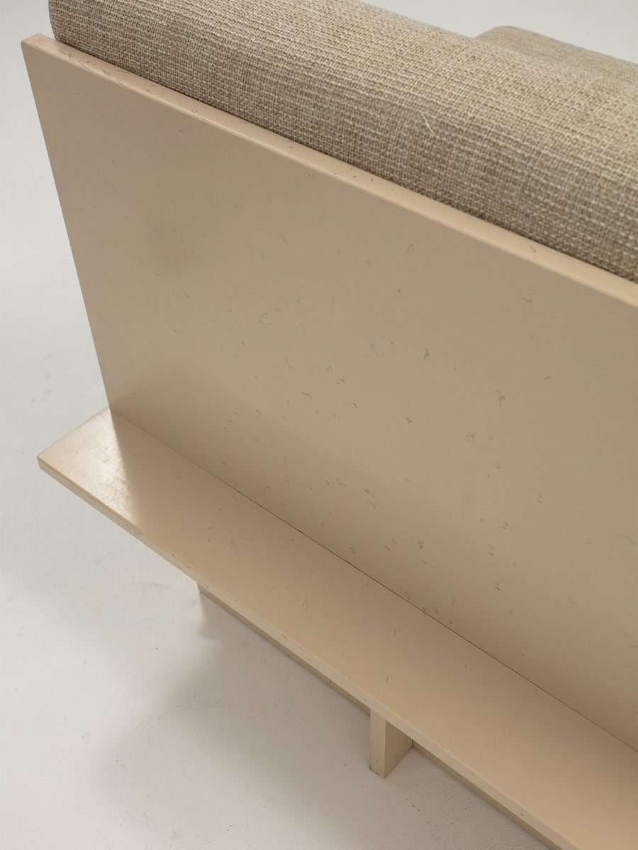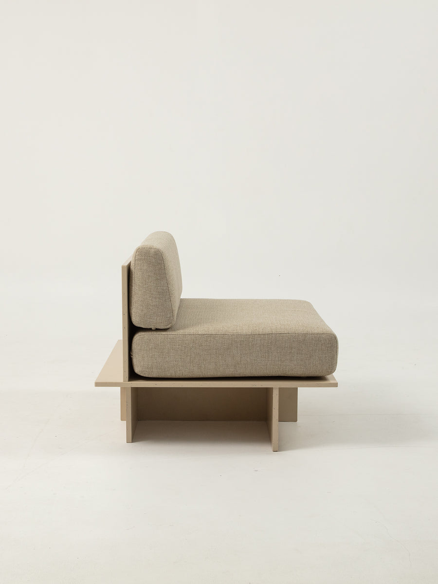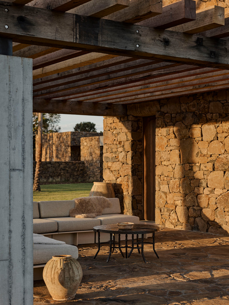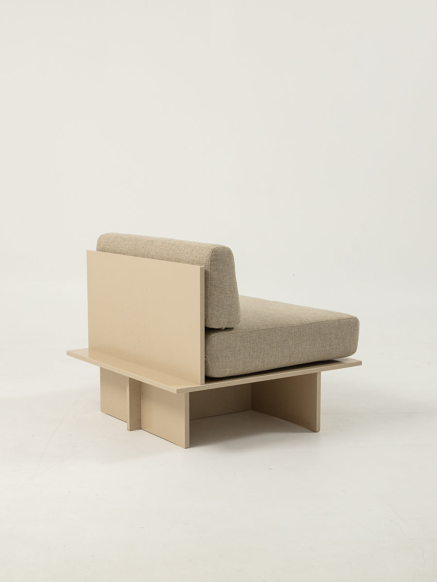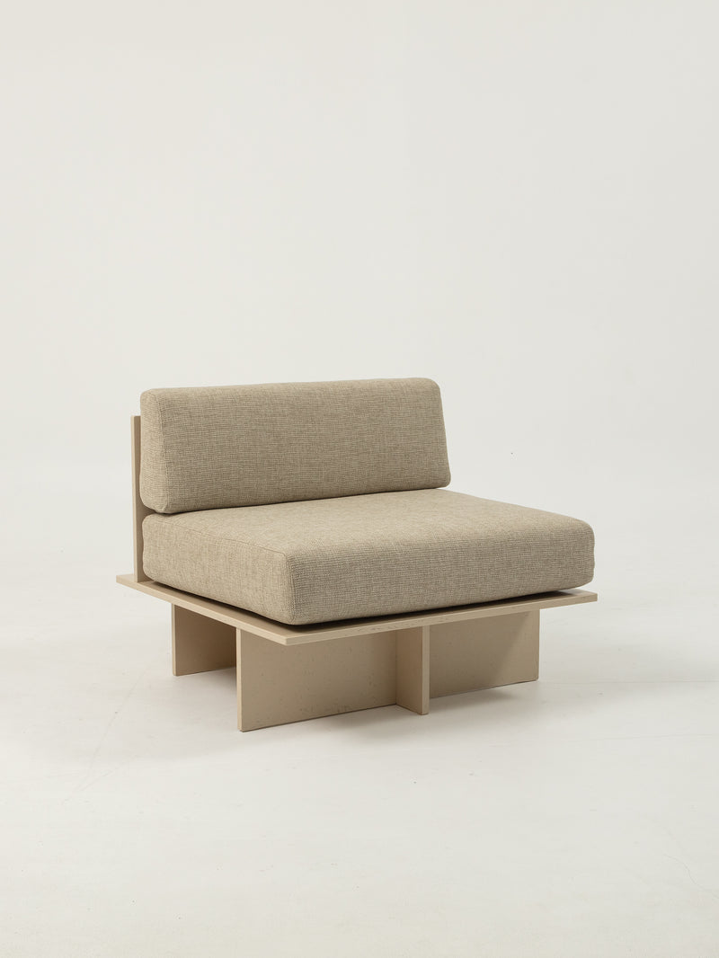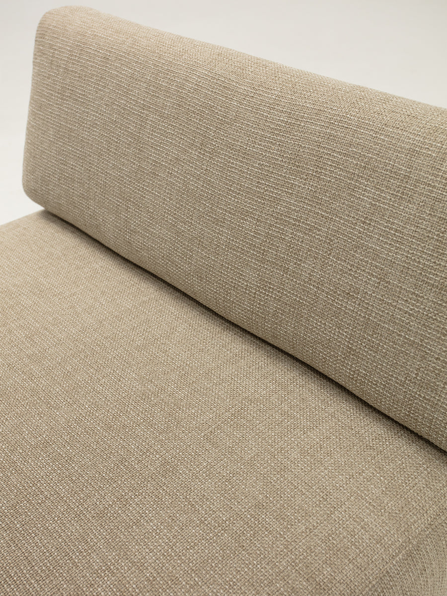 Its minimal, architectural lines are softened by the material’s natural variations, creating subtle markings that echo the look and depth of travertine. Outdoor cushions are finished in a tactile Italian fabric that feels fresh and breathable year-round. Soft yet resilient, they offer lasting comfort and include discreet straps to keep them neatly in place. A friction-fit system allows for easy, tool-free assembly, while the gently curved legs create stability across a range of outdoor surfaces.
