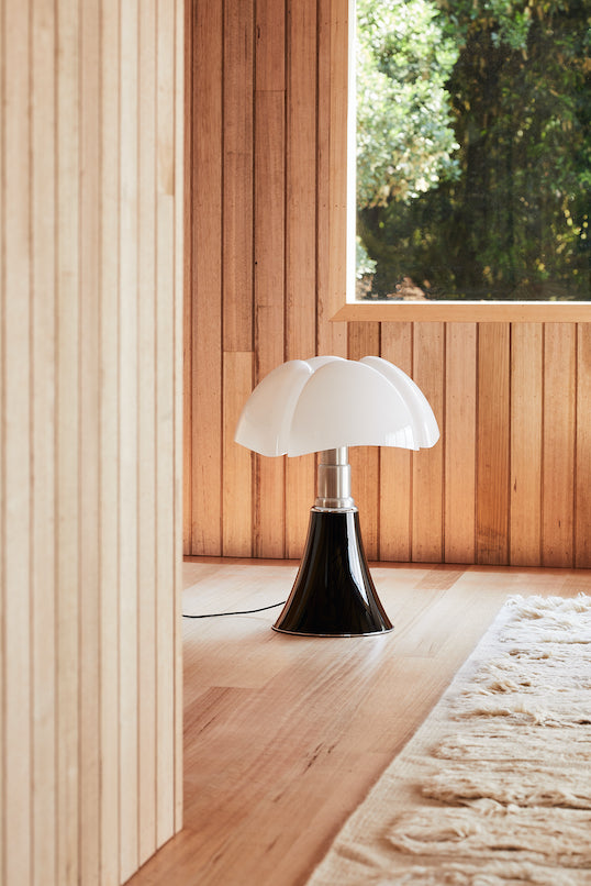 Designed in 1965 by Italian designer Gae Aulenti, the Pipistrello Lamp is an icon of design and through its wonderful form epitomises modernity and elegance.