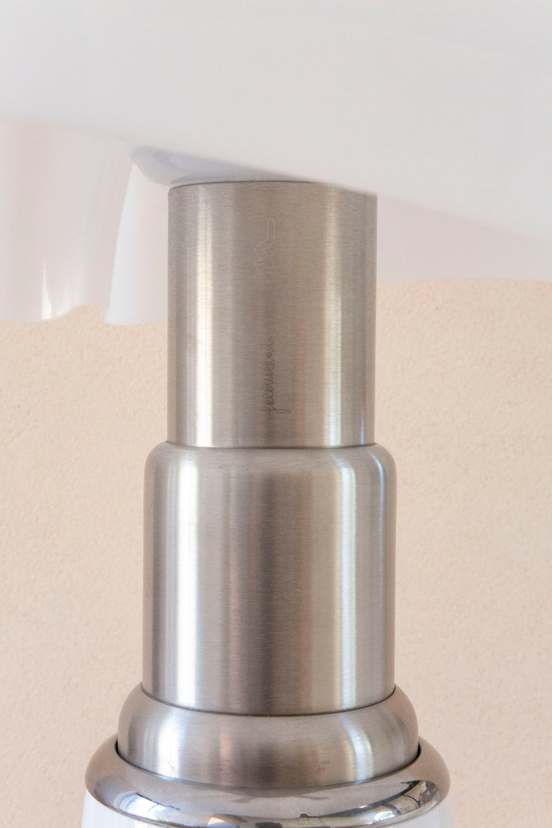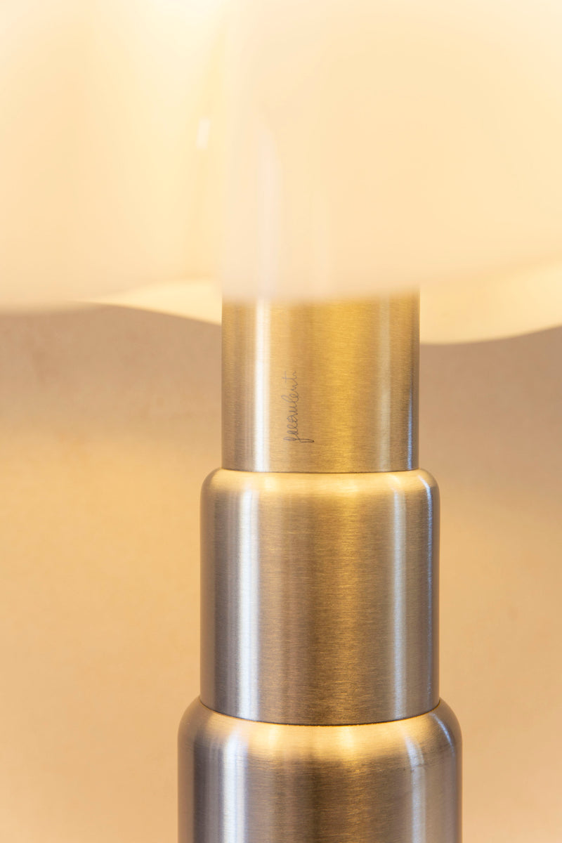 With a fluted telescopic base which grows over 20cm, it allows the piece to transform between a table and floor lamp.
