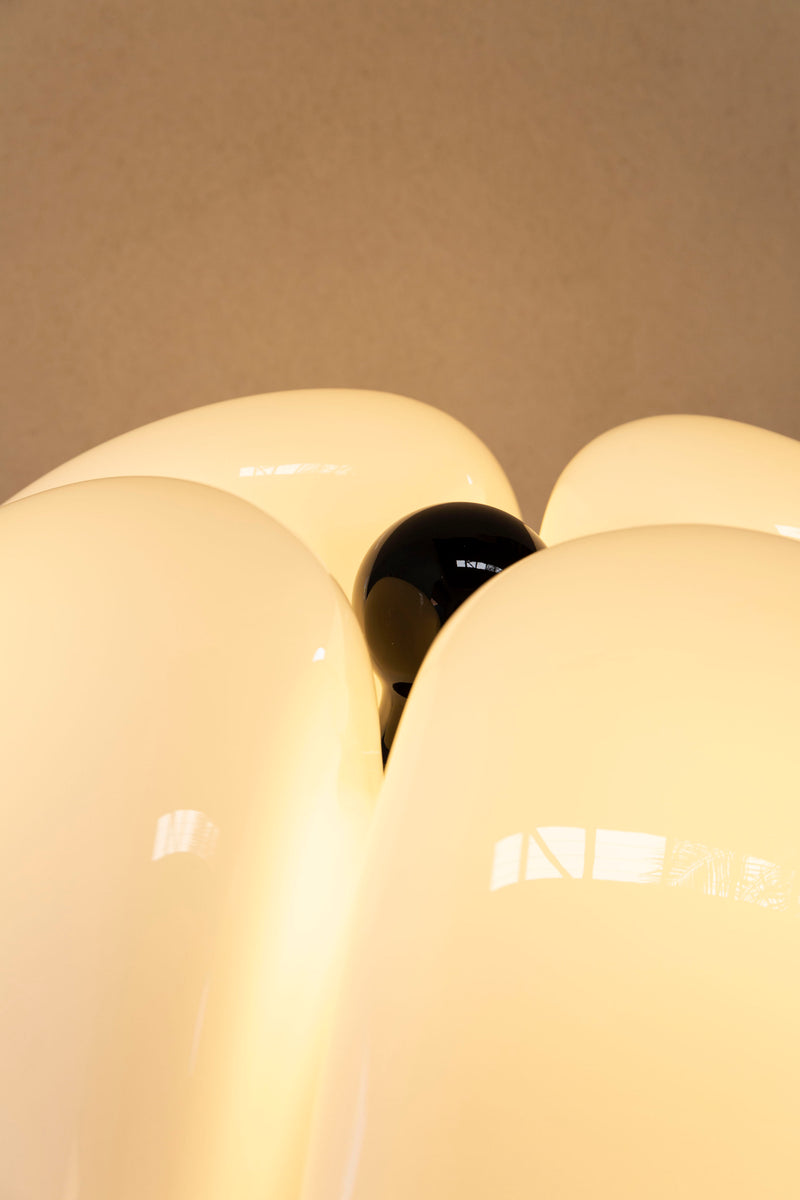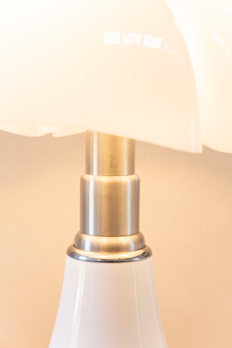 Italian for 'bat', the shade of the Pippistrello is inspired by the shape of the wings of a bat. Once lit, the translucent, opalescent shade delivers a beautiful diffused light - casting a soft light upward and a brighter light for work or reading below.