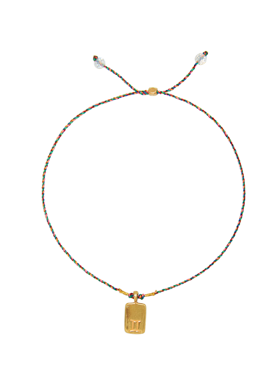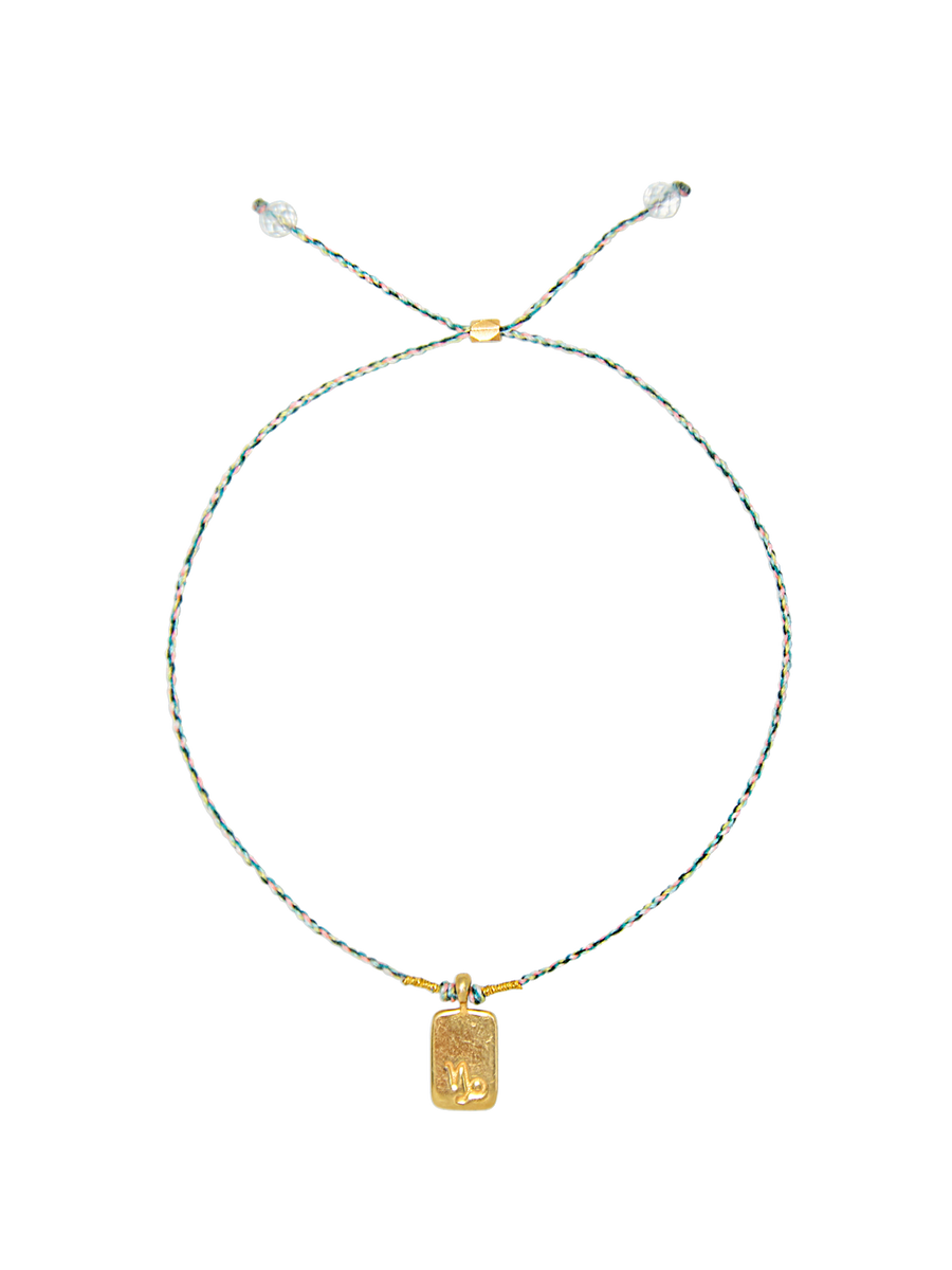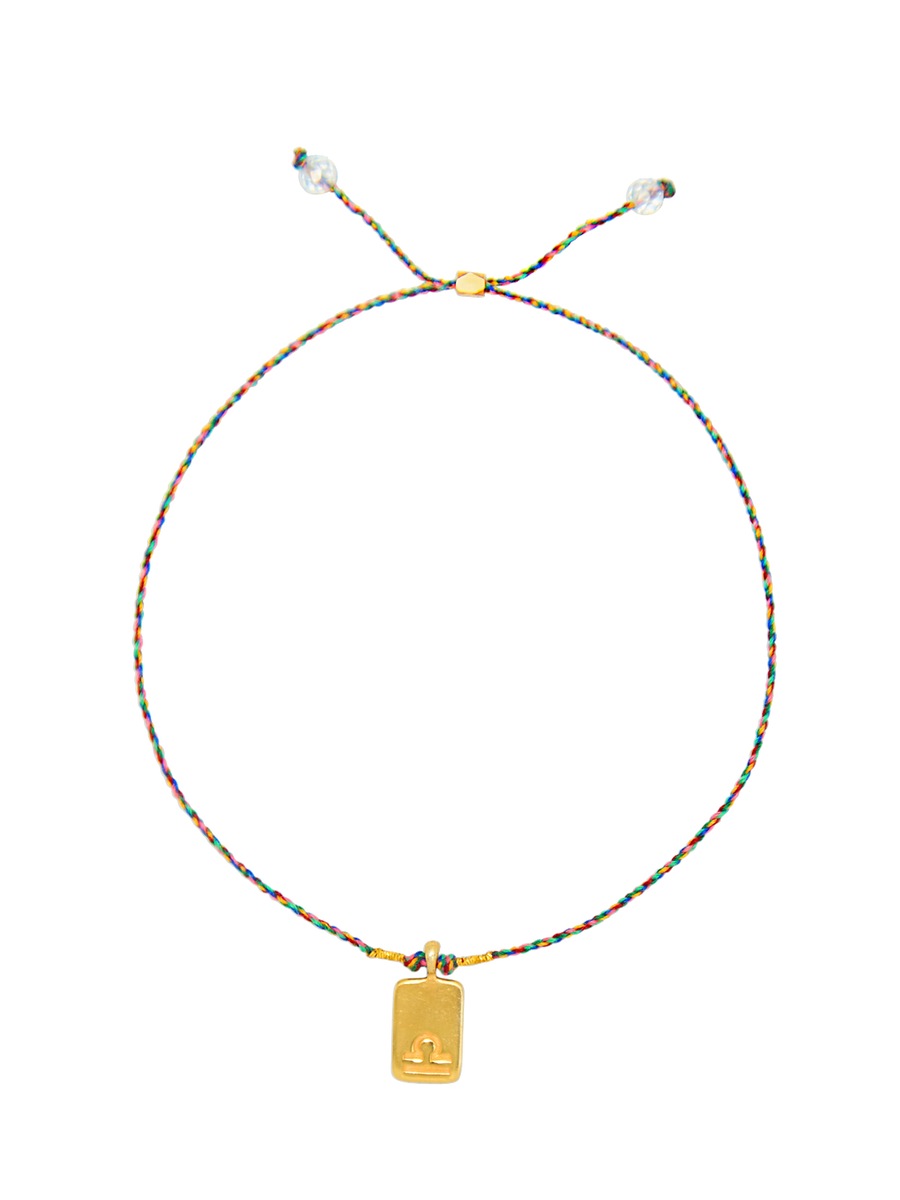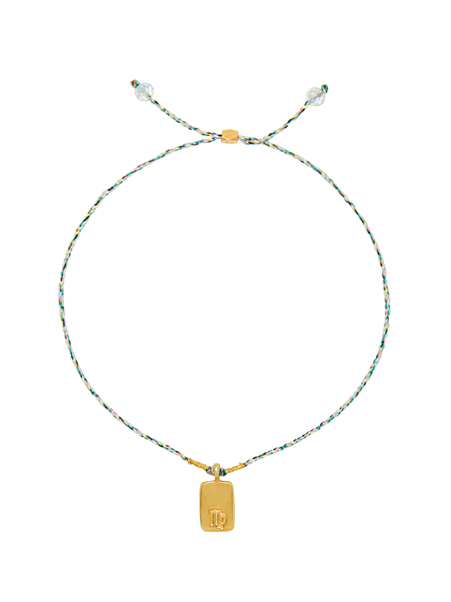 Handwoven with delicate threads and finished with a gold-plated silver charm, this bracelet celebrates each zodiac sign with quiet elegance. Its adjustable design ensures a perfect fit, making it effortless to wear alone or layered. A subtle nod to the stars — timeless, personal, and refined.