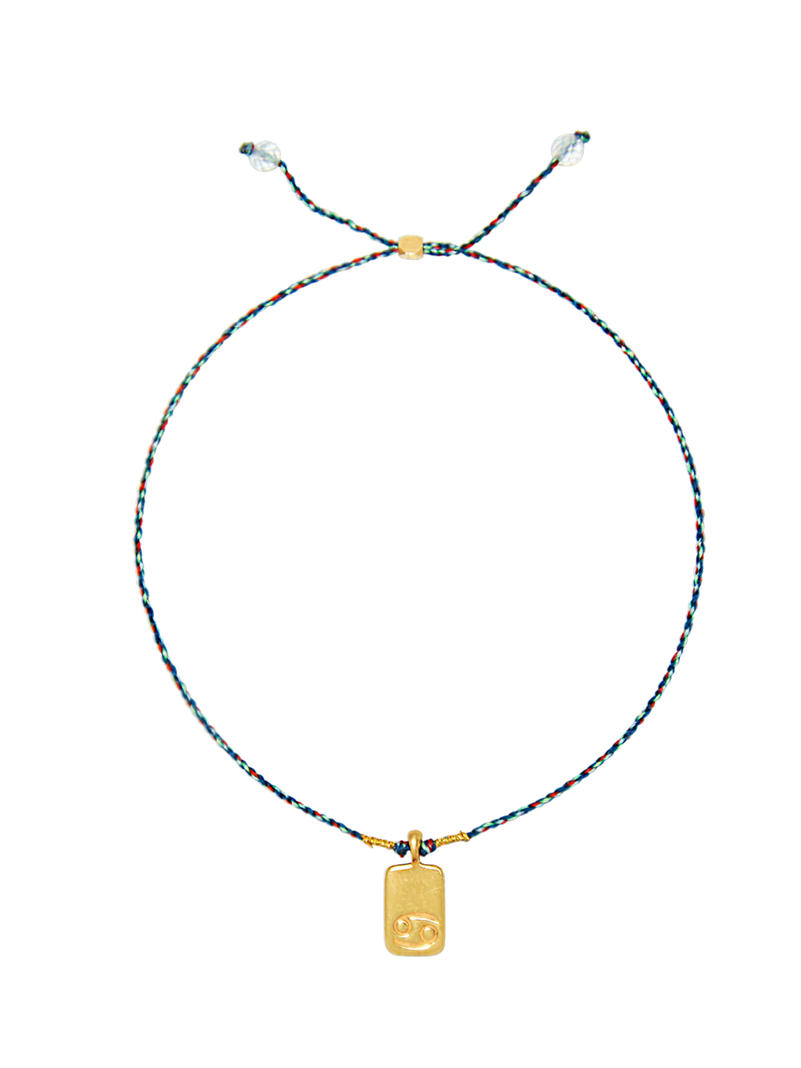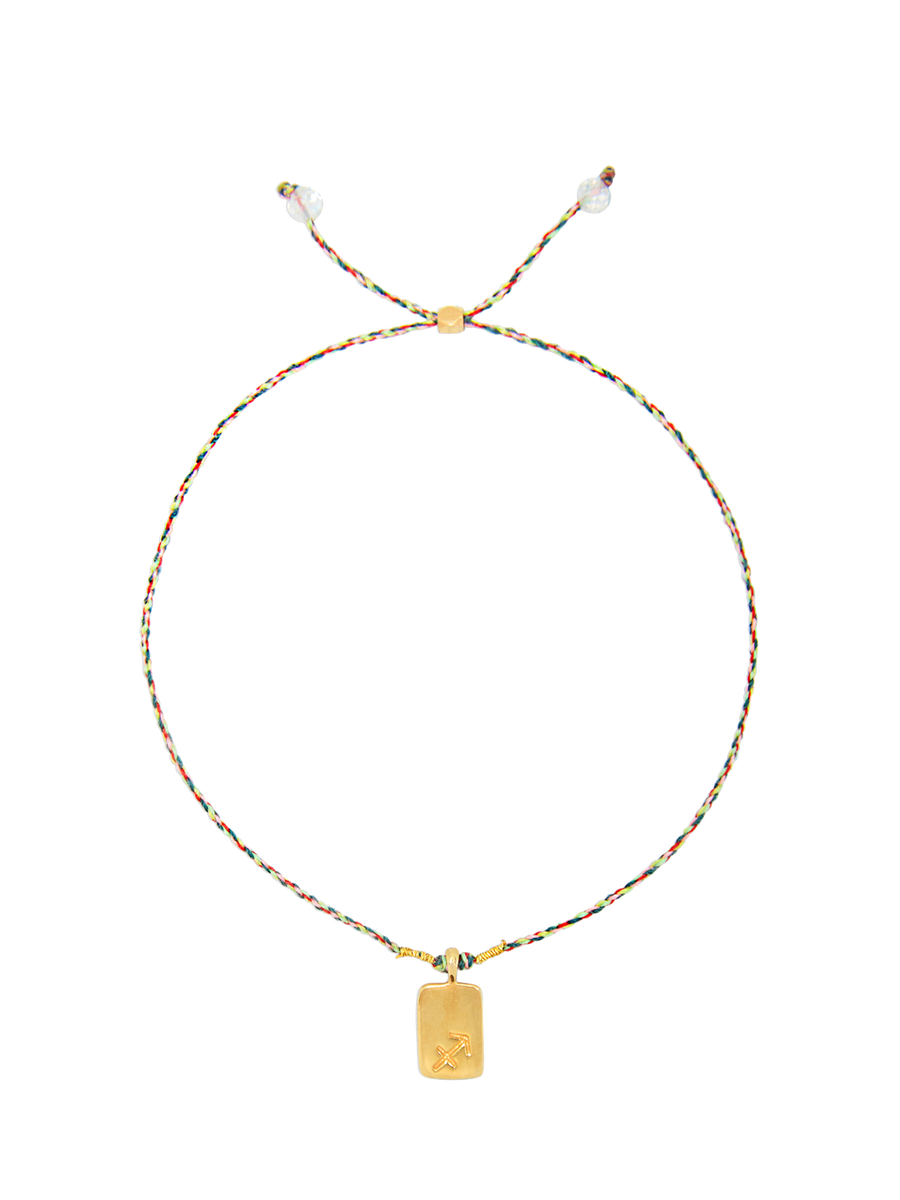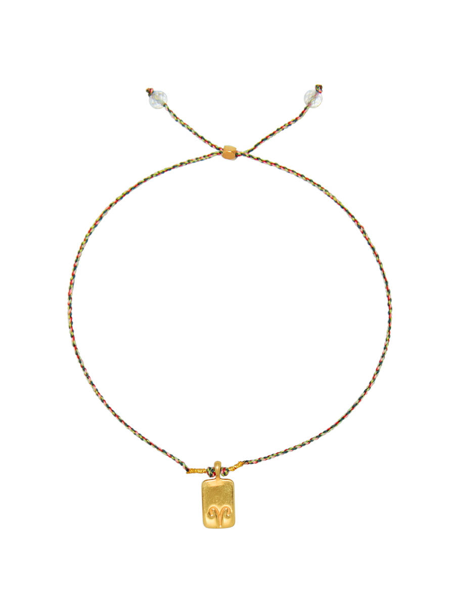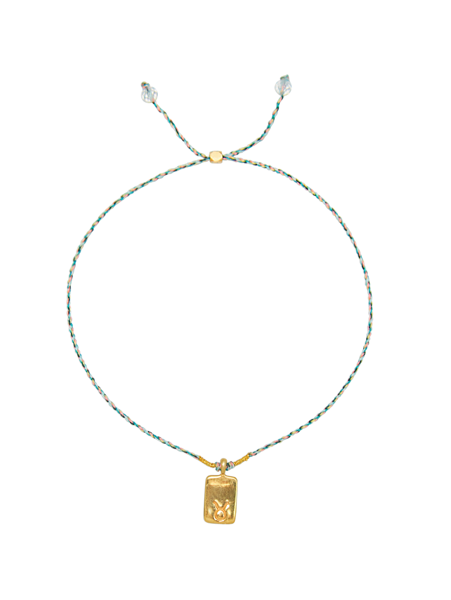 Handwoven with delicate threads and finished with a gold-plated silver charm, this bracelet celebrates each zodiac sign with quiet elegance. Its adjustable design ensures a perfect fit, making it effortless to wear alone or layered. A subtle nod to the stars — timeless, personal, and refined.