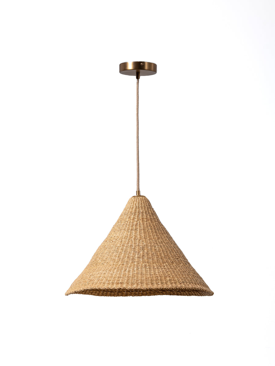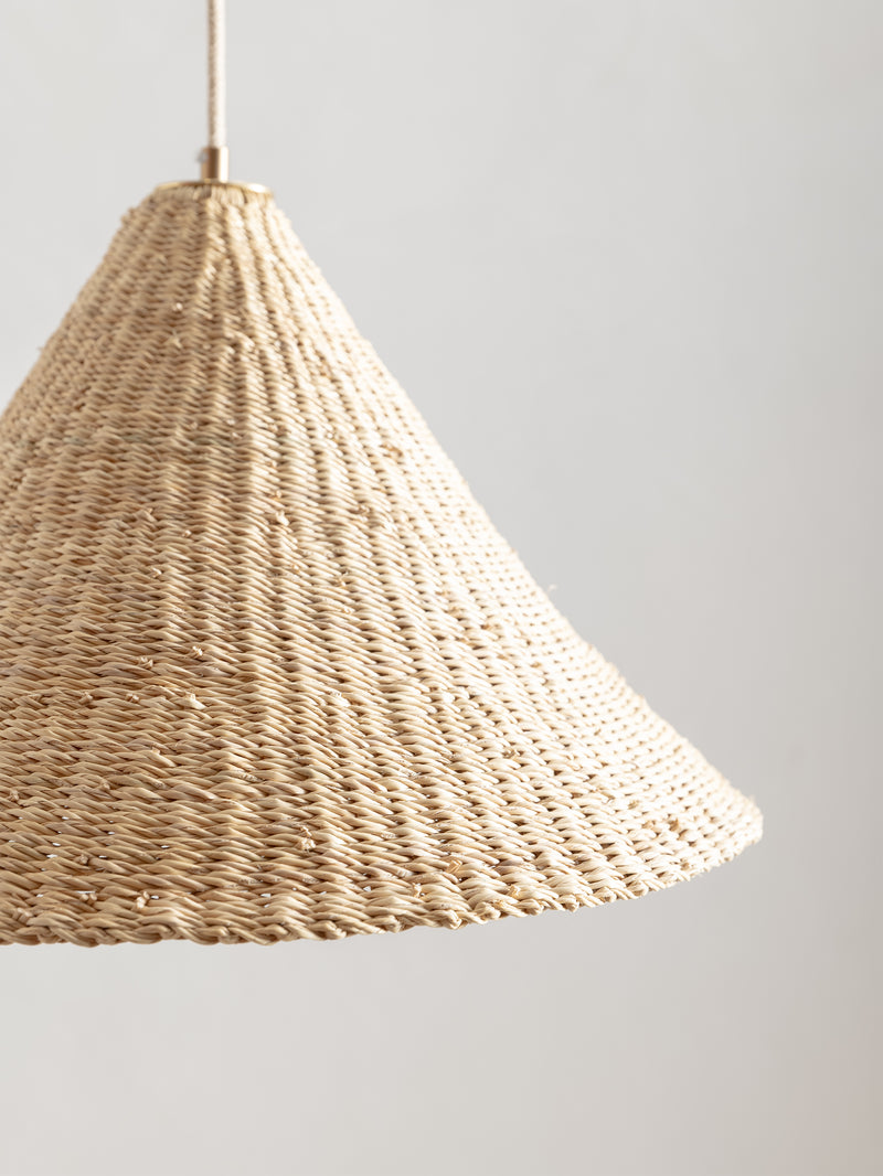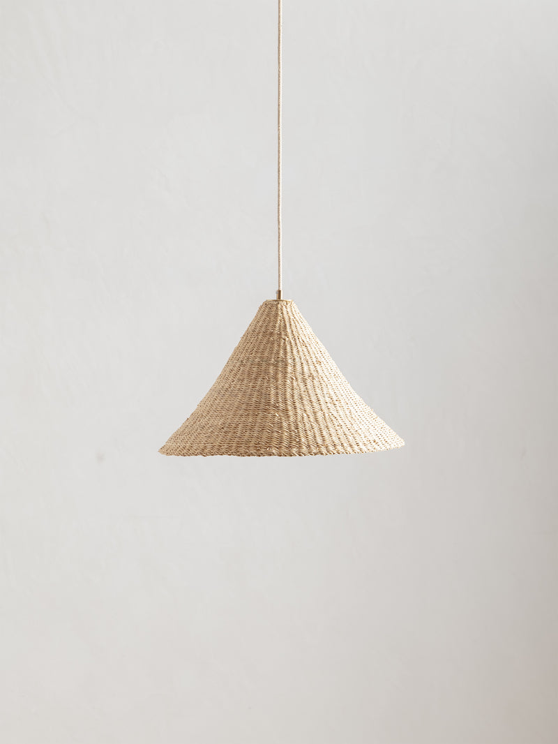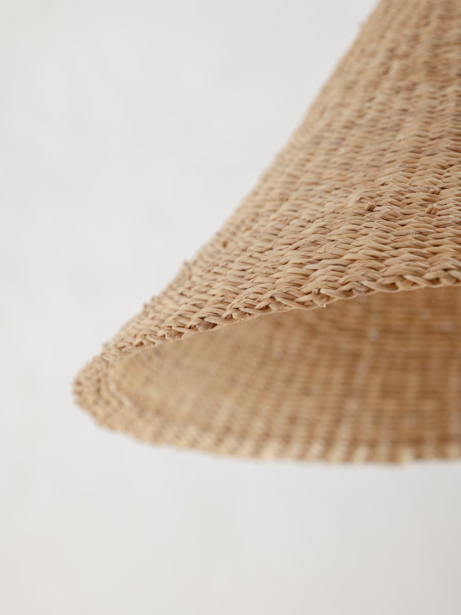 Handwoven from elephant grass by a cooperative of women in northern Ghana. Named for there funghi-like form, and when lit emit an ambient warm glow. As each shade is handwoven in a conical shape, every piece is slightly different and its own unique piece.