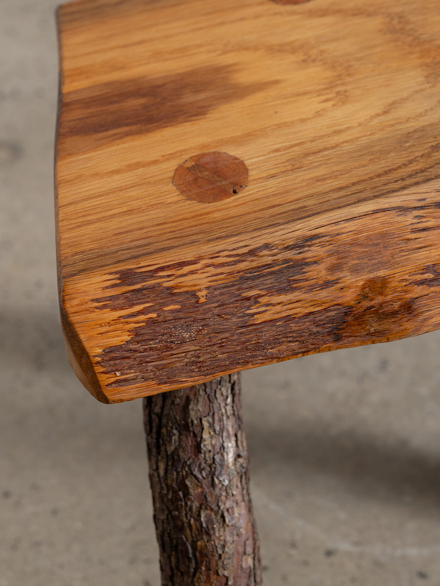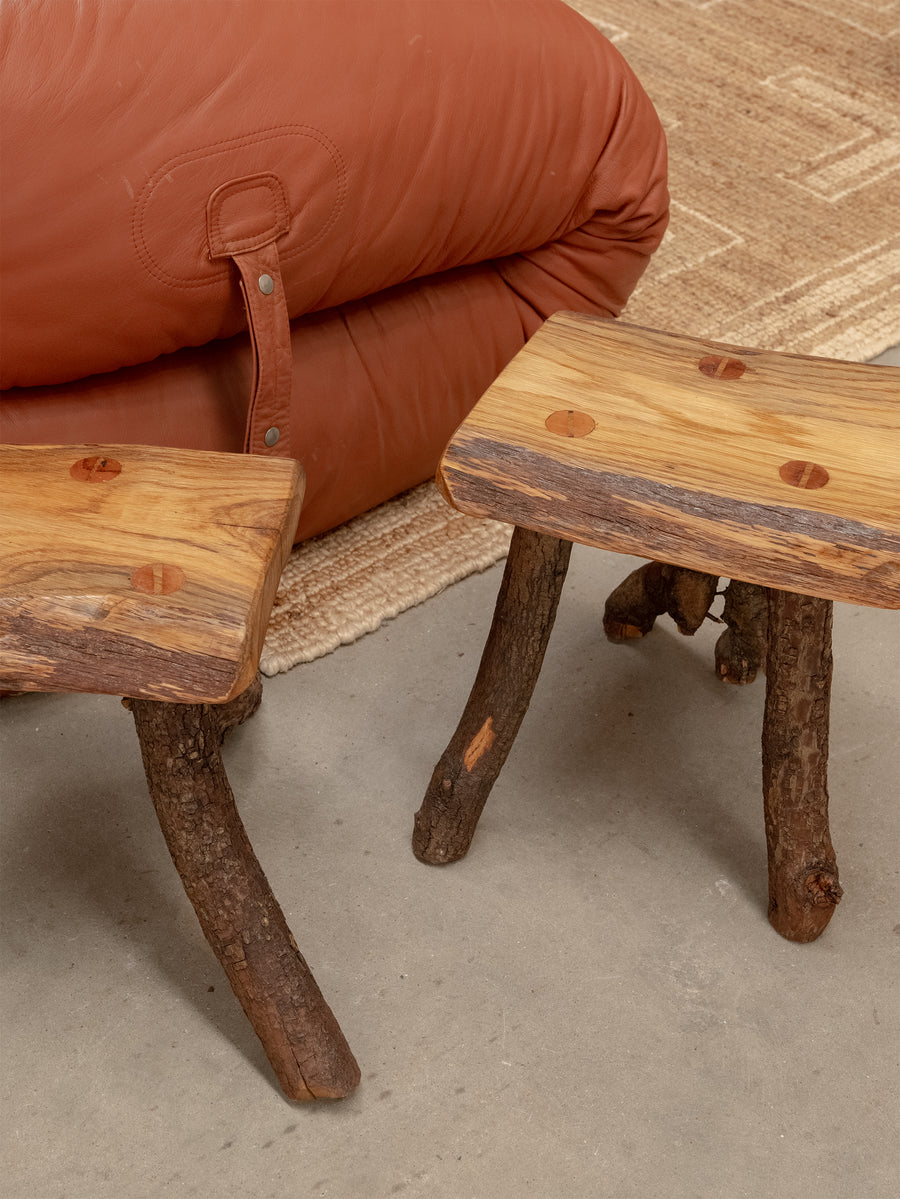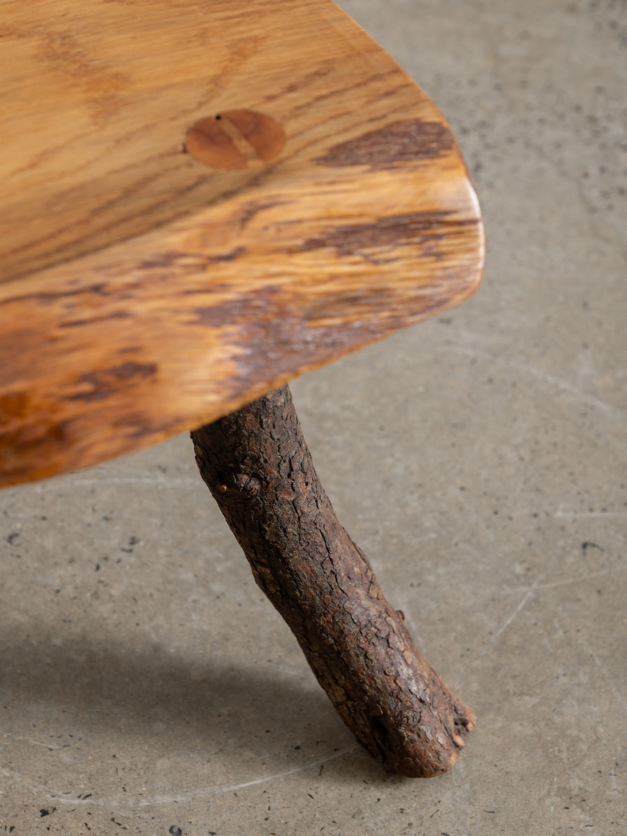 Raw and grounded, this Italian wooden stool embraces the irregular beauty of nature. Its seat is hewn from a solid block of timber, while the legs retain the wild, organic form of branches—twisting and tapering with a sculptural ease.