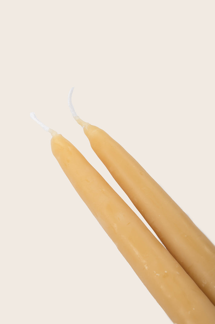 Created from pure beeswax, these elegant candle tapers are hand dipped using traditional techniques.