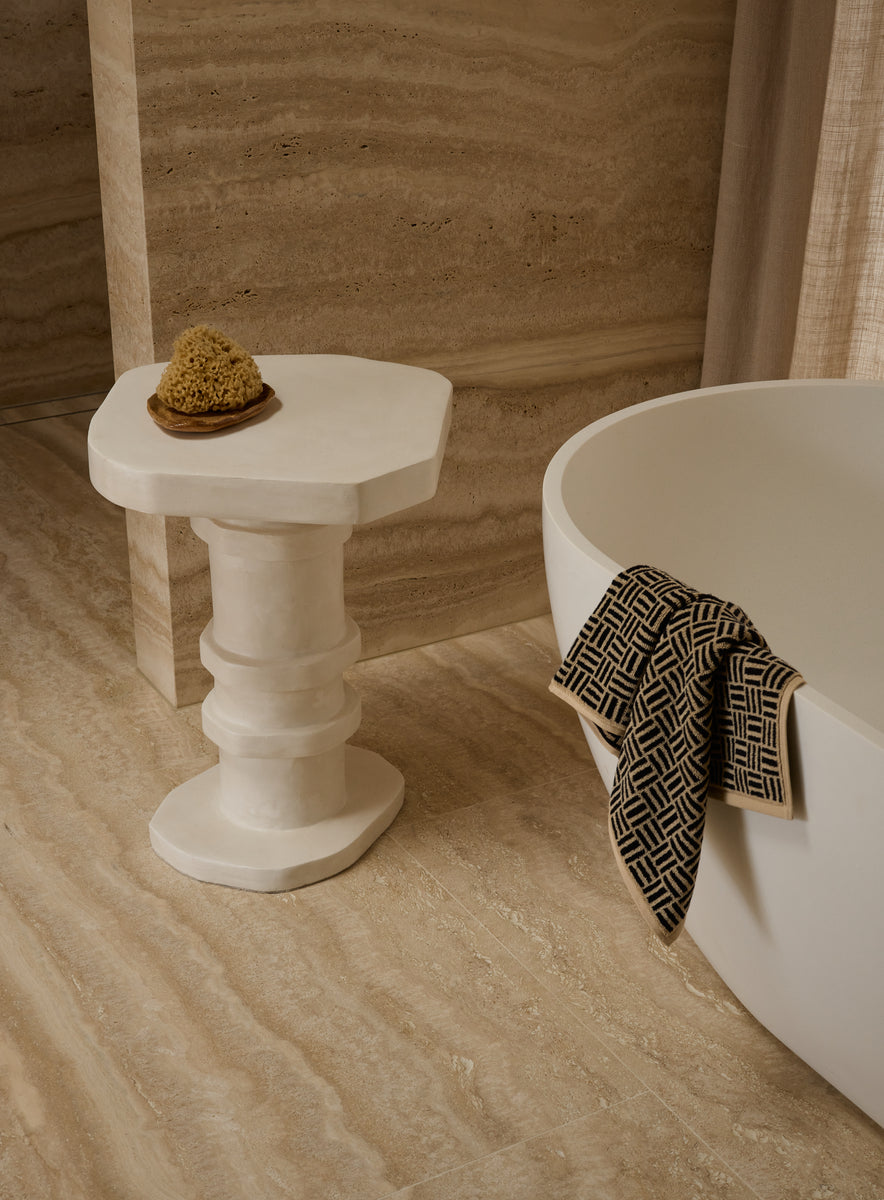 The Opus Side Table is crafted from the meticulous application of papier mache to each substrate before skillfully building up layers of plaster, each carefully sanded and repeated for a flawless finish. Each piece is truly one-of-a-kind with its handmade touch.
