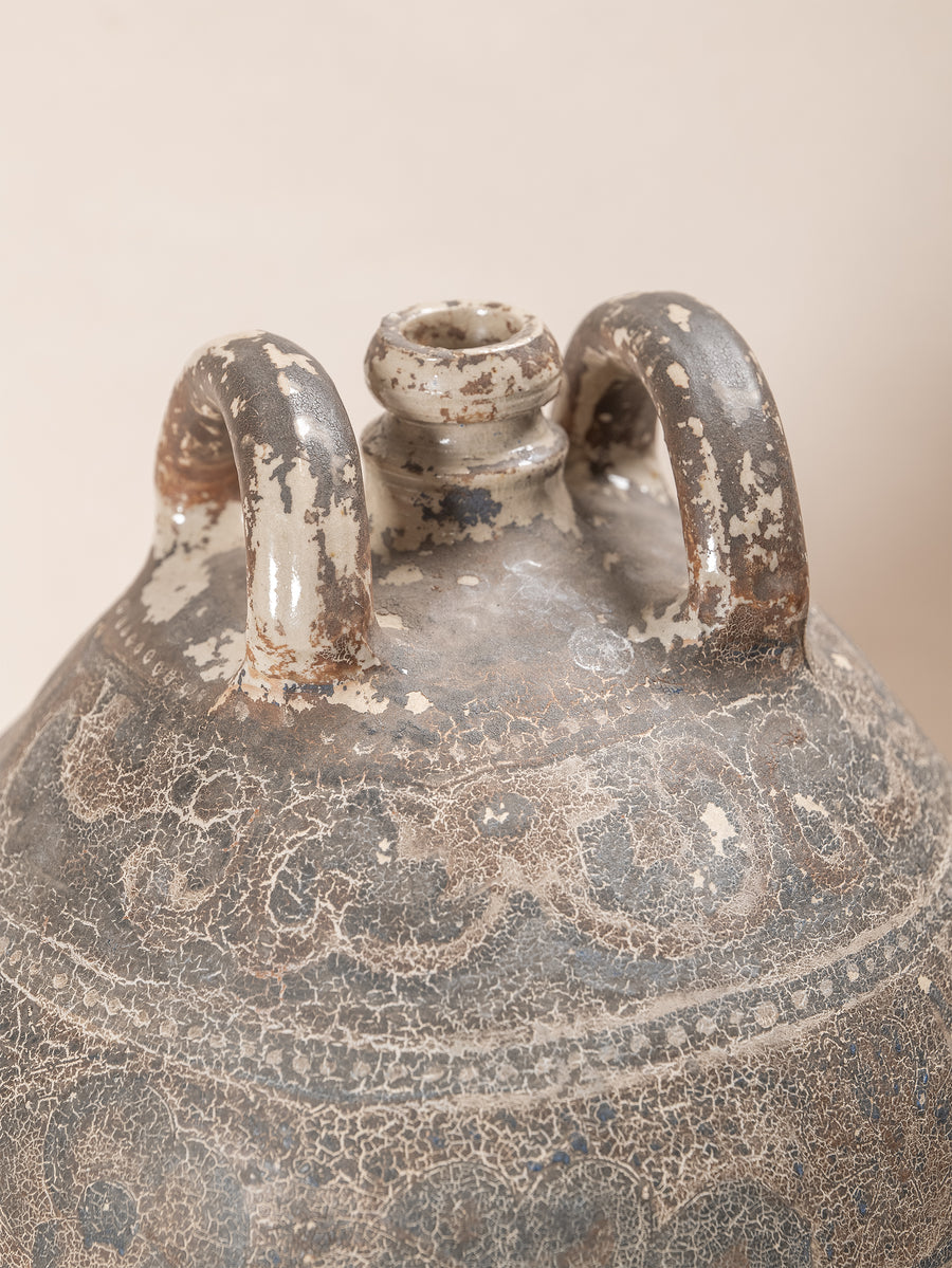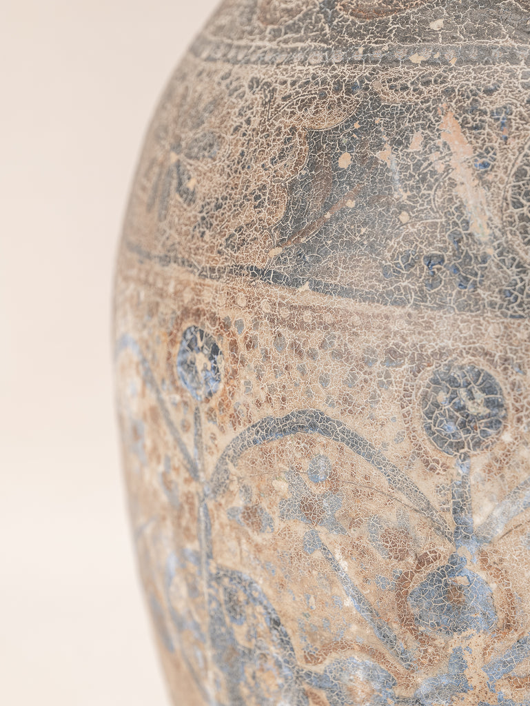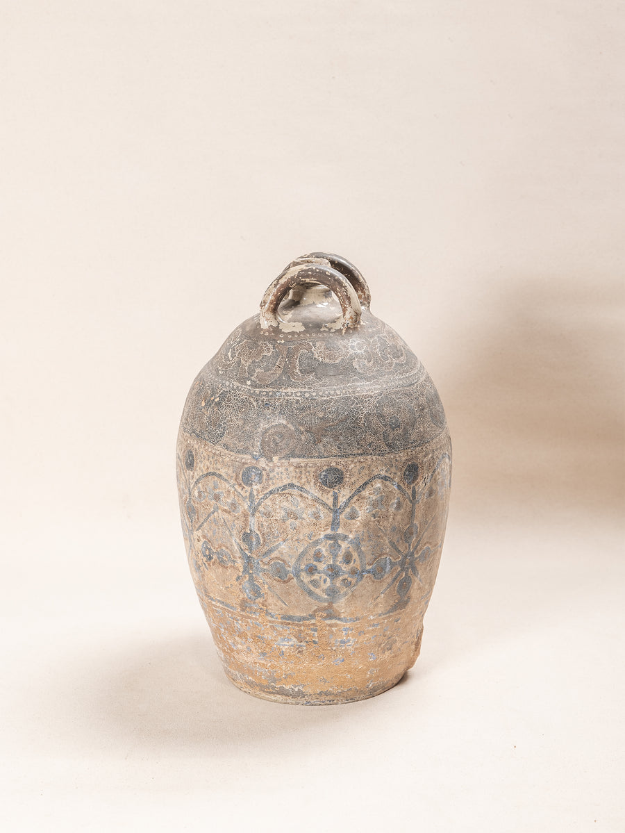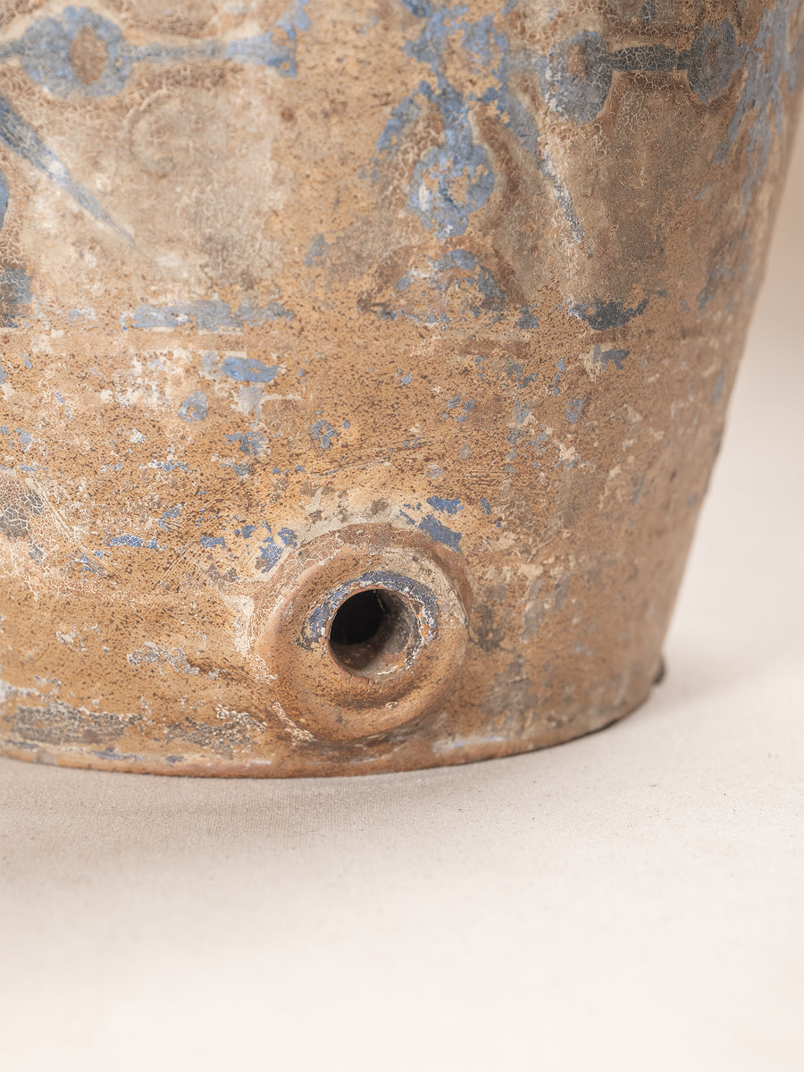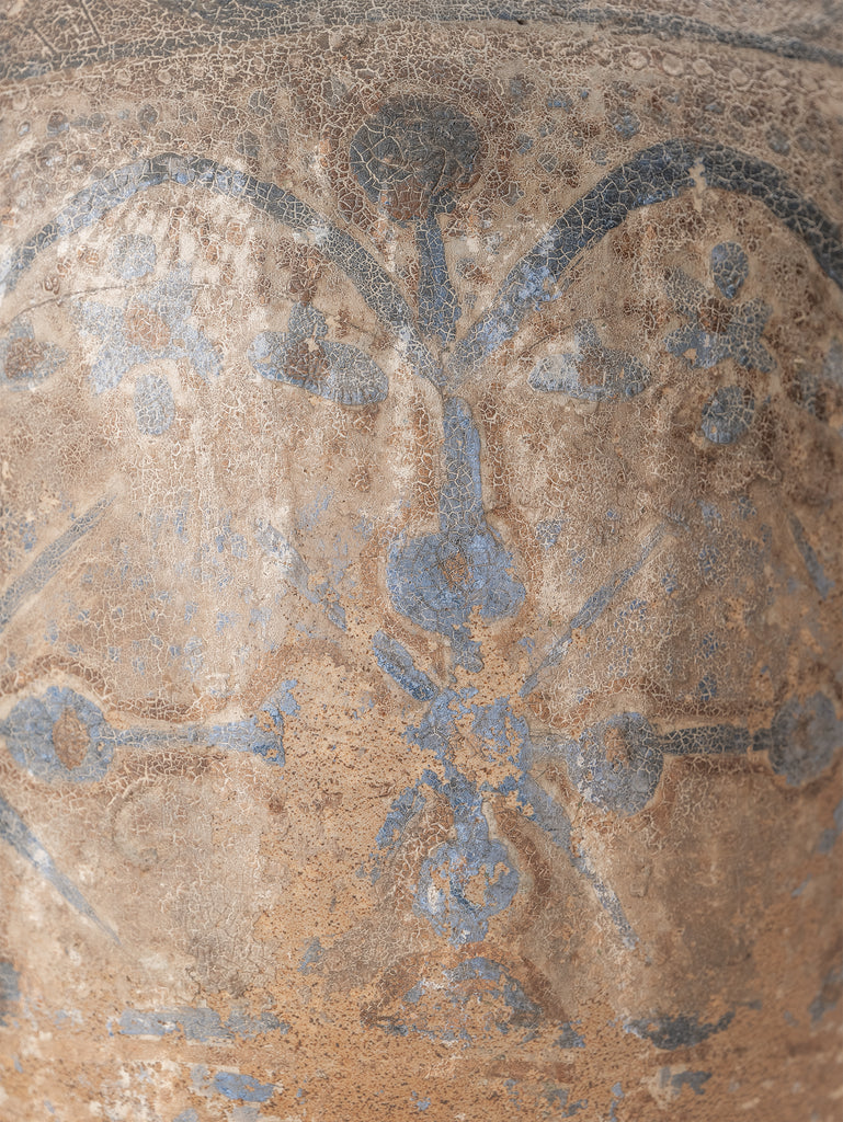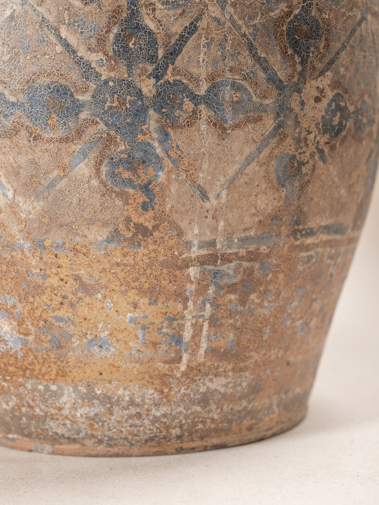 Steeped in history, this large Moorish vessel embodies the timeless artistry of Moroccan craftsmanship. Its weathered surface reveals a soft interplay of faded blues, earthen tones, and intricate hand-painted motifs - each layer bearing the marks of age and use. Both sculptural and functional, the urn’s generous form and aged finish lend an elemental beauty to interior spaces, celebrating imperfection and heritage in equal measure.