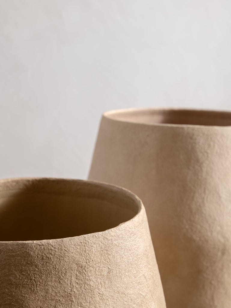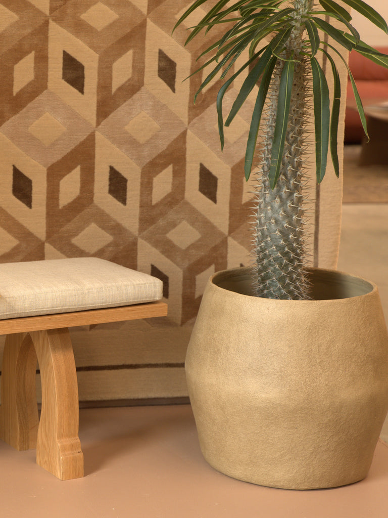 Part of Marie Michielssen’s CONSTRUCT collection for Serax, this paper-maché plant pot in earthy brown brings together form, function, and a tactile, hand-worked finish. With a focus on proportion and materiality, each pot is shaped from reimagined cones and cylinders—unexpected combinations that feel balanced, sculptural, and quietly expressive.