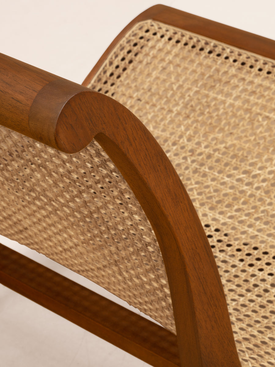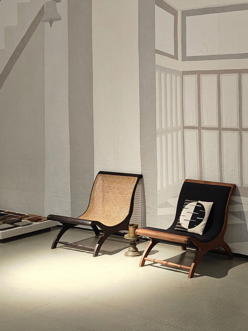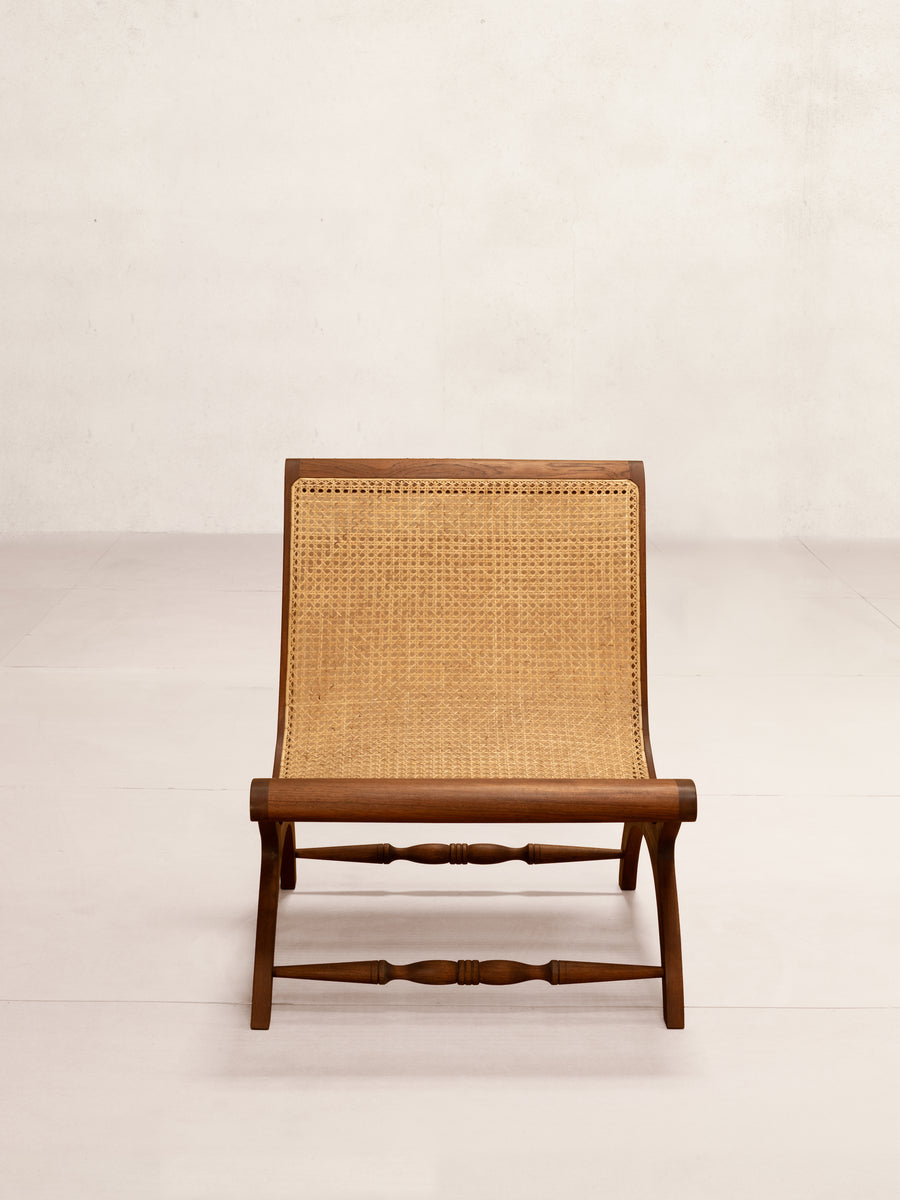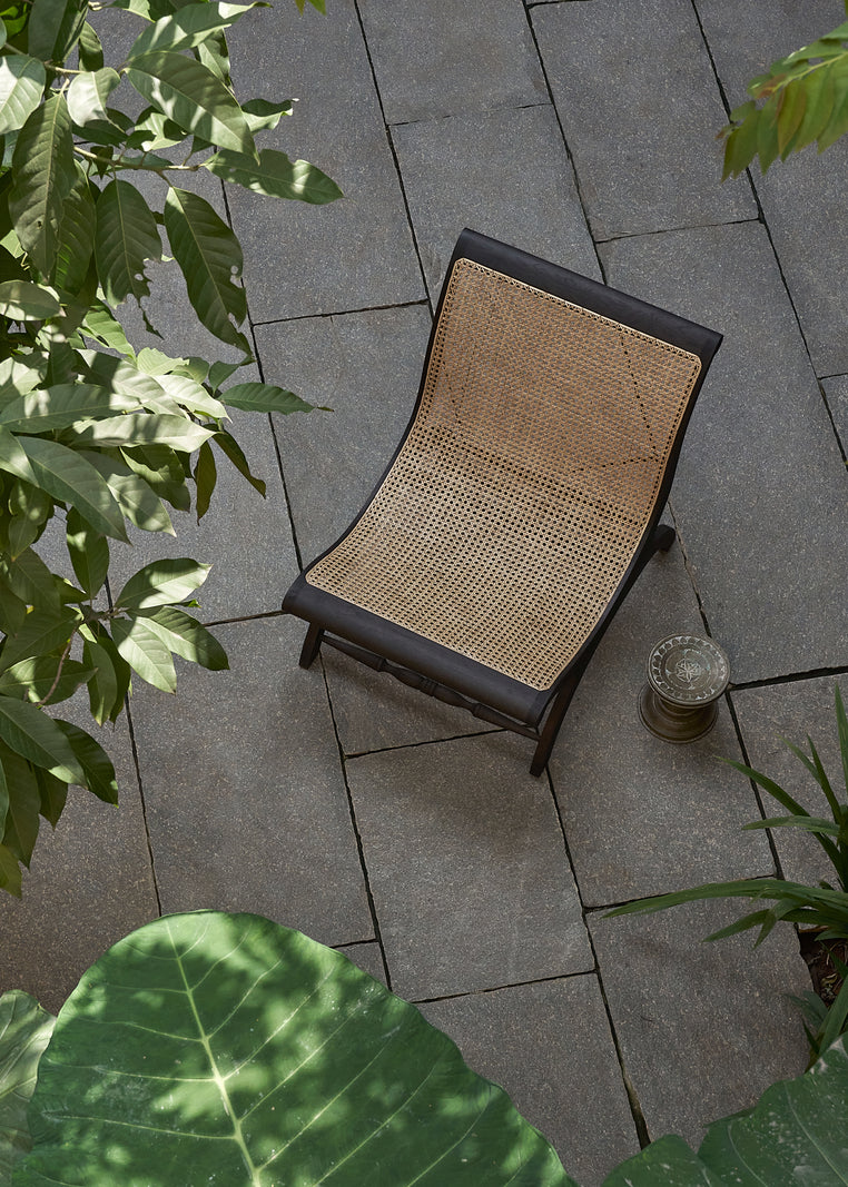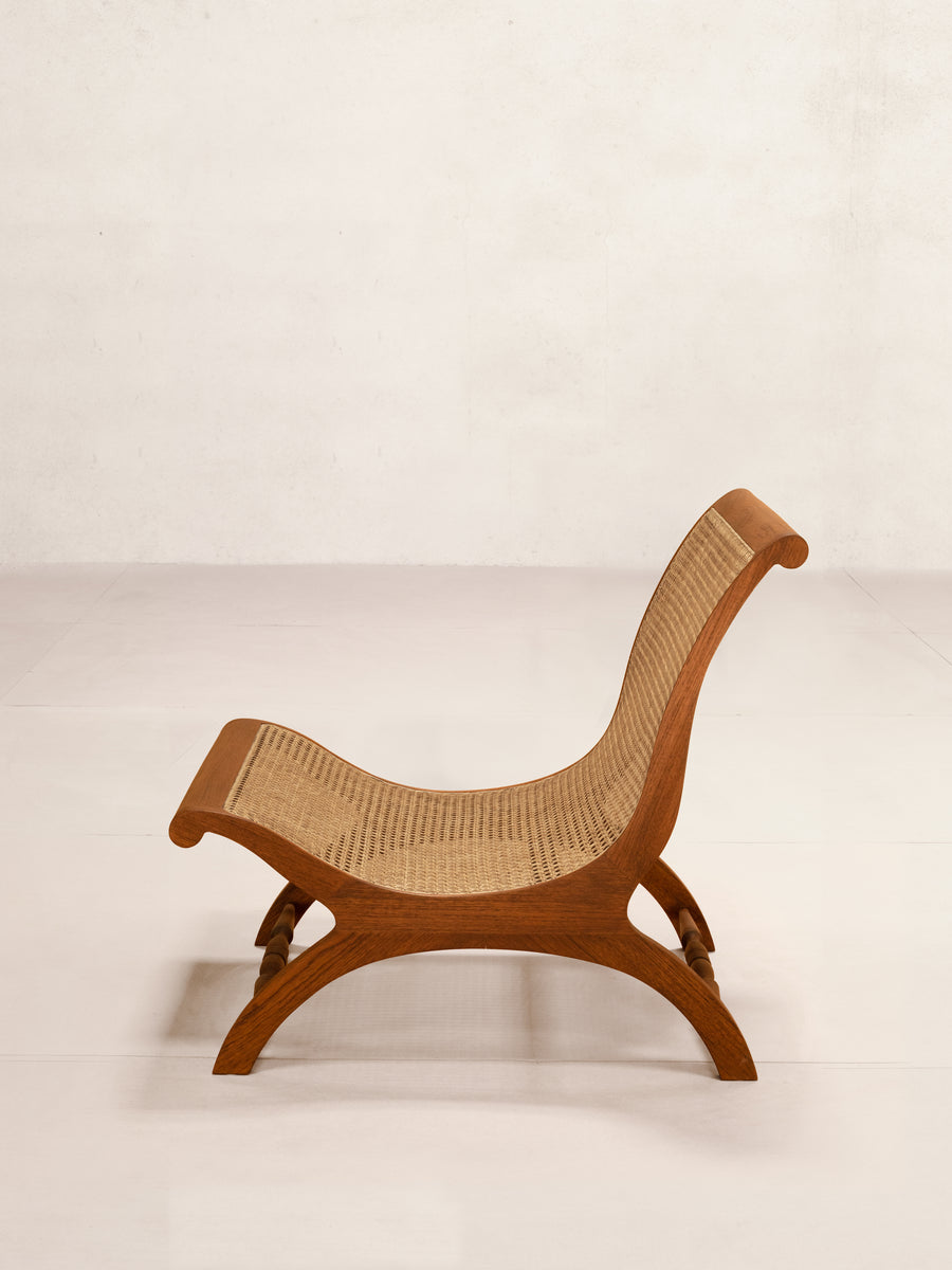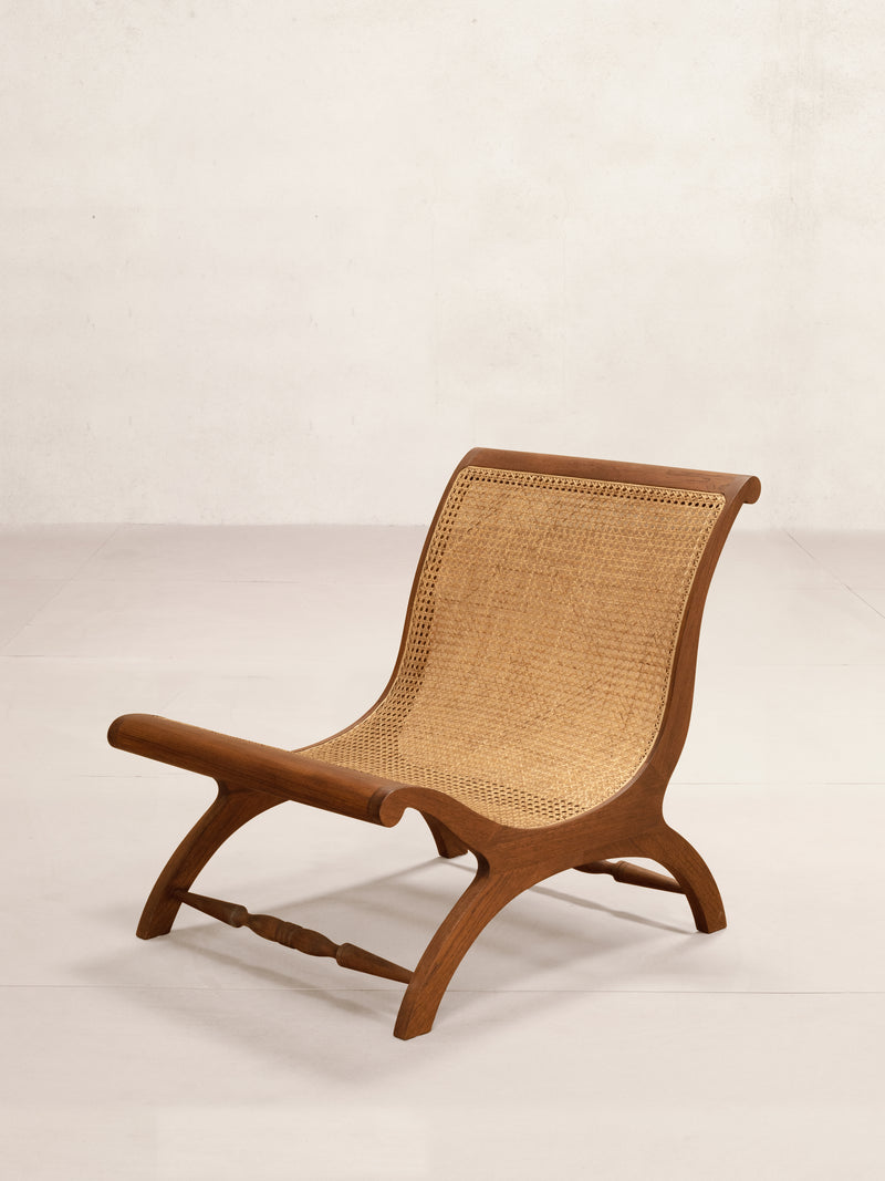 The Bentota Lounge Chair draws inspiration from the Verandah Armchair (Hansi Putuwa in Sinhalese), a colonial-era classic known for its high back, wide armrests, and woven cane seating. Variations of this chair can be found across India, Southeast Asia, the Caribbean, South America, and Africa. The same chair has similarly inspired several reinterpretations in the postcolonial world. Cuban-born designer Clara Porset's Butaque chair, created in Mexico in the 1940s and ’50s, for instance, was also inspired by the same chair. Porset’s adaptation was commissioned by architects such as Luis Barragán—whose work Bawa admired—and Mario Pani.