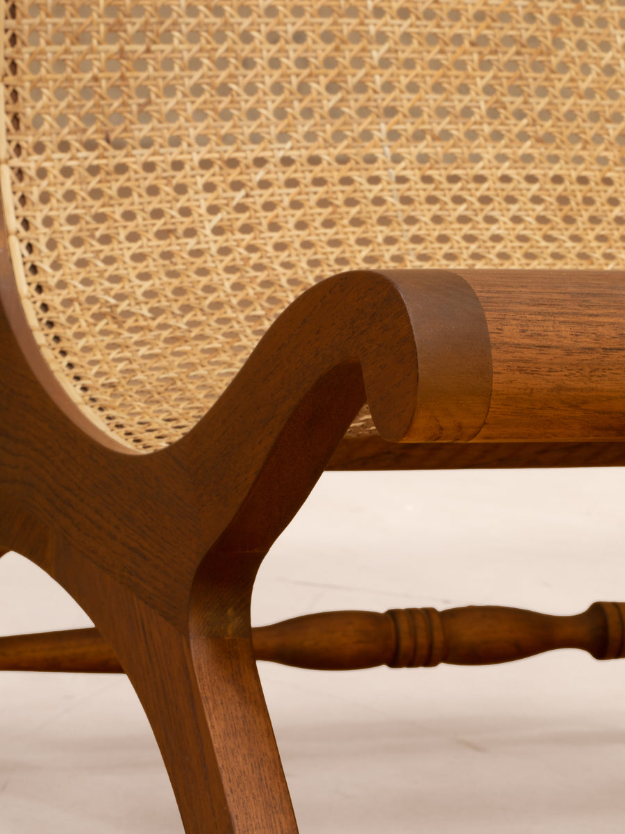 Phantom Hands’ re-edition of the Bentota Lounge Chair is based on the version found at Bentota Beach Hotel. Bawa’s original is refined by adjusting the thickness of the wooden frame to enhance ergonomics whilst the exact side profile of the original. The re-edition maintains distinct design elements for each variation of this classic chair—the turned crossbars differ slightly between the cane and upholstered versions, as seen in Bawa’s originals.