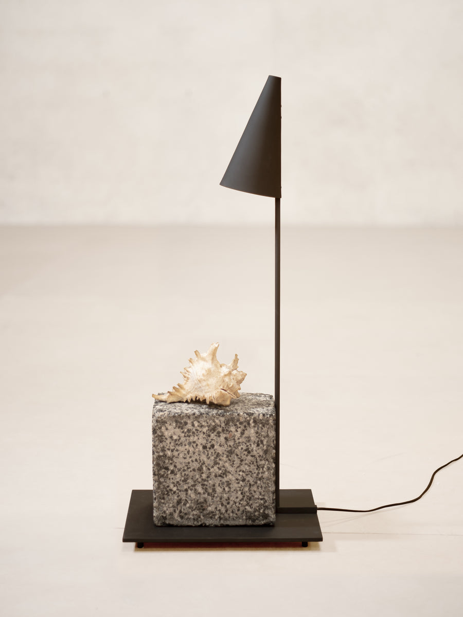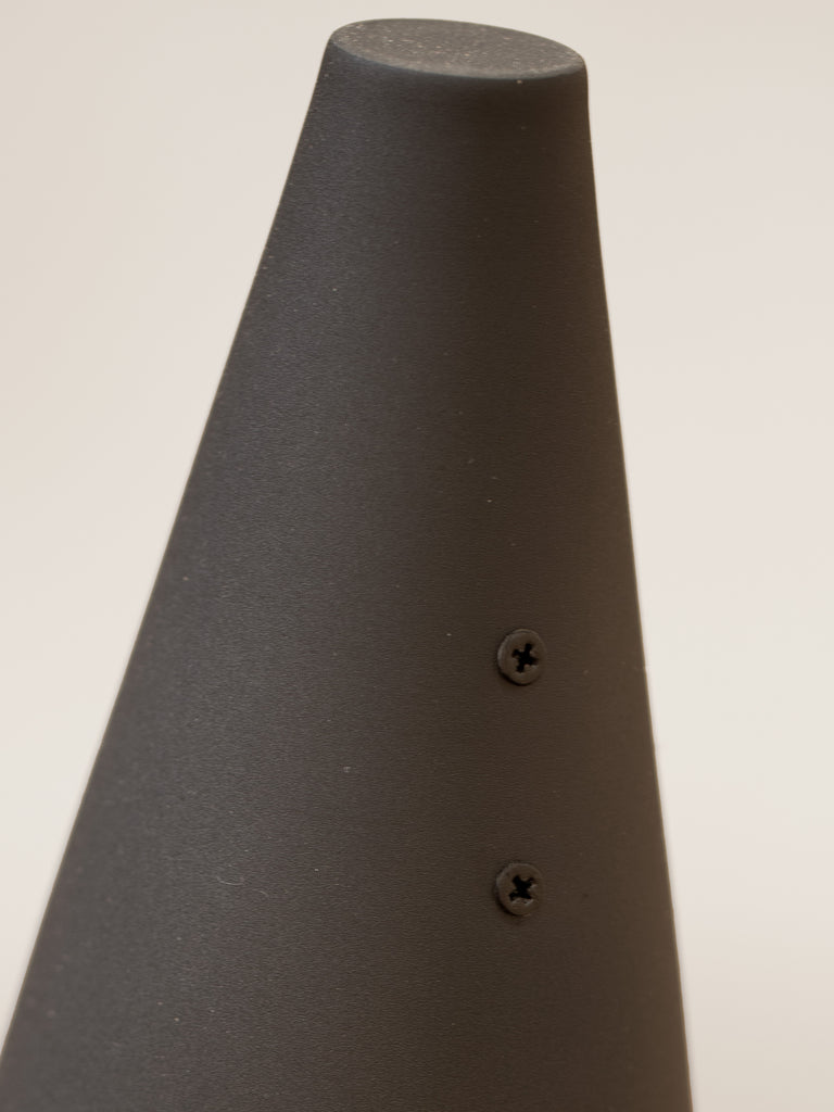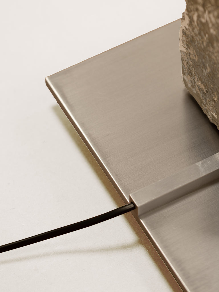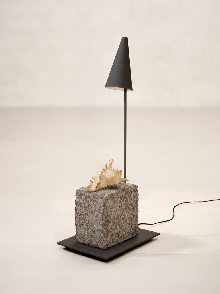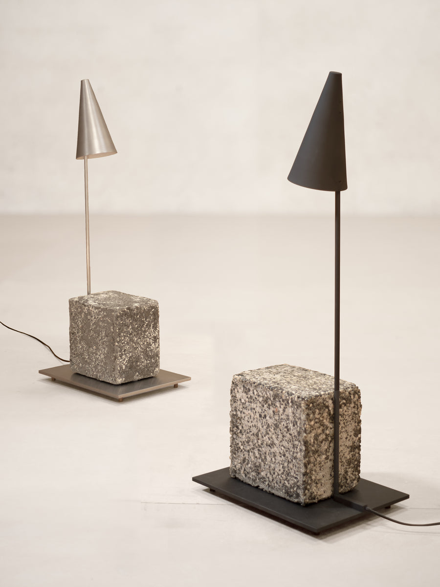The Phantom Hands re-edition is based on the prototype version at No. 11. The solid stone base has been replaced with a lightweight composite stone, developed as a result of experiments with stone and concrete aggregates by the Phantom Hands R&D team. The metal components of the lamp are machined from aluminium and the lamp is available in a clear natural finish or an anodised black finish.