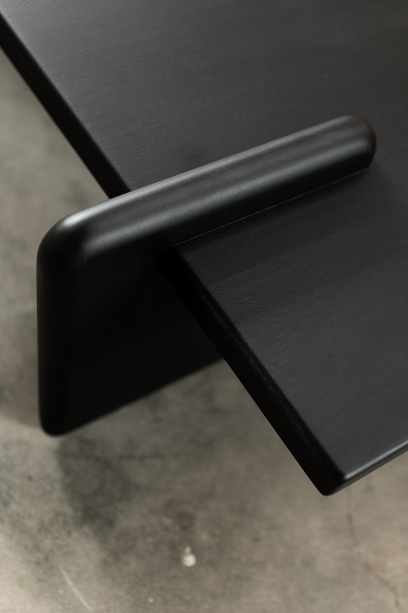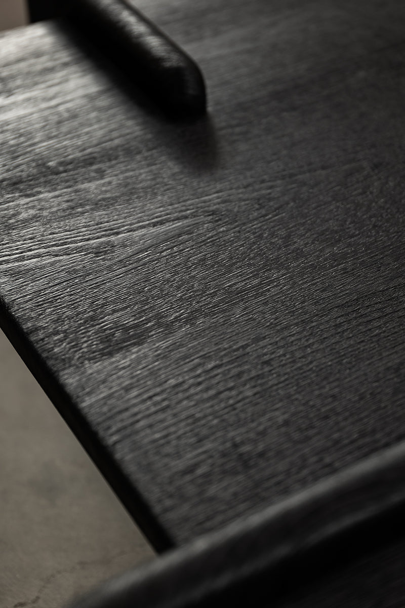 The table is available in two finish options - a burnished finish or smooth finish. For the burnished option, the table surface is deliberately brushed with steel to give it some texture and draw out the tactile and visual rawness of wood.