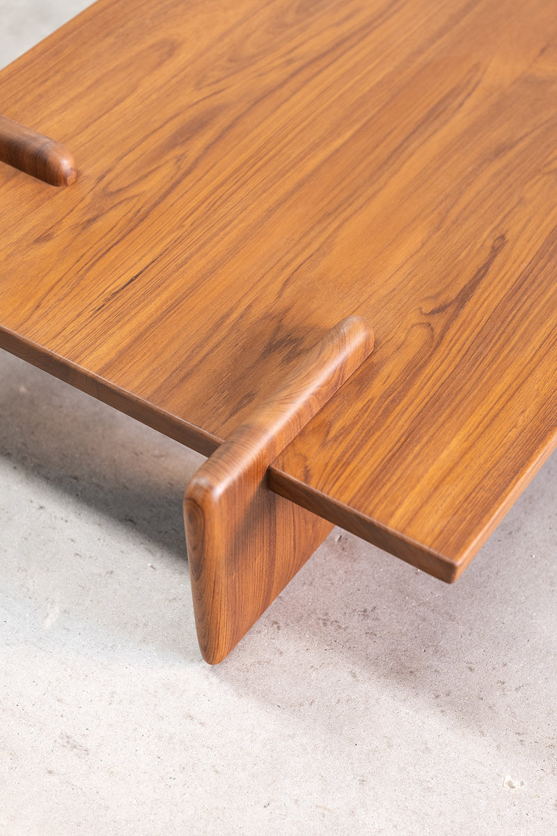 The x+l Coffee Table is a low coffee table made entirely from solid teak wood. The legs are skilfully shaped by hand and are an homage to the architectural elements found in Le Corbusier’s modernist buildings in Chandigarh.