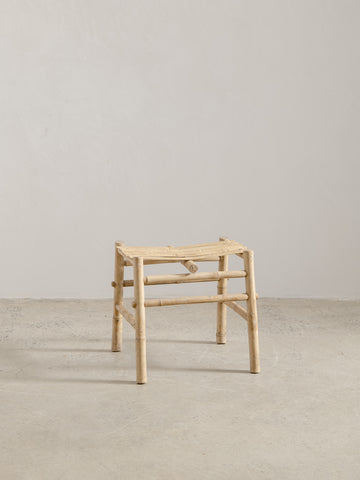 A simple and honest design showcasing the beauty of natural bamboo. Its curved seat and warm tone bring a relaxed, organic feel to any setting - perfect beside a bed, in a bathroom, or as a low table.