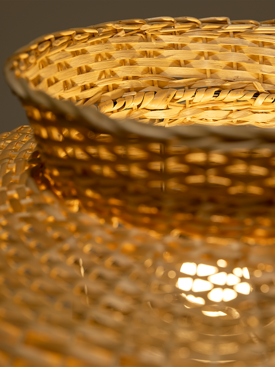 Handwoven by Ukrainian artisans of willow vine the endless and meditative form of STRIKHA lamps embody unity and close-knit family circles. Protective, like a 'strikha' straw roof, traditional to a Ukrainian dwelling — the STRIKHA brings warmth and protection from harm.