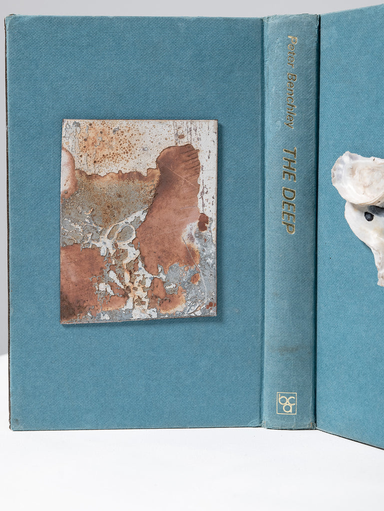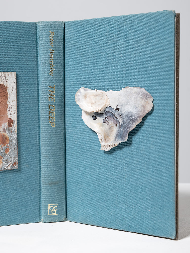 Saskia Folk's 'Curiosity' series uses hard cover books as a way to display found objects collected over many years - rocks, shells, wood and metal objects - that come together to tell a story and are presented in a new light to celebrate their colour, texture and beauty. The curation brings about contemplation of each objects' age and history, presenting a new narrative.