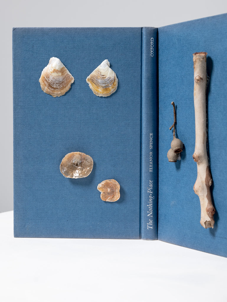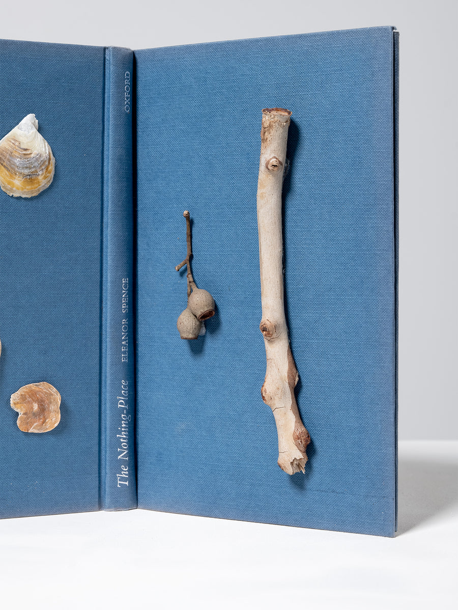 Saskia Folk's 'Curiosity' series uses hard cover books as a way to display found objects collected over many years - rocks, shells, wood and metal objects - that come together to tell a story and are presented in a new light to celebrate their colour, texture and beauty. The curation brings about contemplation of each objects' age and history, presenting a new narrative.