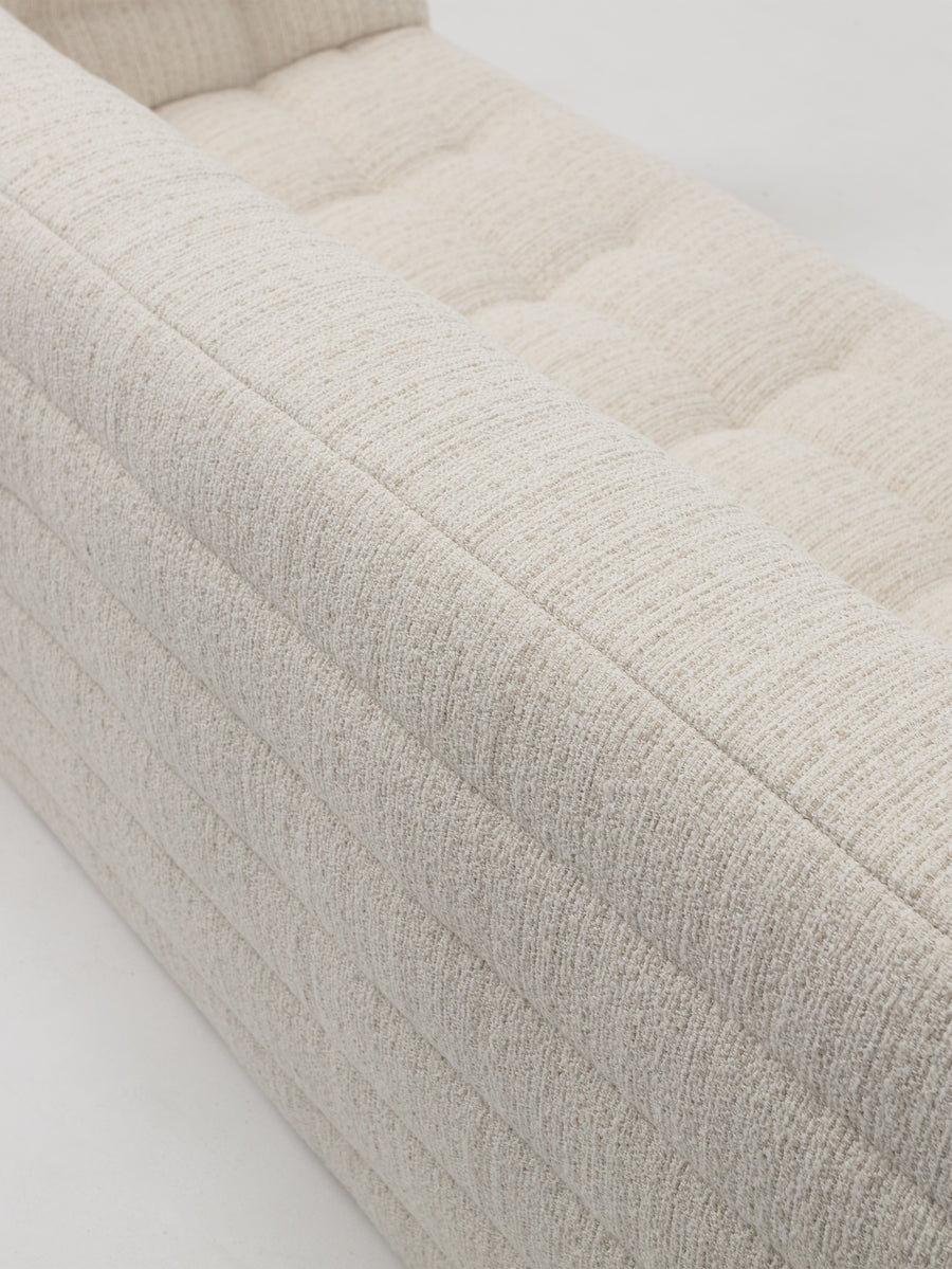Upholstered in a soft cotton and wool blend, it brings a natural warmth and textured depth to any living space.