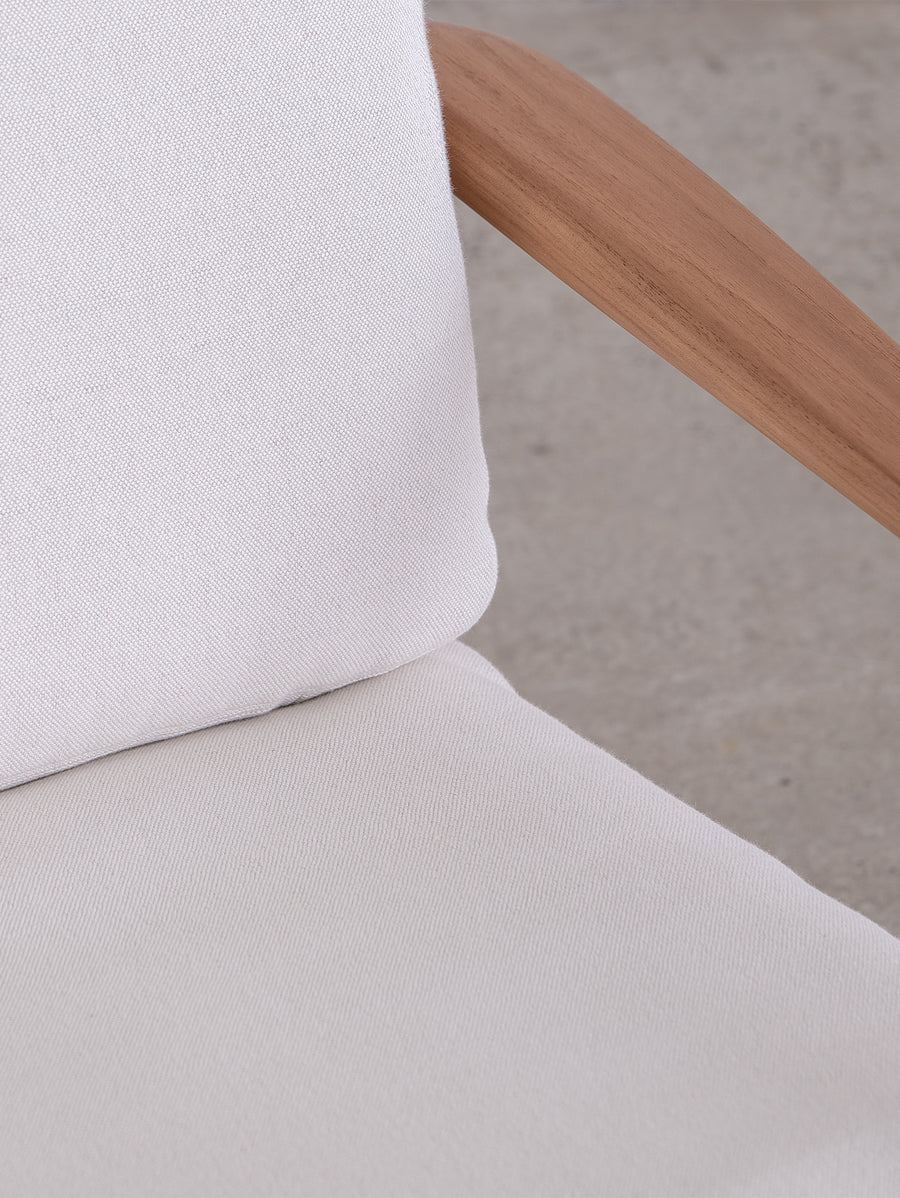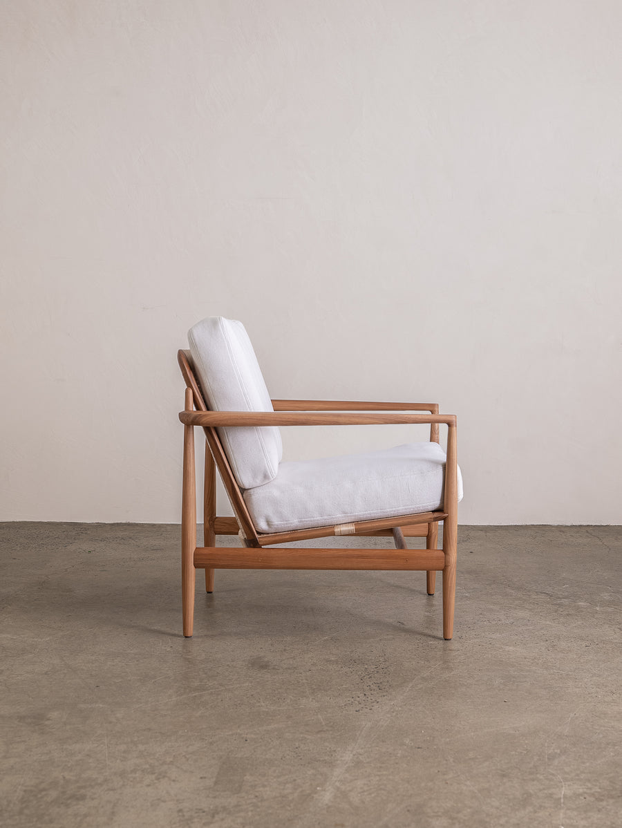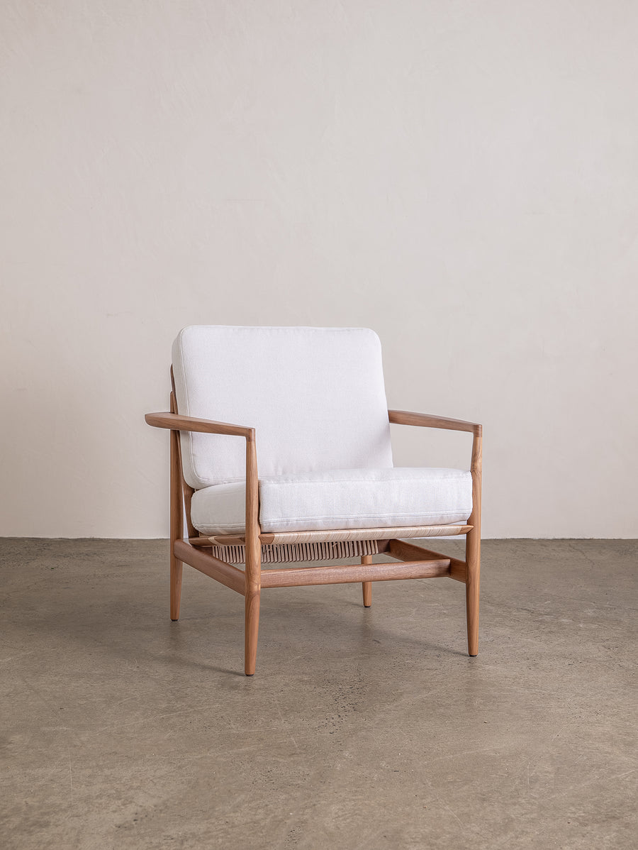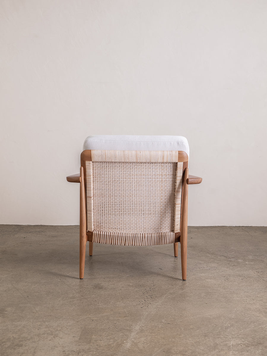 The Tangali Comfort Chair is a spacious and cozy lounge chair that is accompanied by back and seat cushions; designed for ultimate relaxation. This luxurious piece features hand-spun cotton fabric cushions that are filled with foam and wadding atop the signature Tangali cane weave and teak timber frame.