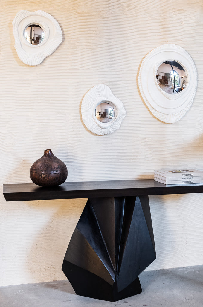 Handmade in Paris, these sculpted mirrors are crafted from plaster by artist Vincent Vauban.