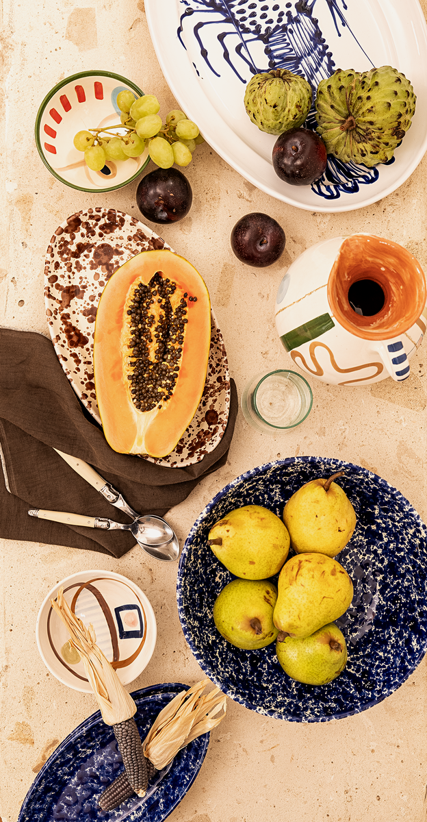 A Tigmi curated collection of ceramics by Ceramiche Fasano, in stunning Cerulean Splatter. Each piece is first glazed and then hand splattered, with no two being exactly alike.