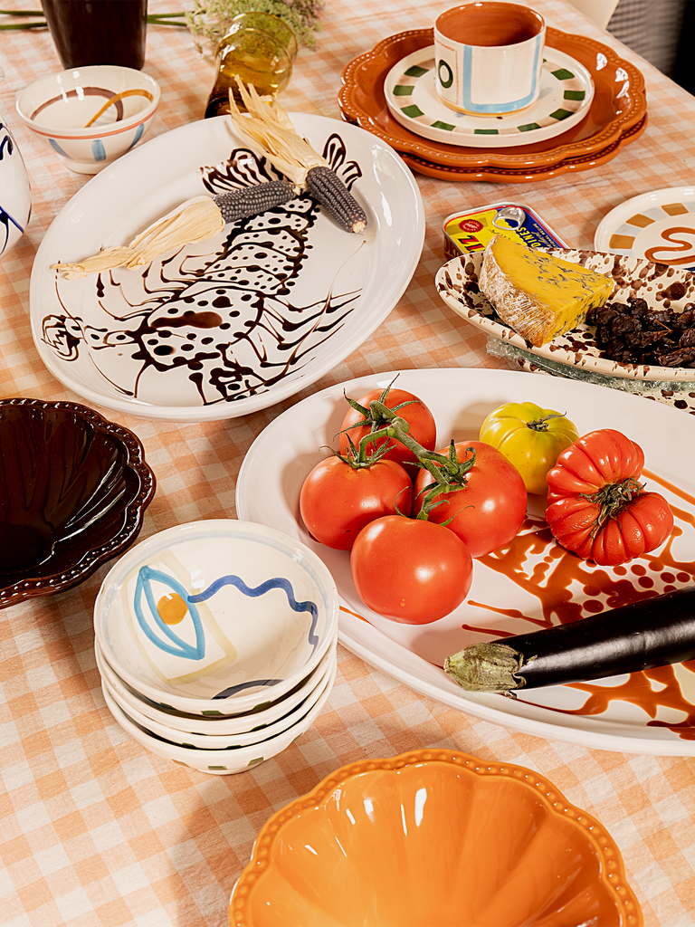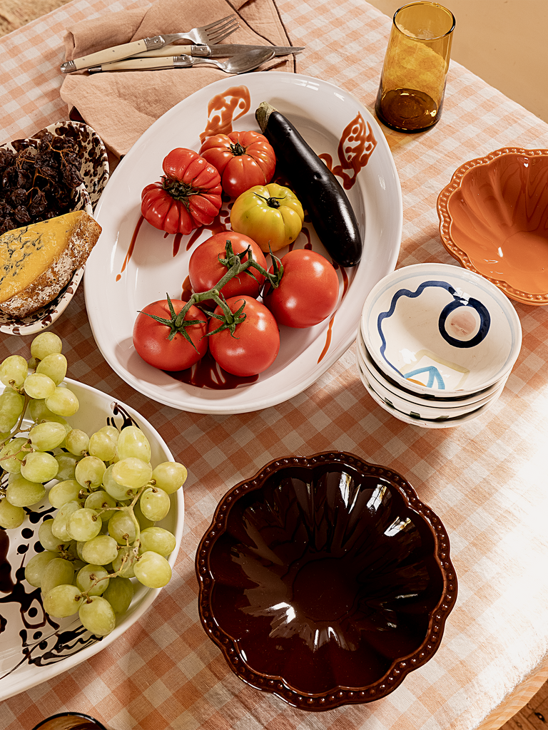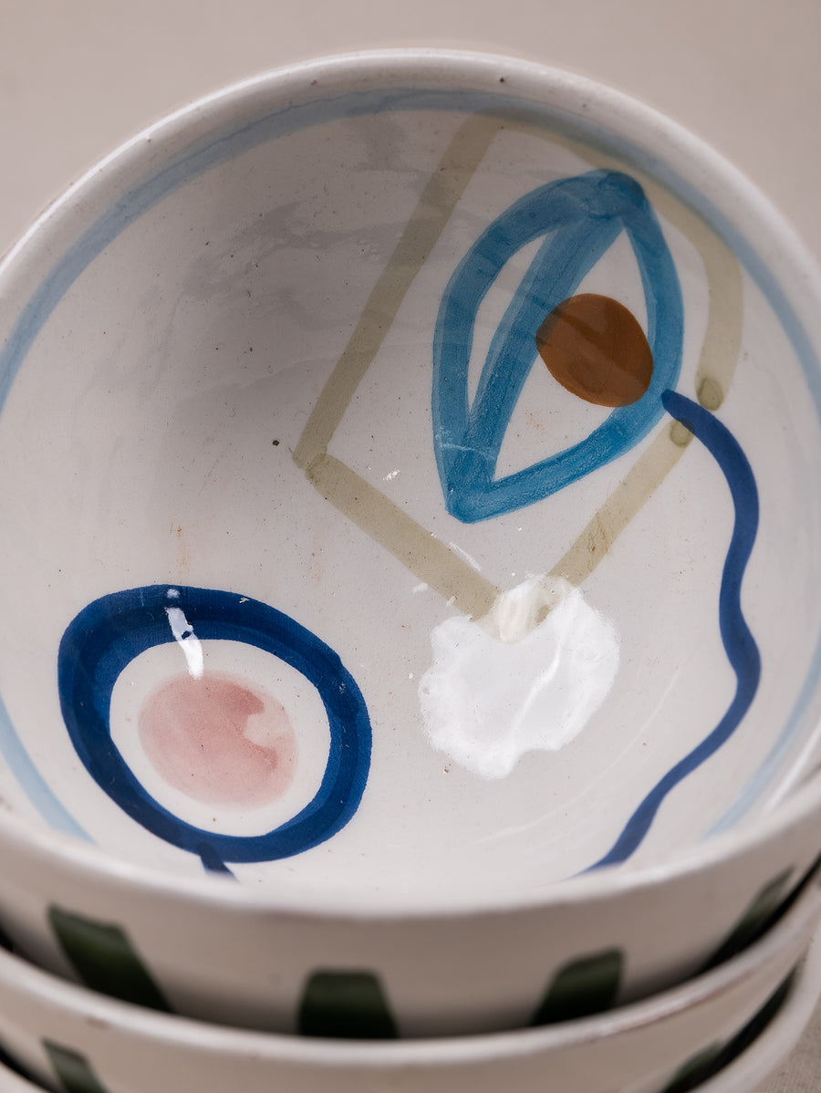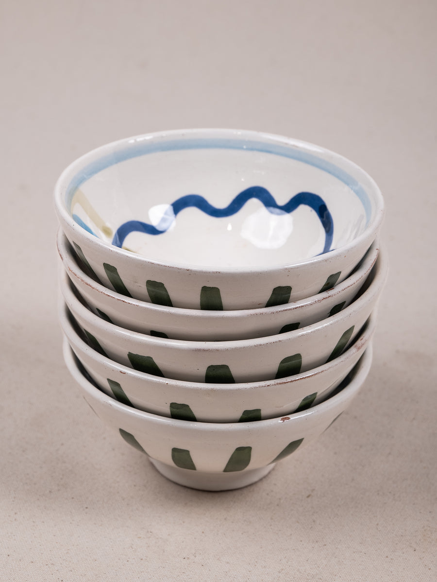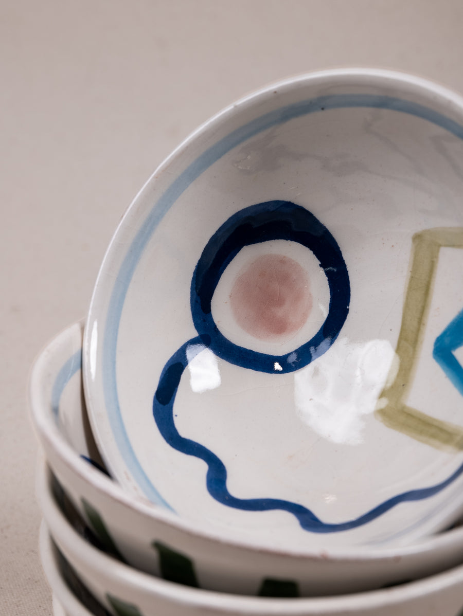 Handmade and handpainted terracotta clay-based glazed ceramic aperitivo bowl. Every piece is unique.