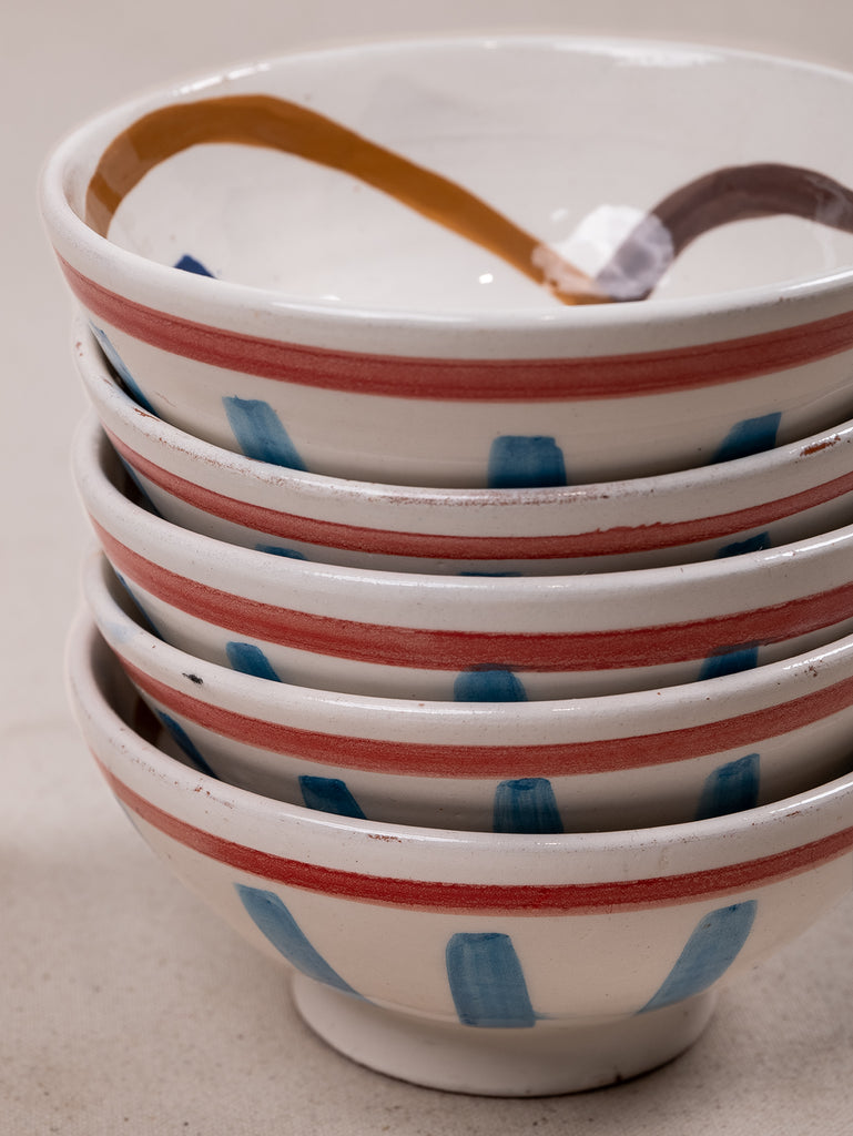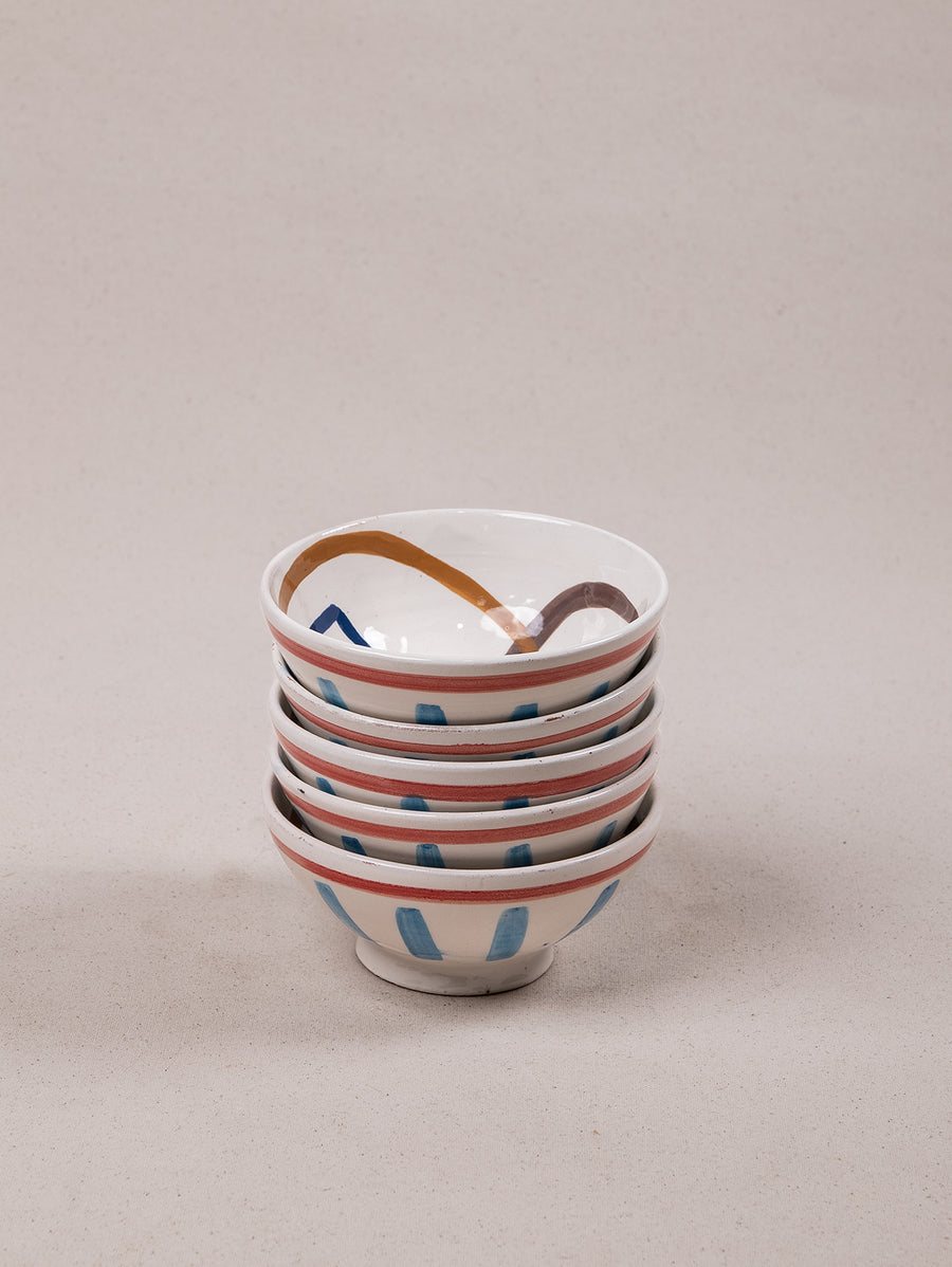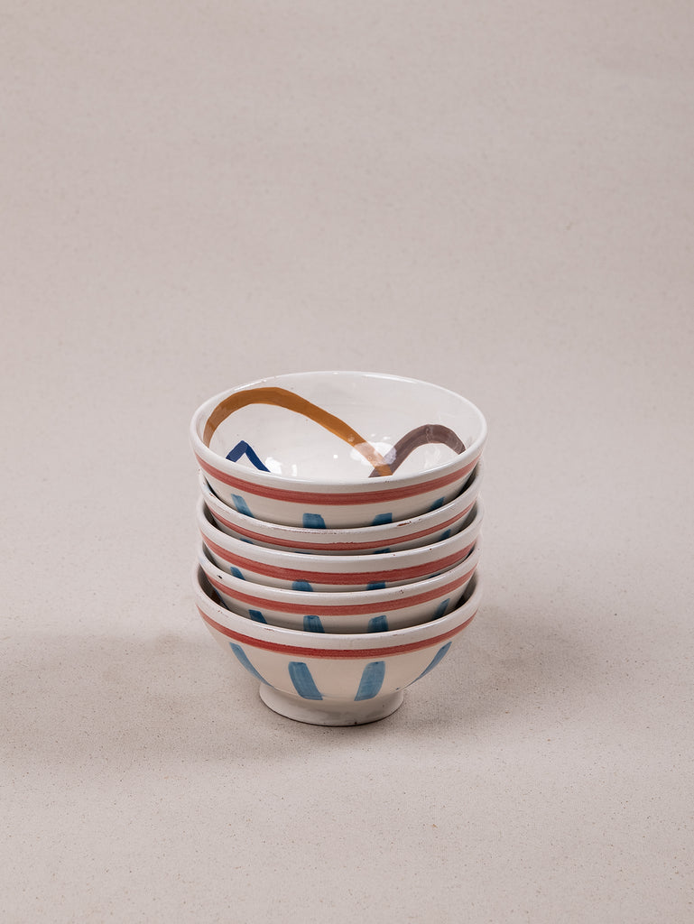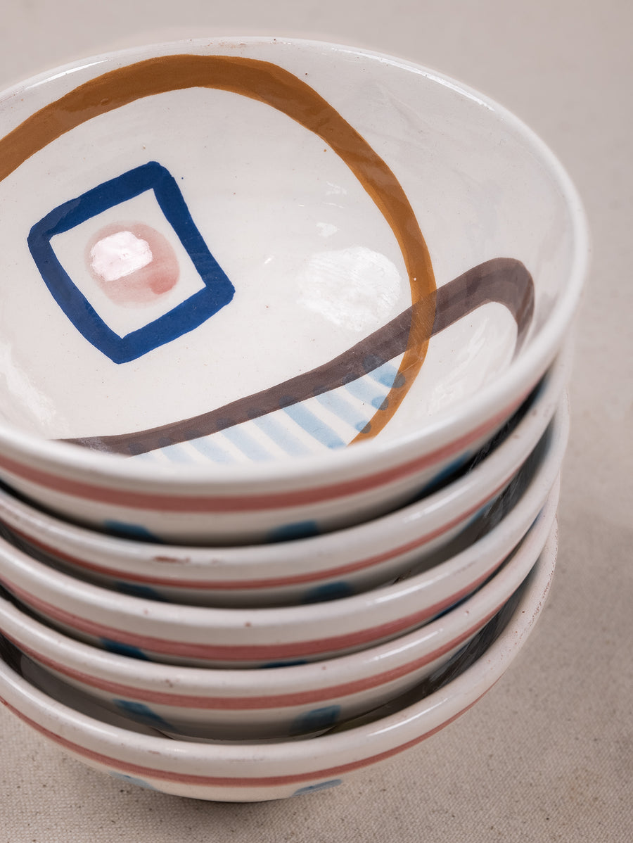 Handmade and handpainted terracotta clay-based glazed ceramic aperitivo bowl. Every piece is unique.