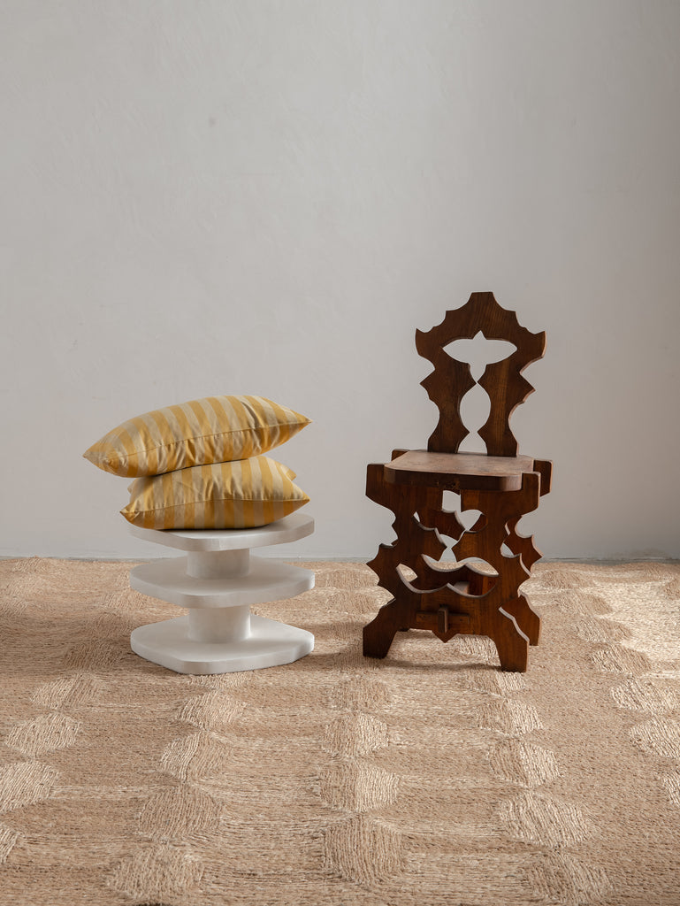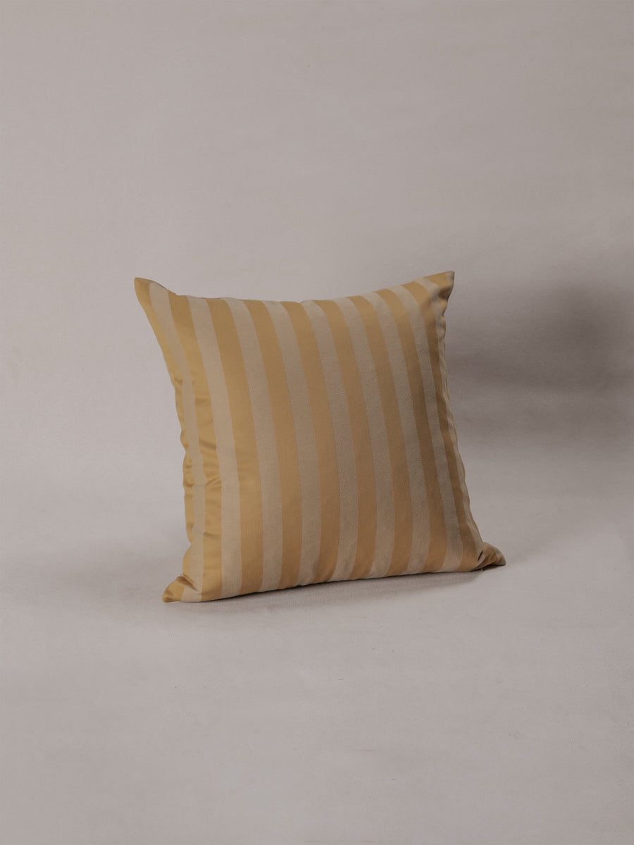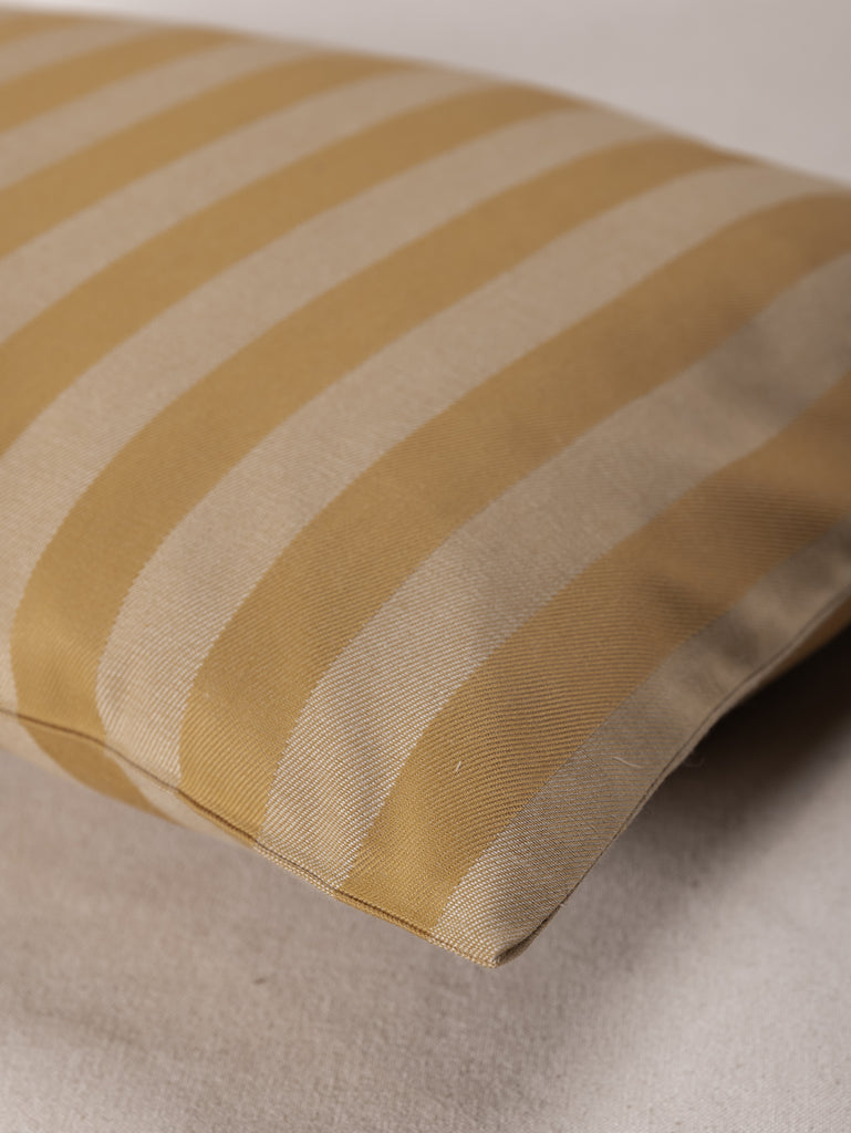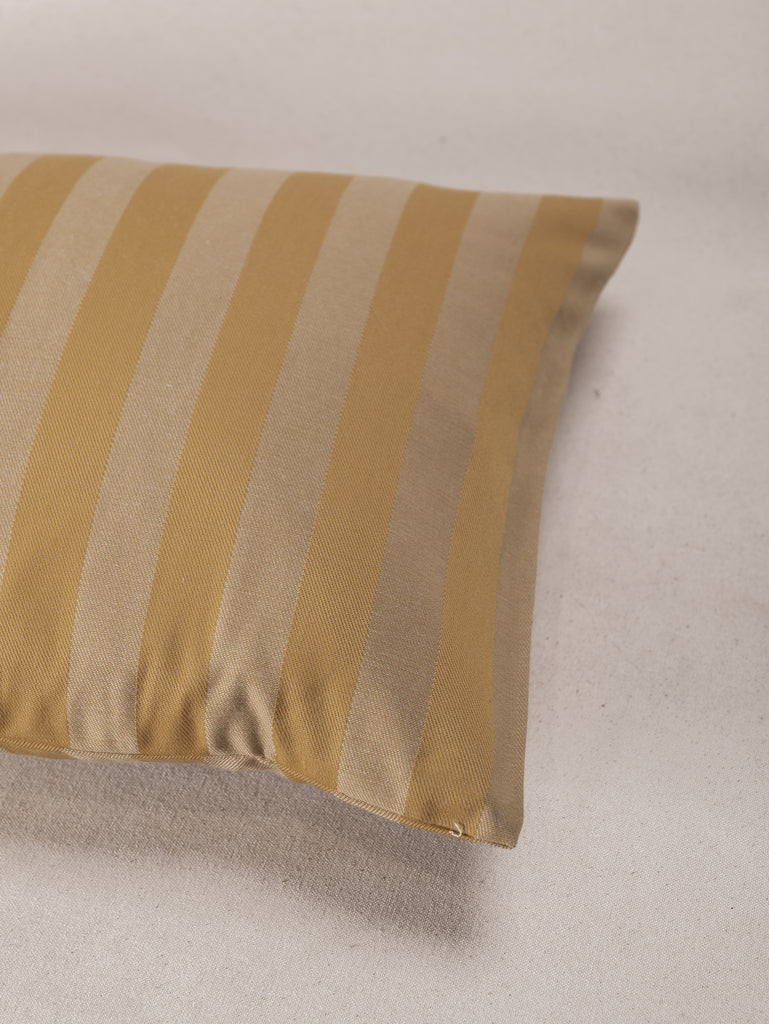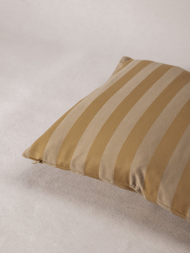 Upholstered in a striped performance fabric, this lumbar cushion balances softness with durability. The subtle stripe offers a layered, tonal texture, both earthy and elevated. Designed to withstand daily living while maintaining its tactile elegance, it’s the perfect accent for both indoor and outdoor spaces. Finished with a feather insert for added comfort.