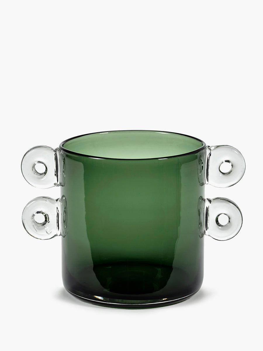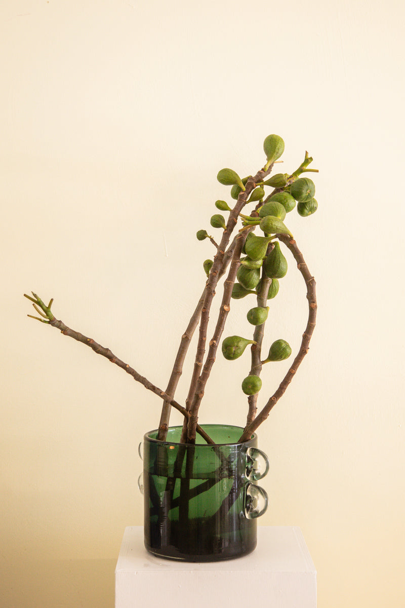 Shaped using a combination of wind and fire, these glass vases are the transposition of her EARTH vases, made from papier mache, to the lively marterial of glass.
