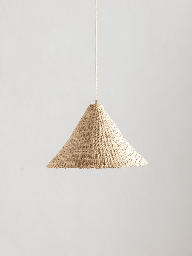 Handwoven from elephant grass by a cooperative of women in northern Ghana. Named for there funghi-like form, and when lit emit an ambient warm glow. As each shade is handwoven in a conical shape, every piece is slightly different and its own unique piece.