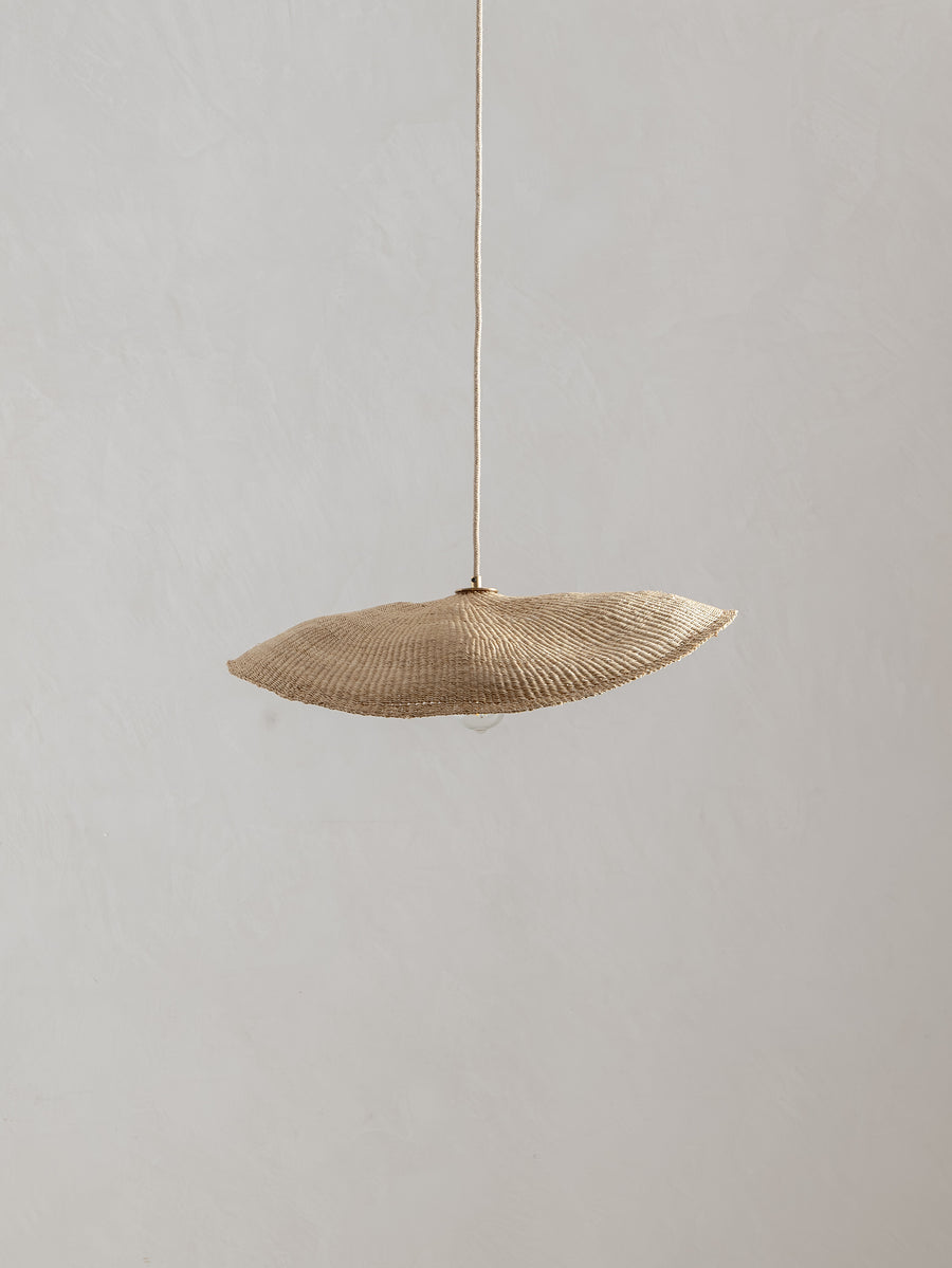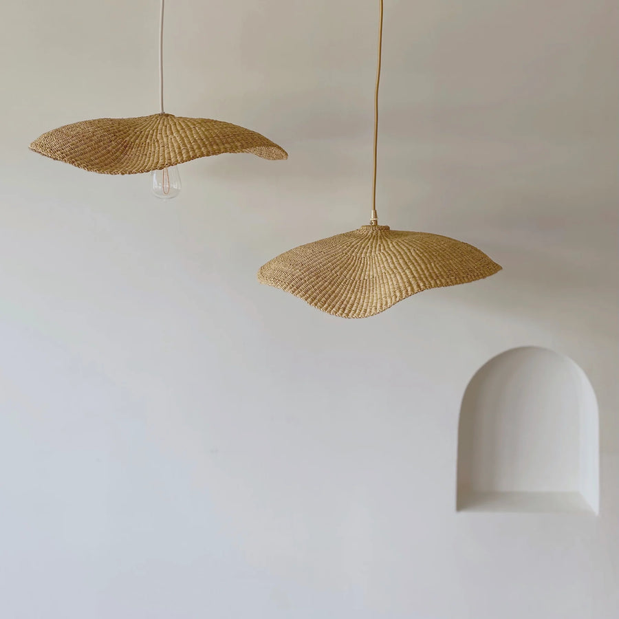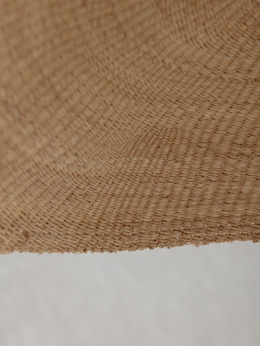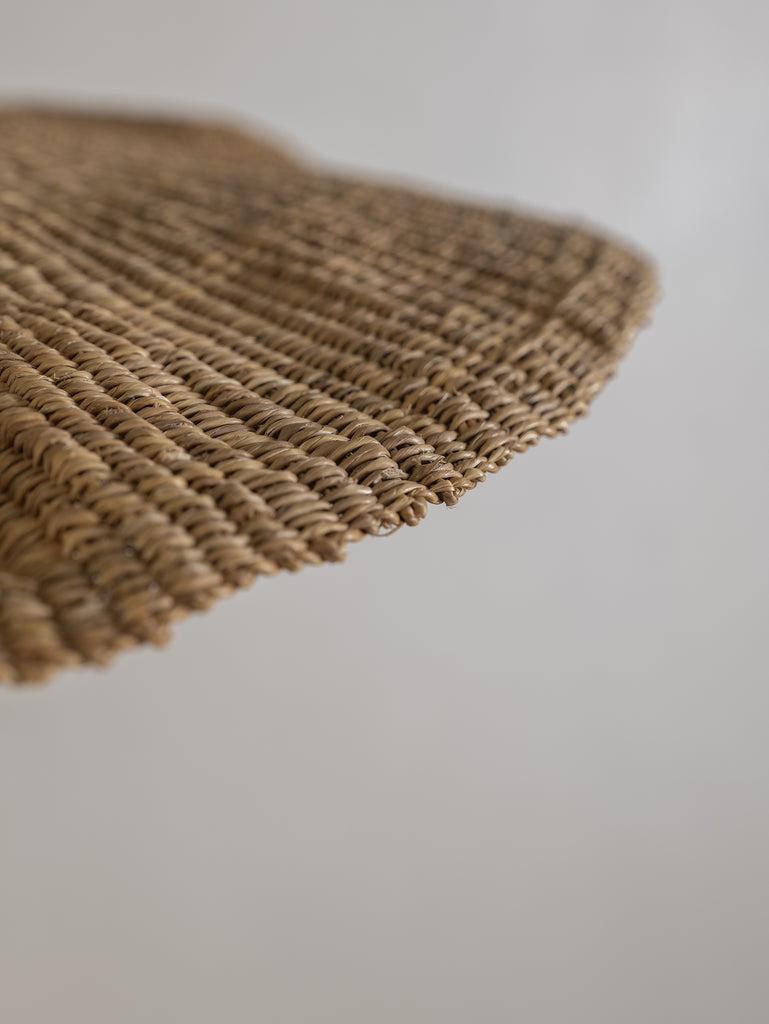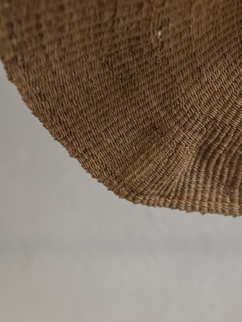 Wide and floating, the Fawn pendant is handwoven from elephant grass by a cooperative of women in northern Ghana. When lit they emit an ambient, warm glow. As each shade is handwoven, every piece is slightly different and its own unique piece.