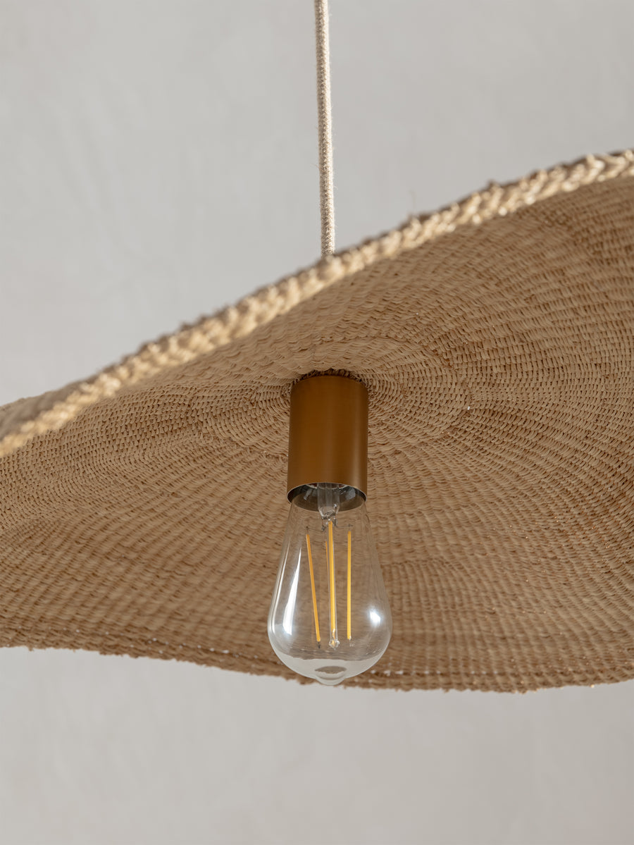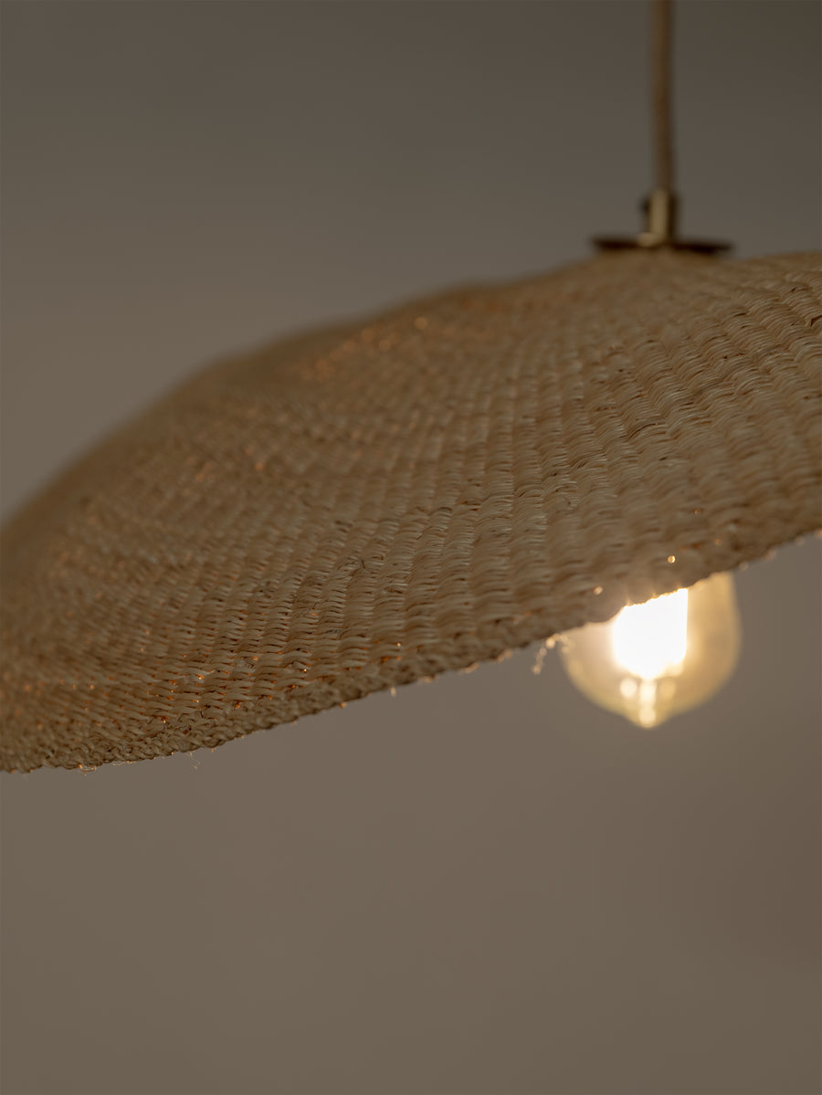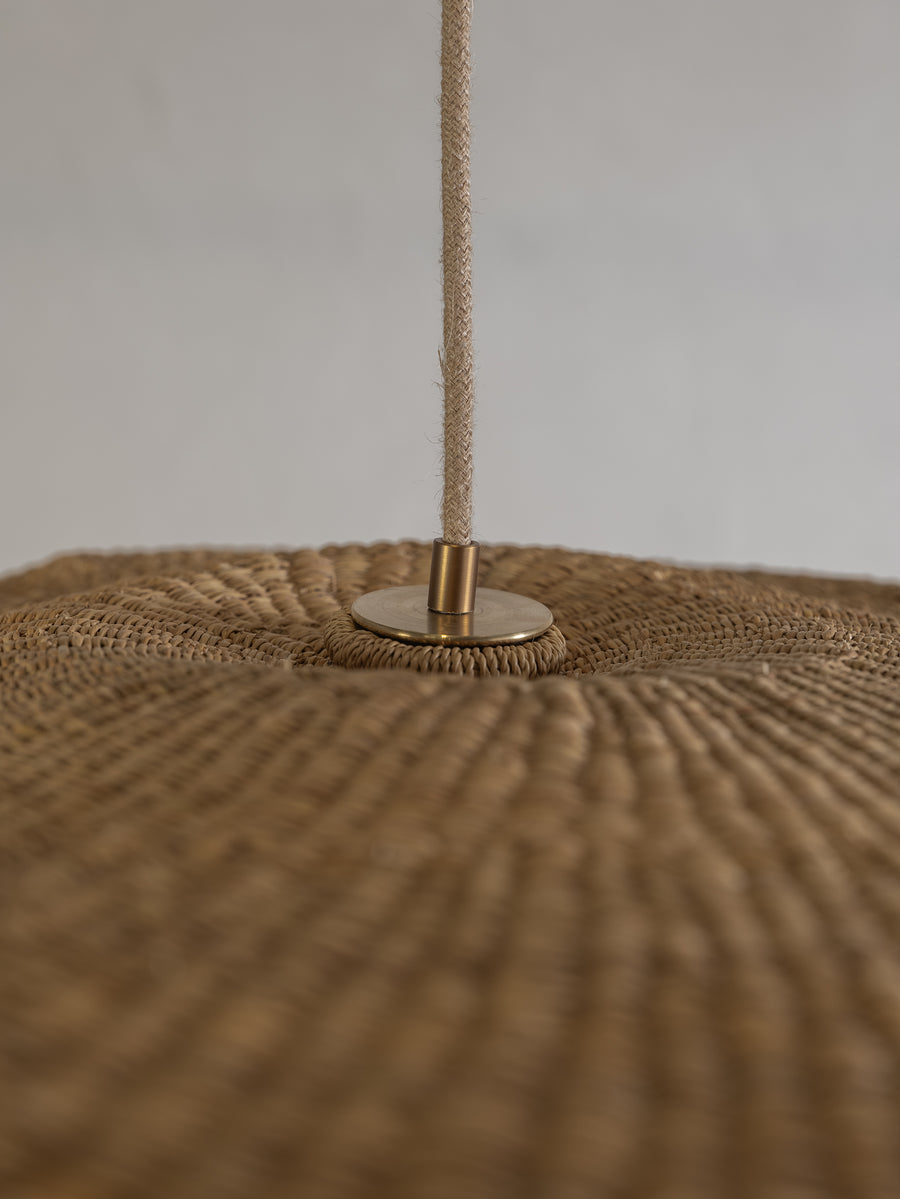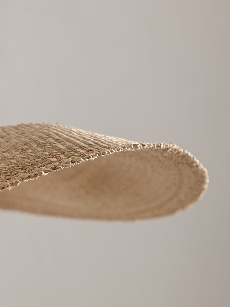 Wide and floating, the Fawn pendant is handwoven from elephant grass by a cooperative of women in northern Ghana. When lit they emit an ambient, warm glow. As each shade is handwoven, every piece is slightly different and its own unique piece.