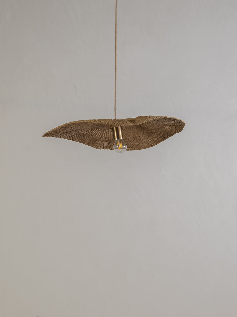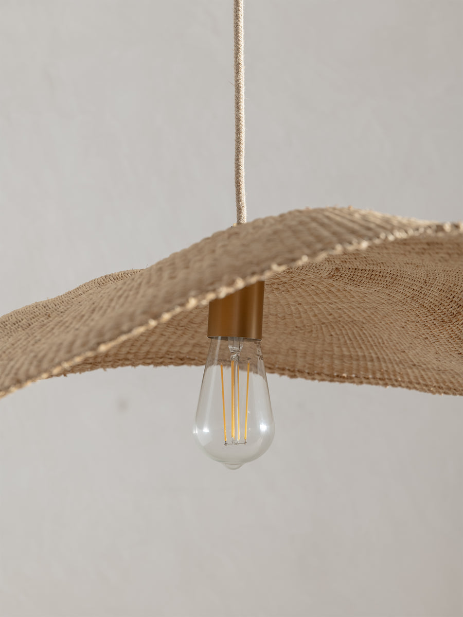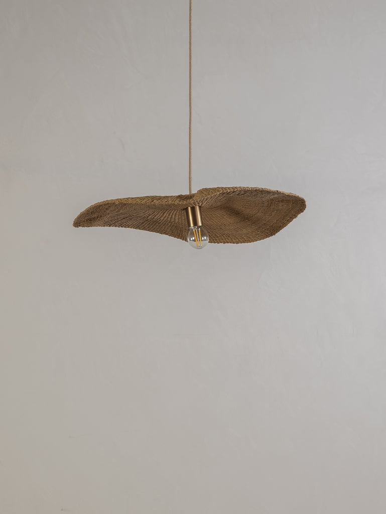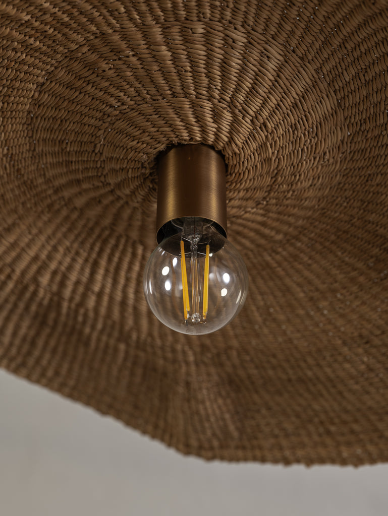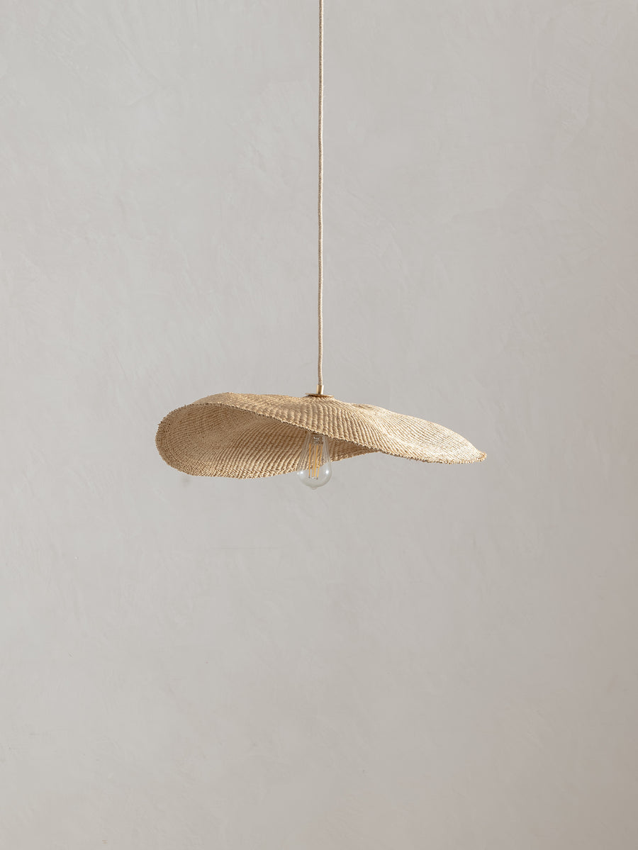 Wide and floating, the Fawn pendant is handwoven from elephant grass by a cooperative of women in northern Ghana. When lit they emit an ambient, warm glow. As each shade is handwoven, every piece is slightly different and its own unique piece.
