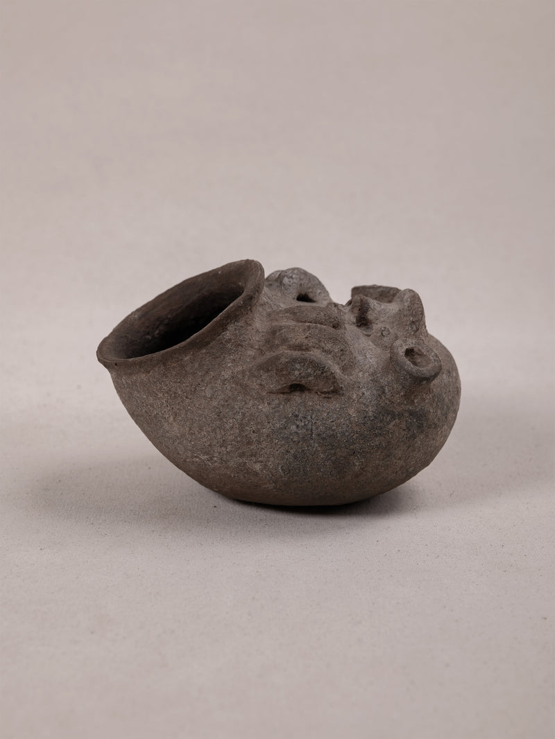 This anthropomorphic terracotta vessel from early 20th-century Nigeria carries a presence that is both grounding and poetic. With its sculptural form and stylized relief details, it tells a story of craftsmanship deeply rooted in tradition and culture.
